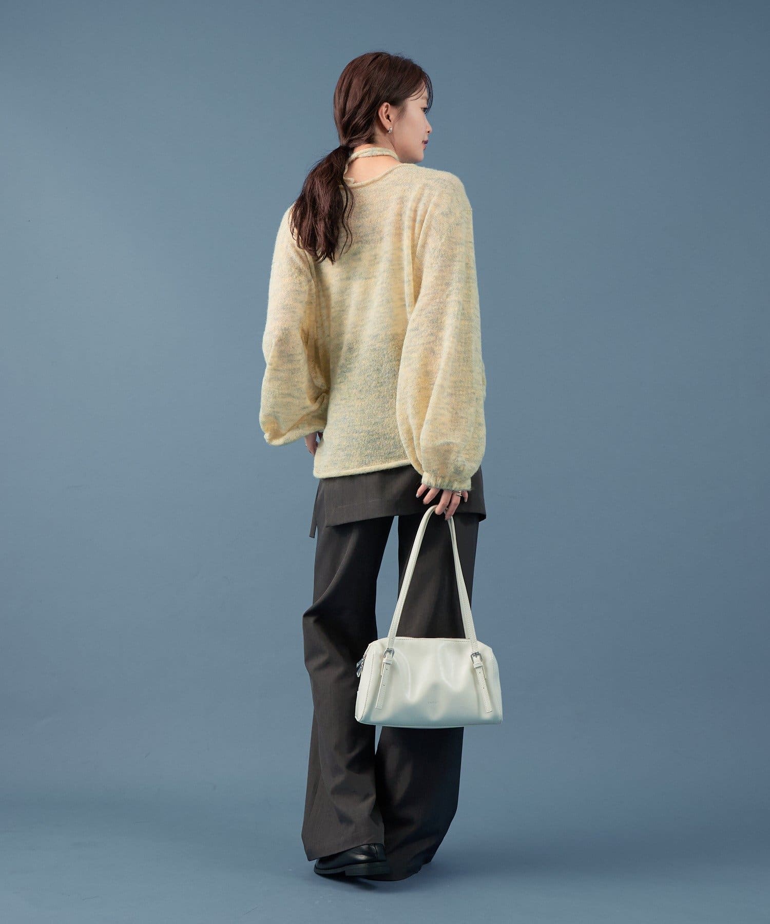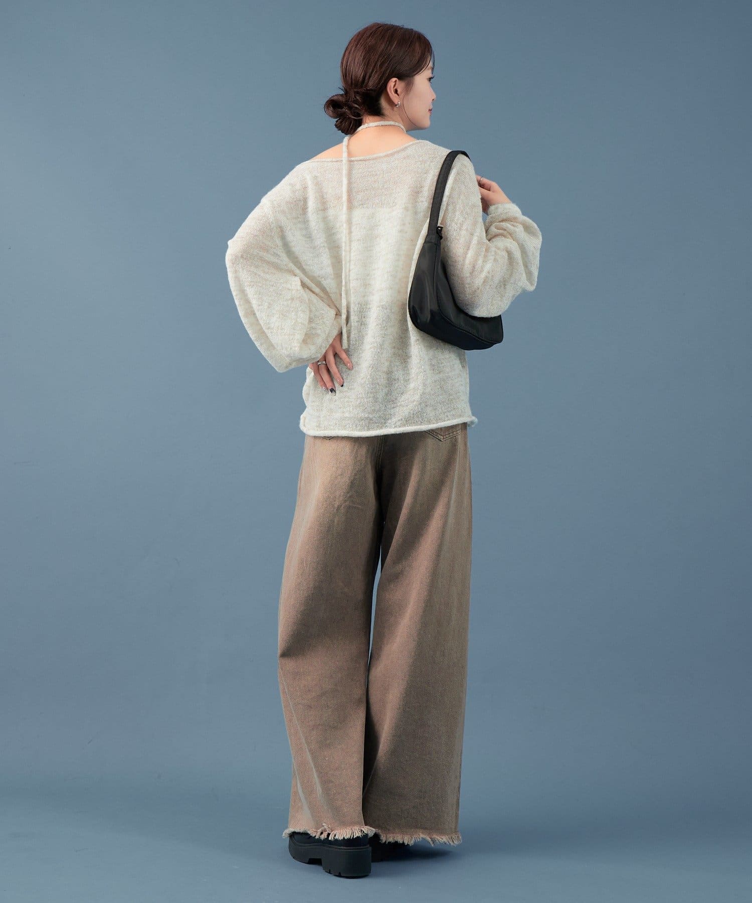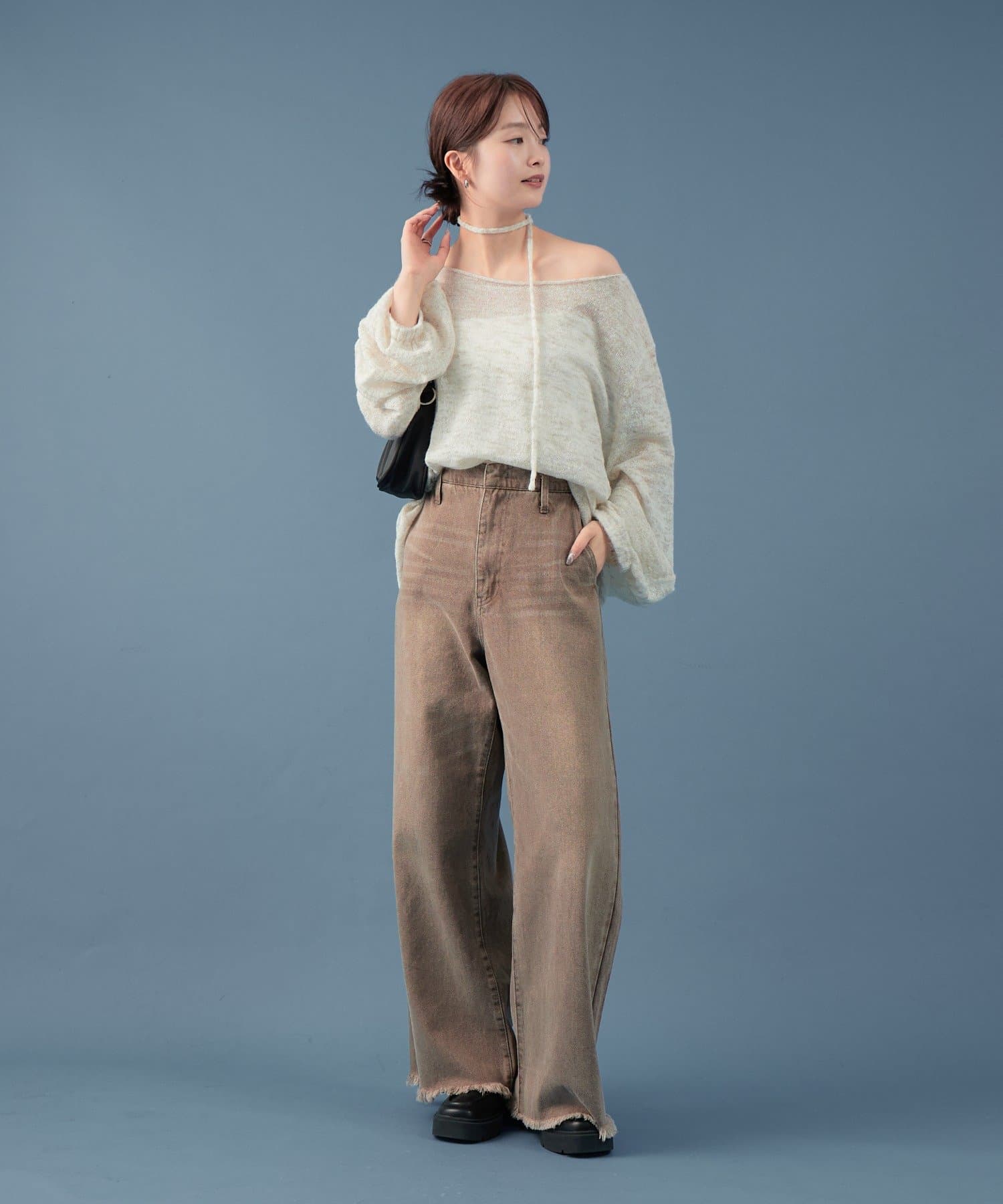 ・ シアー素材を活かして、インナーの色や柄を透けさせるのもおしゃれです◎