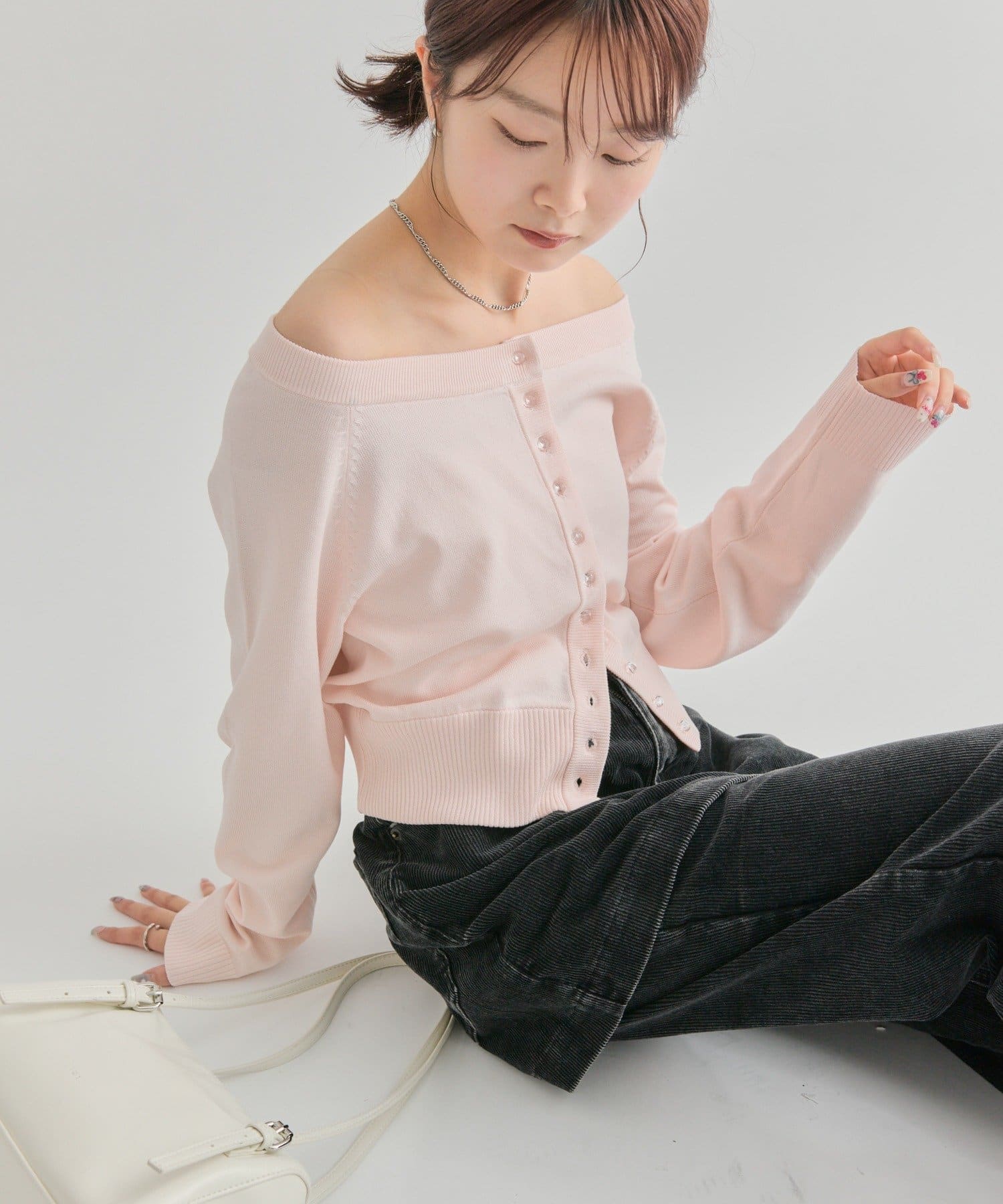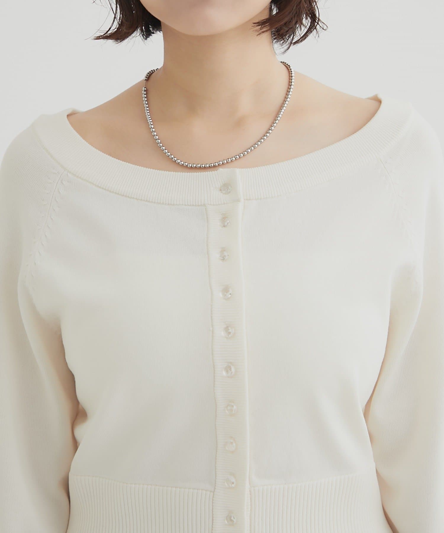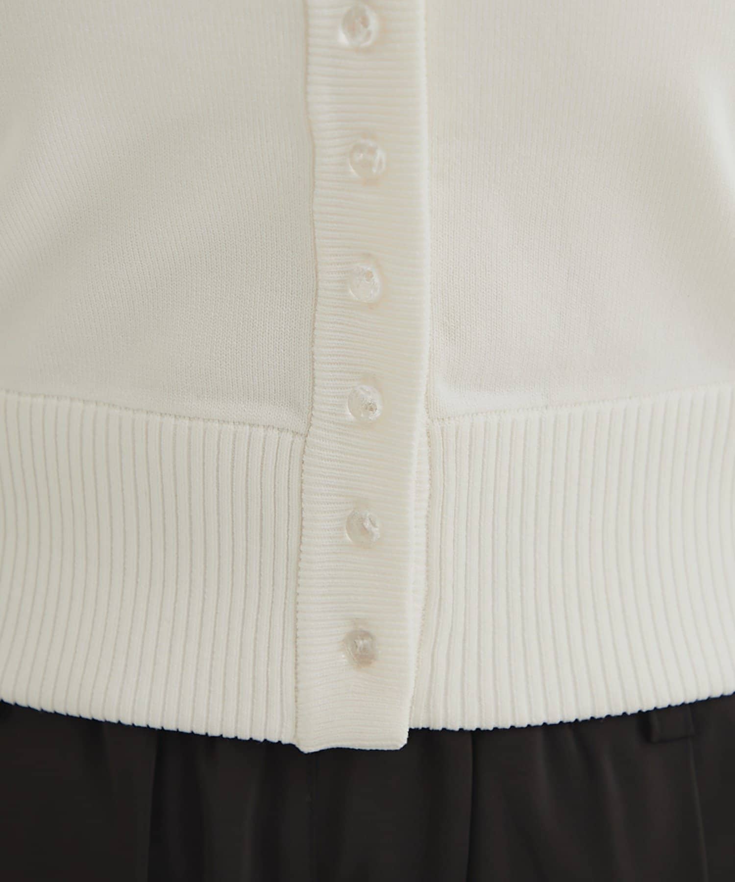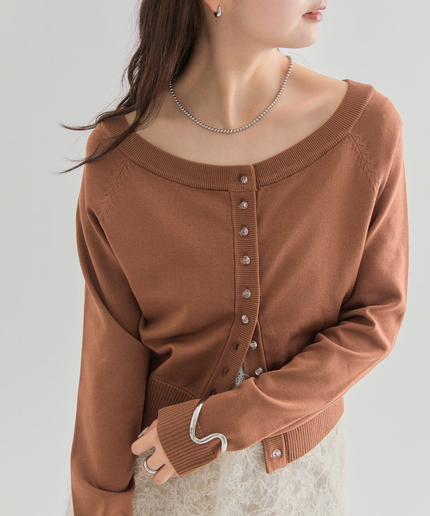 シンプルな女性らしさが魅力的なクリアボタン カーディガンが登場!