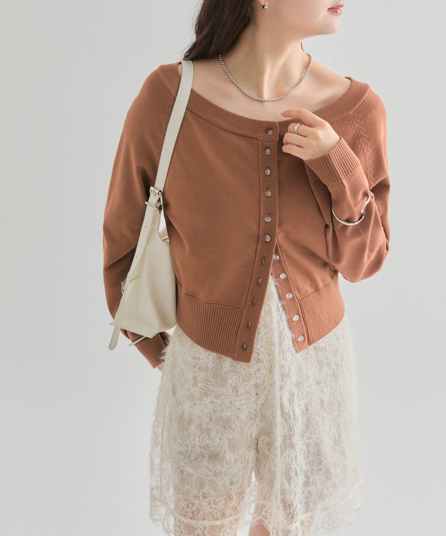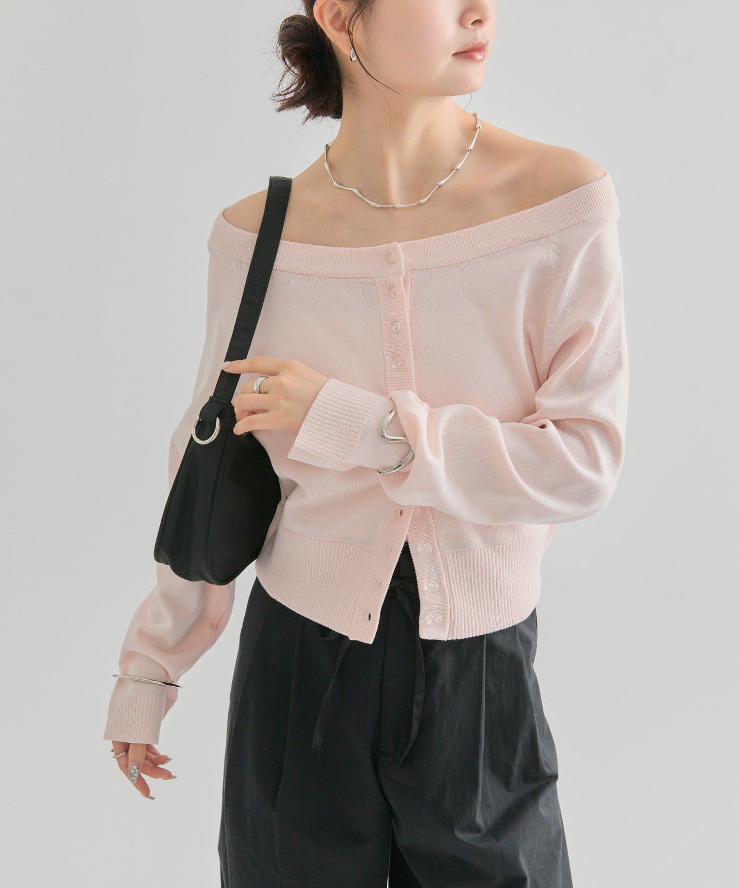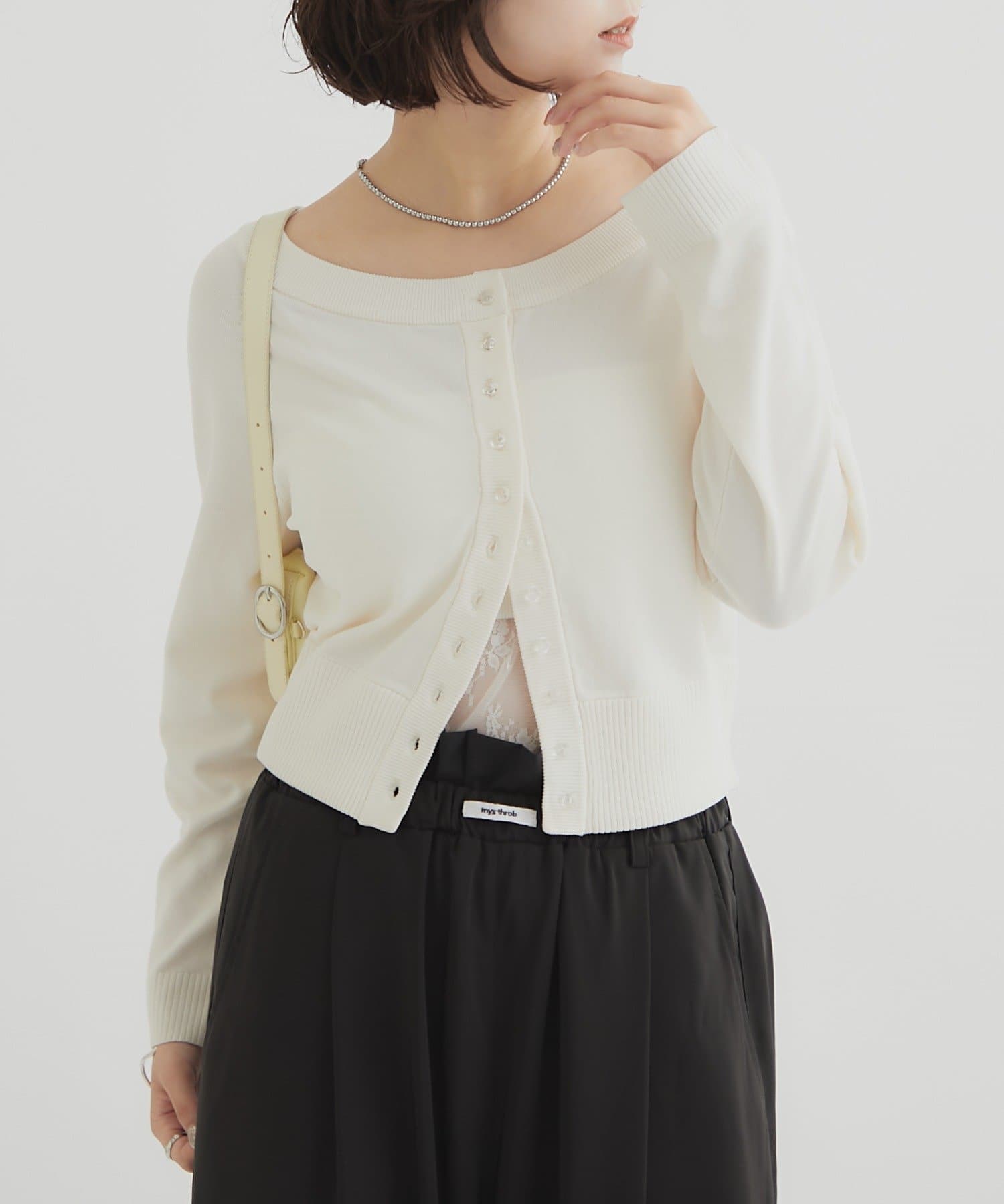 シンプルな女性らしさが魅力的なクリアボタン カーディガンが登場!