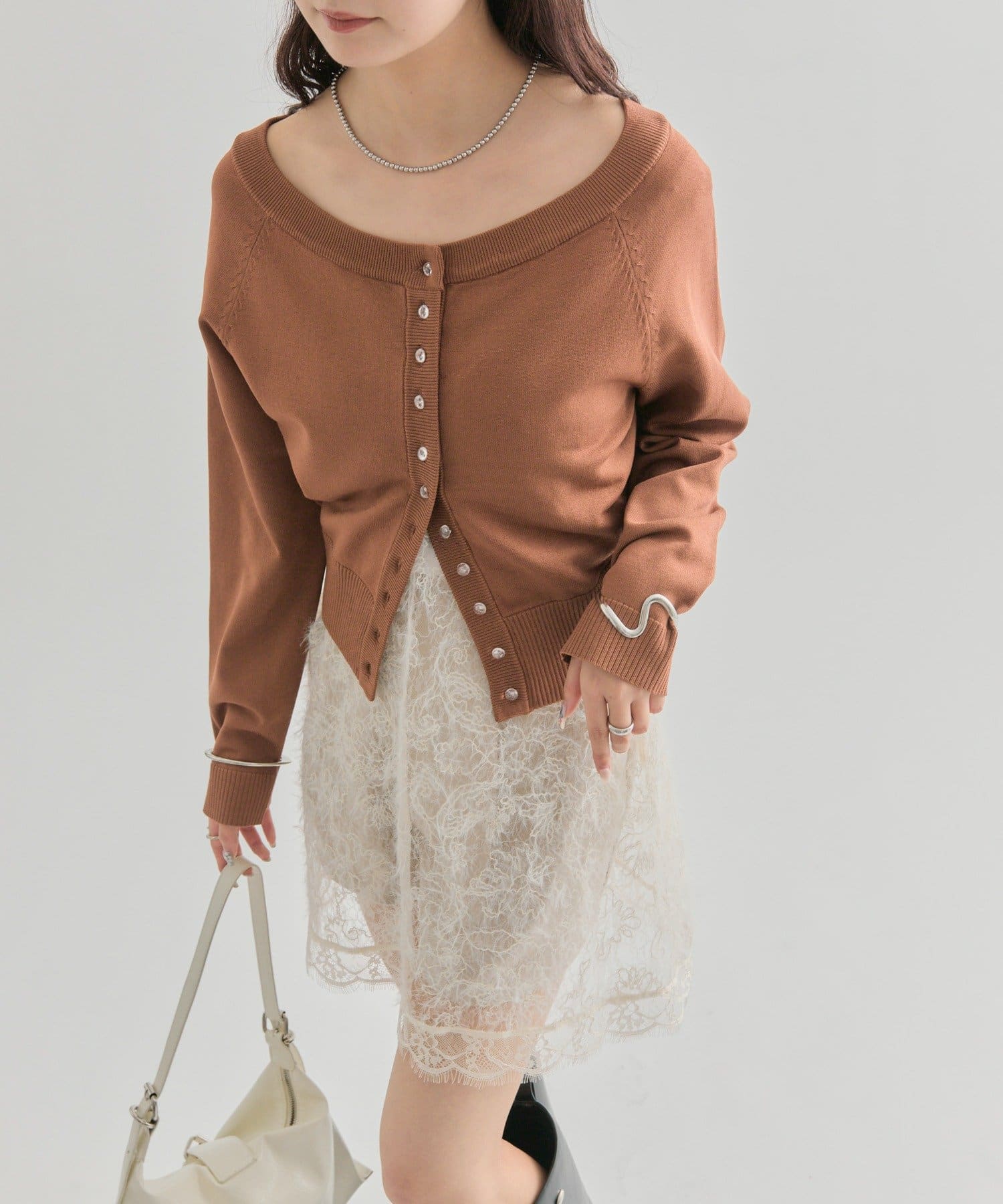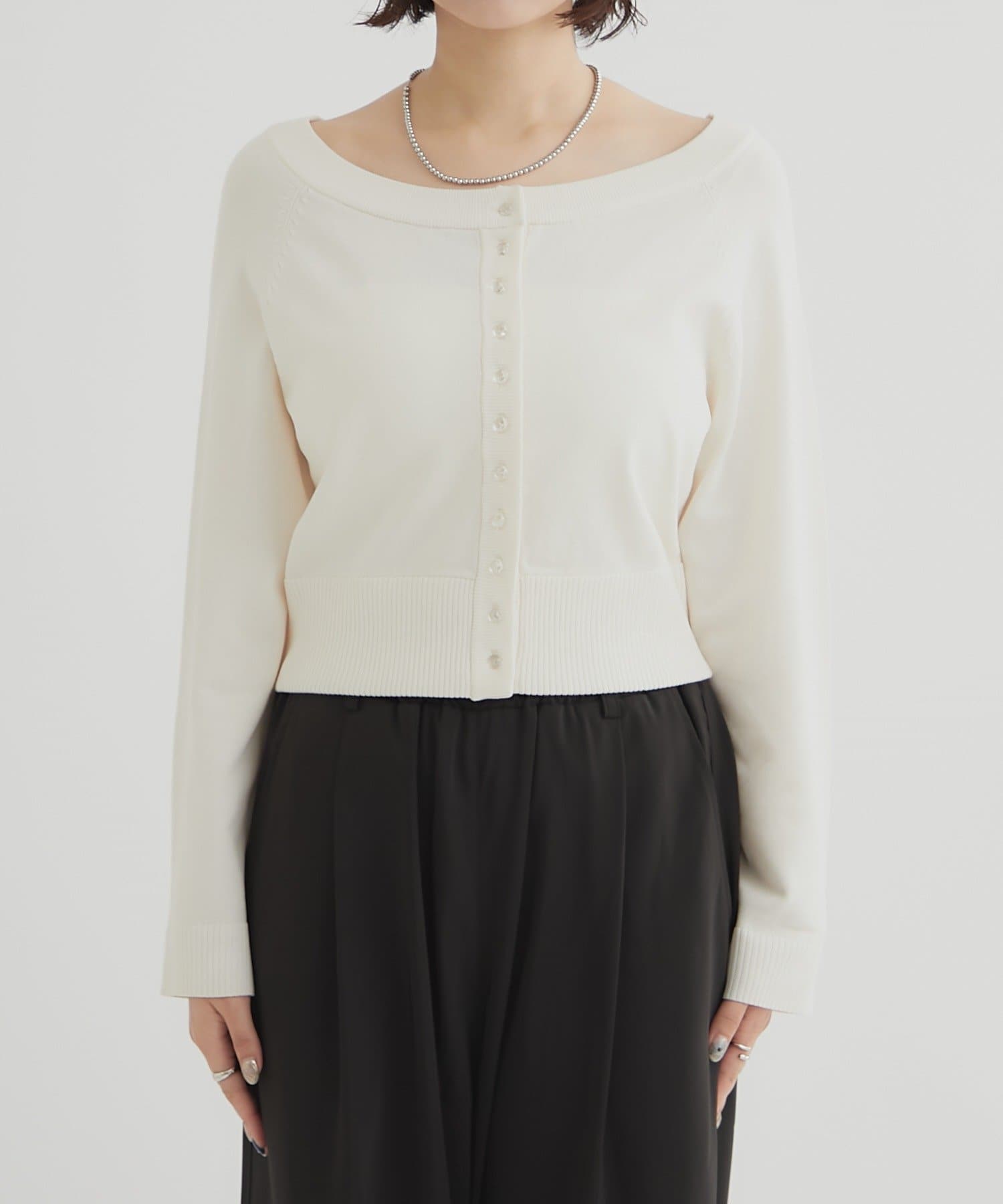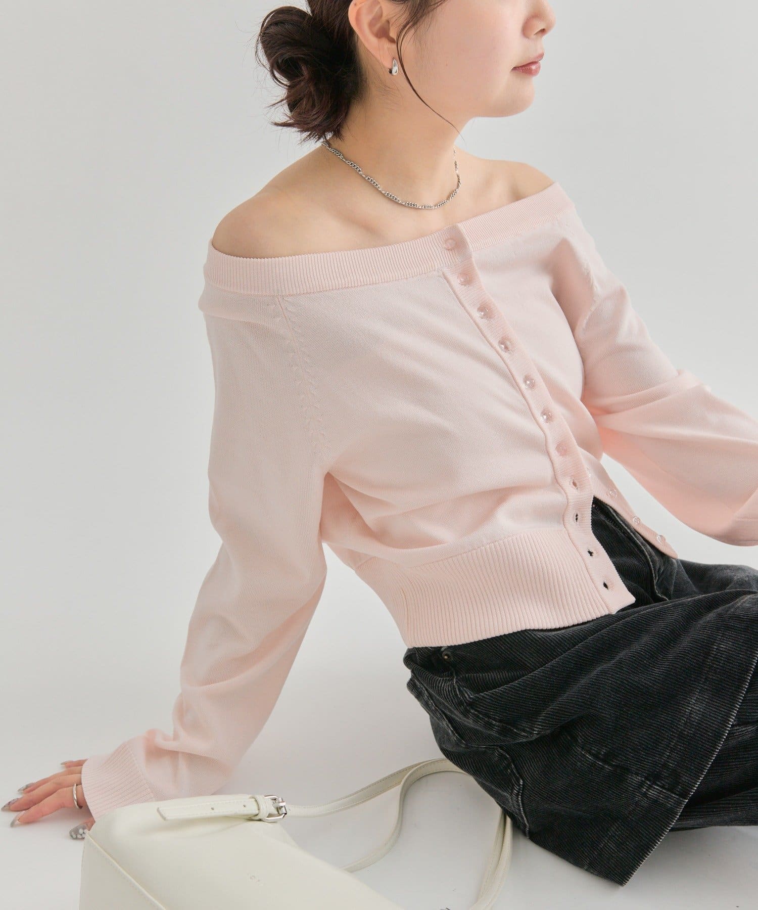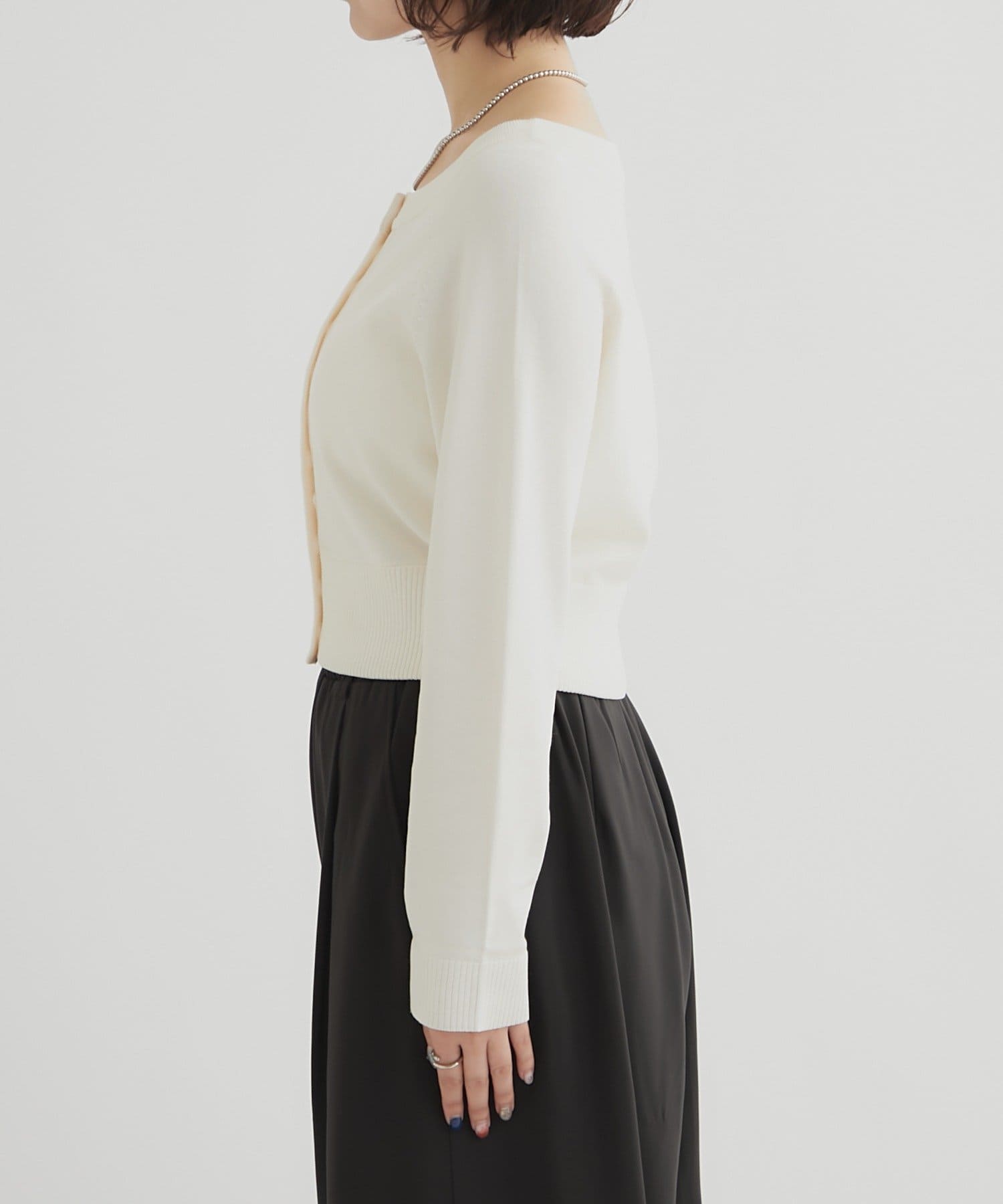 シンプルな女性らしさが魅力的なクリアボタン カーディガンが登場!