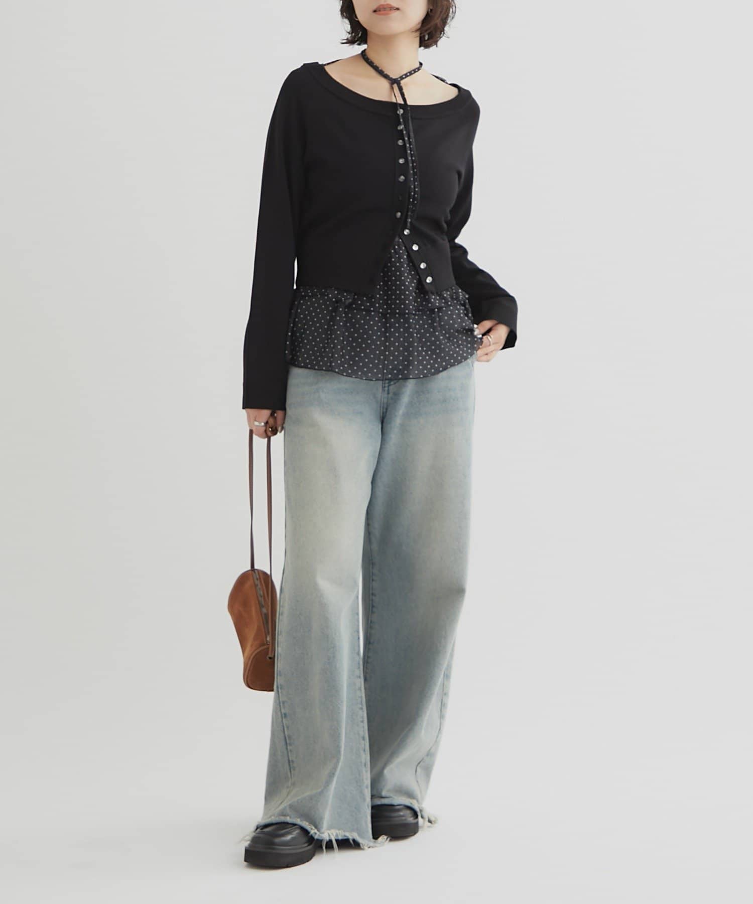 ・画像のようにボタン下部分を開けて抜け感を出すのも◎