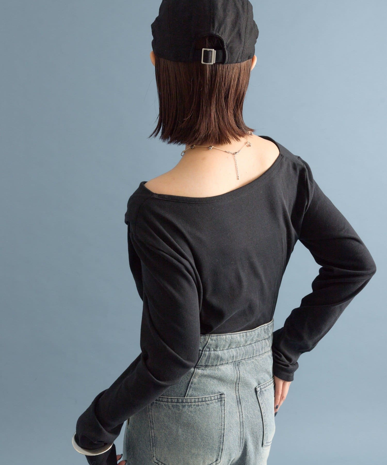 新色が登場♩オフショルデザインが可愛い♡1枚で抜け感が出せるロングTシャツ