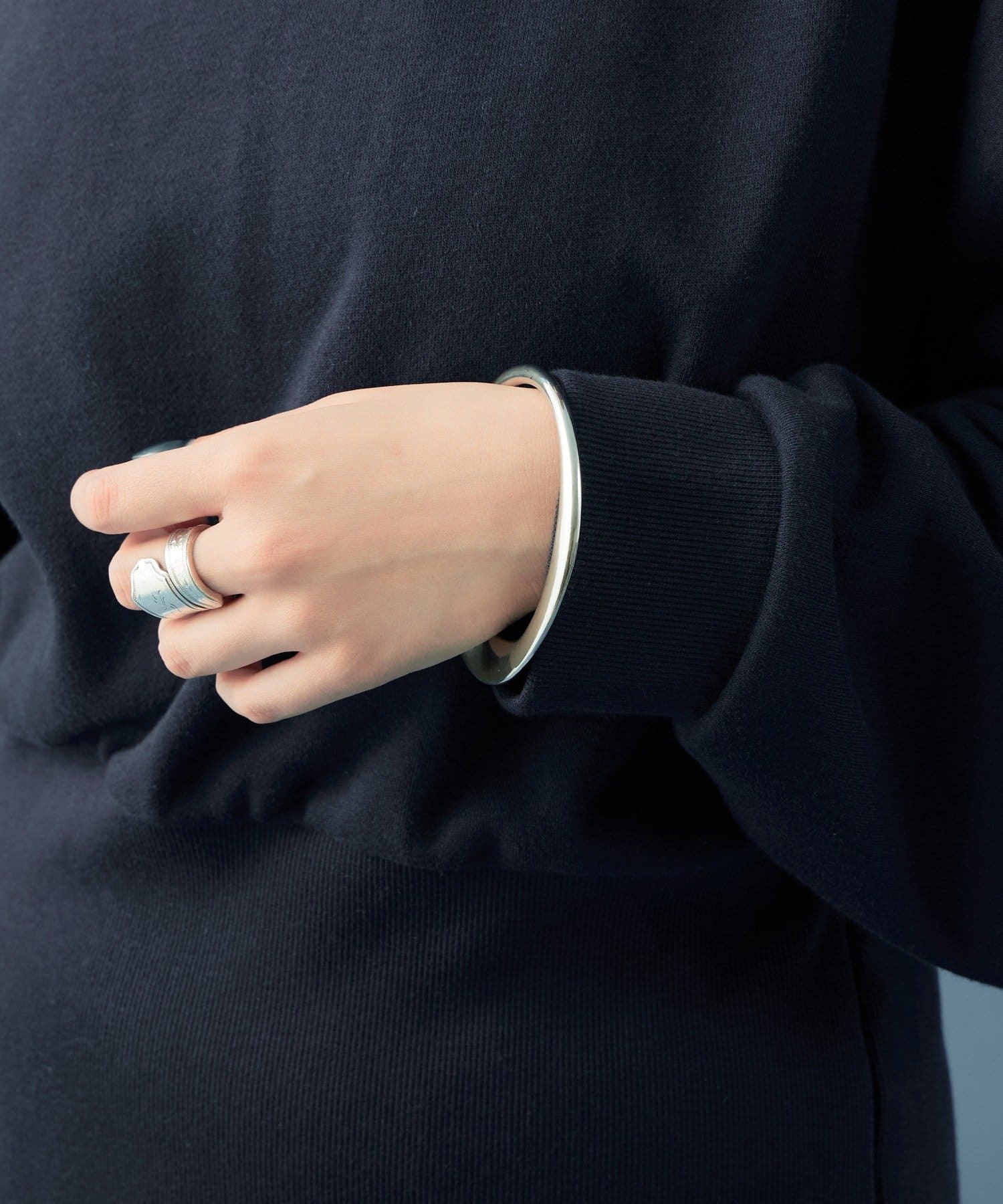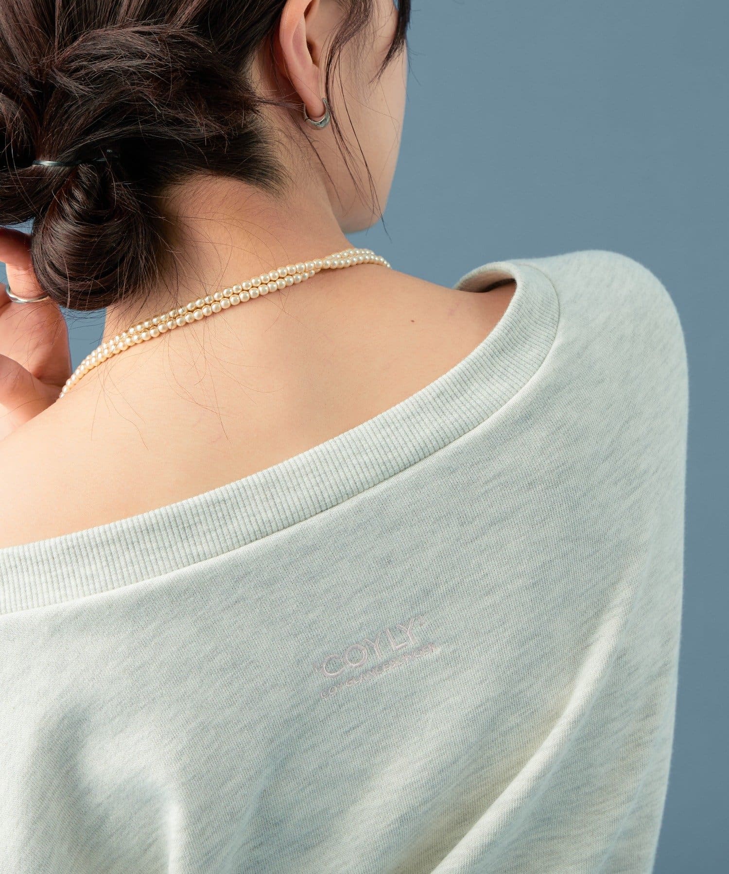 ・シンプルデザインのスウェットなので、存在感のあるネックレスをプラスするのも◎
