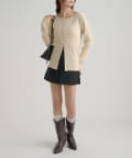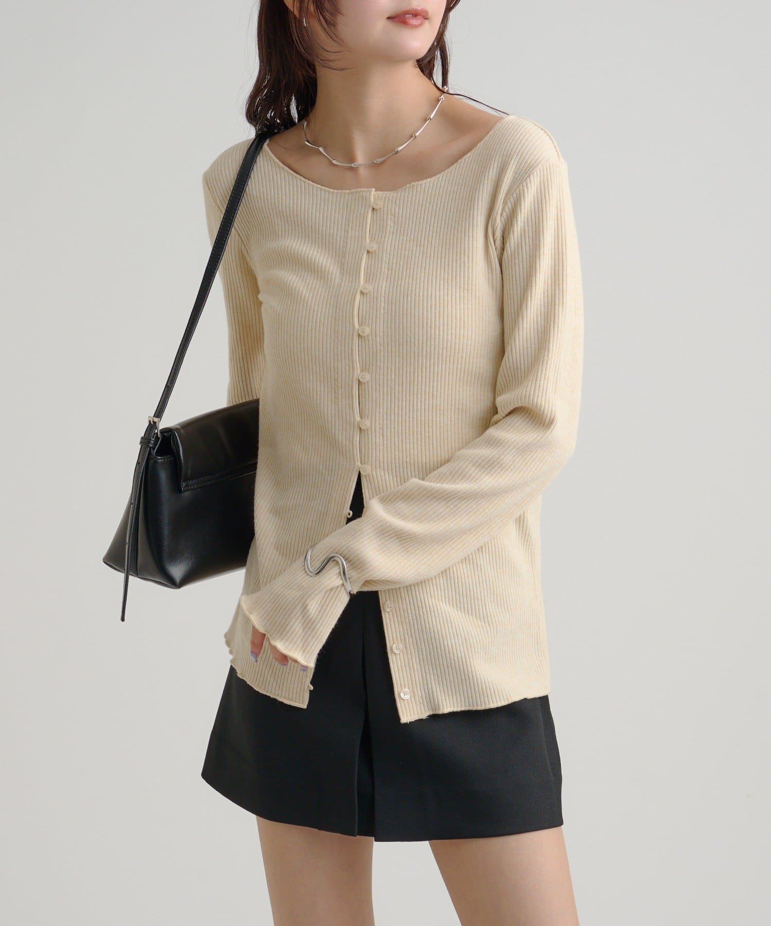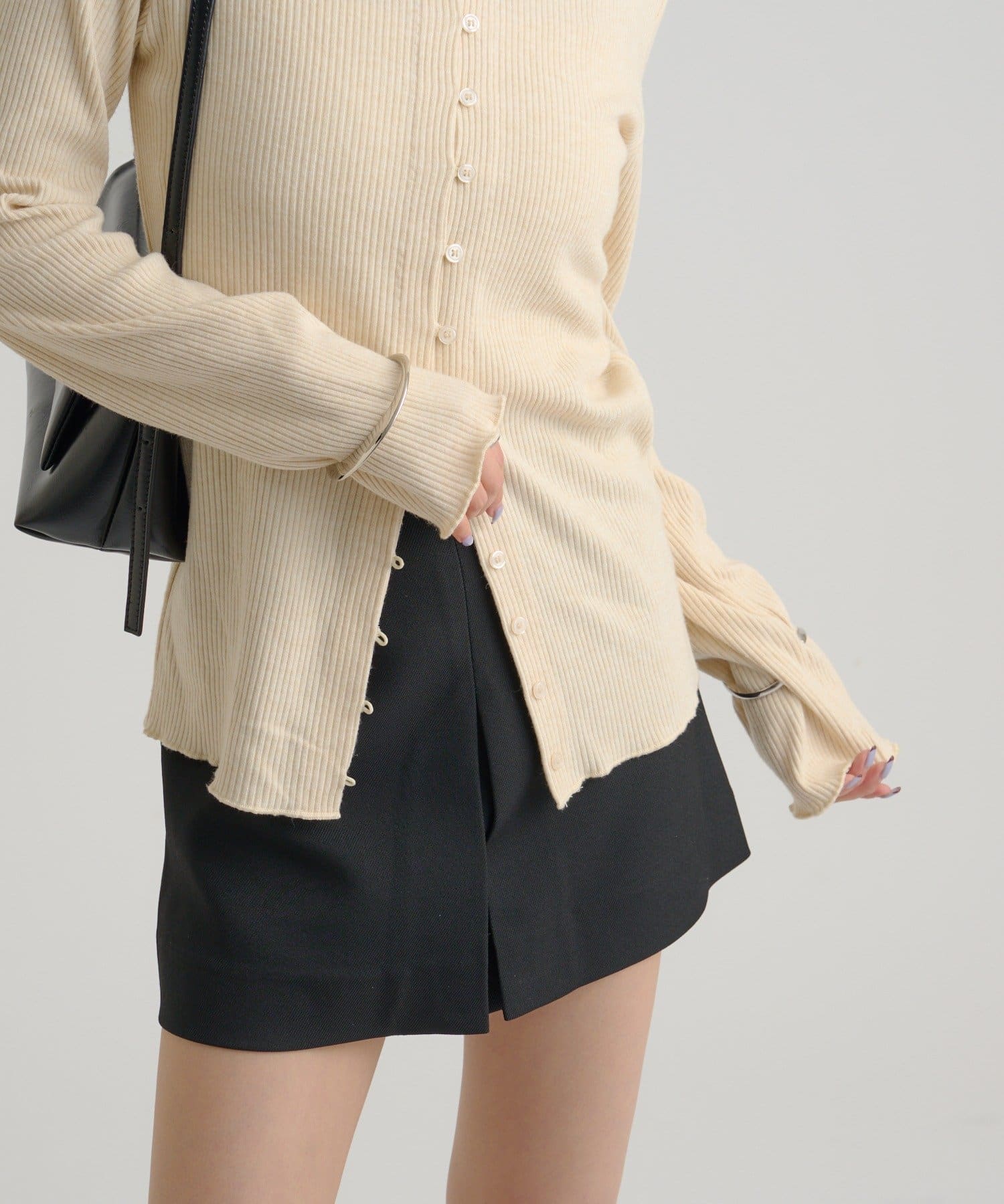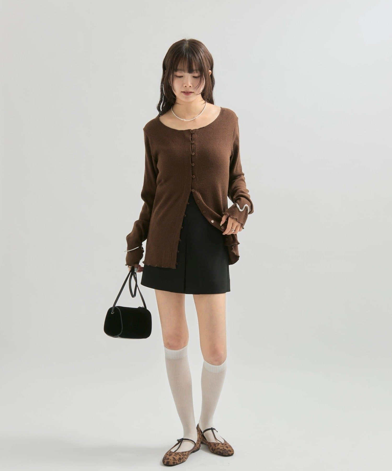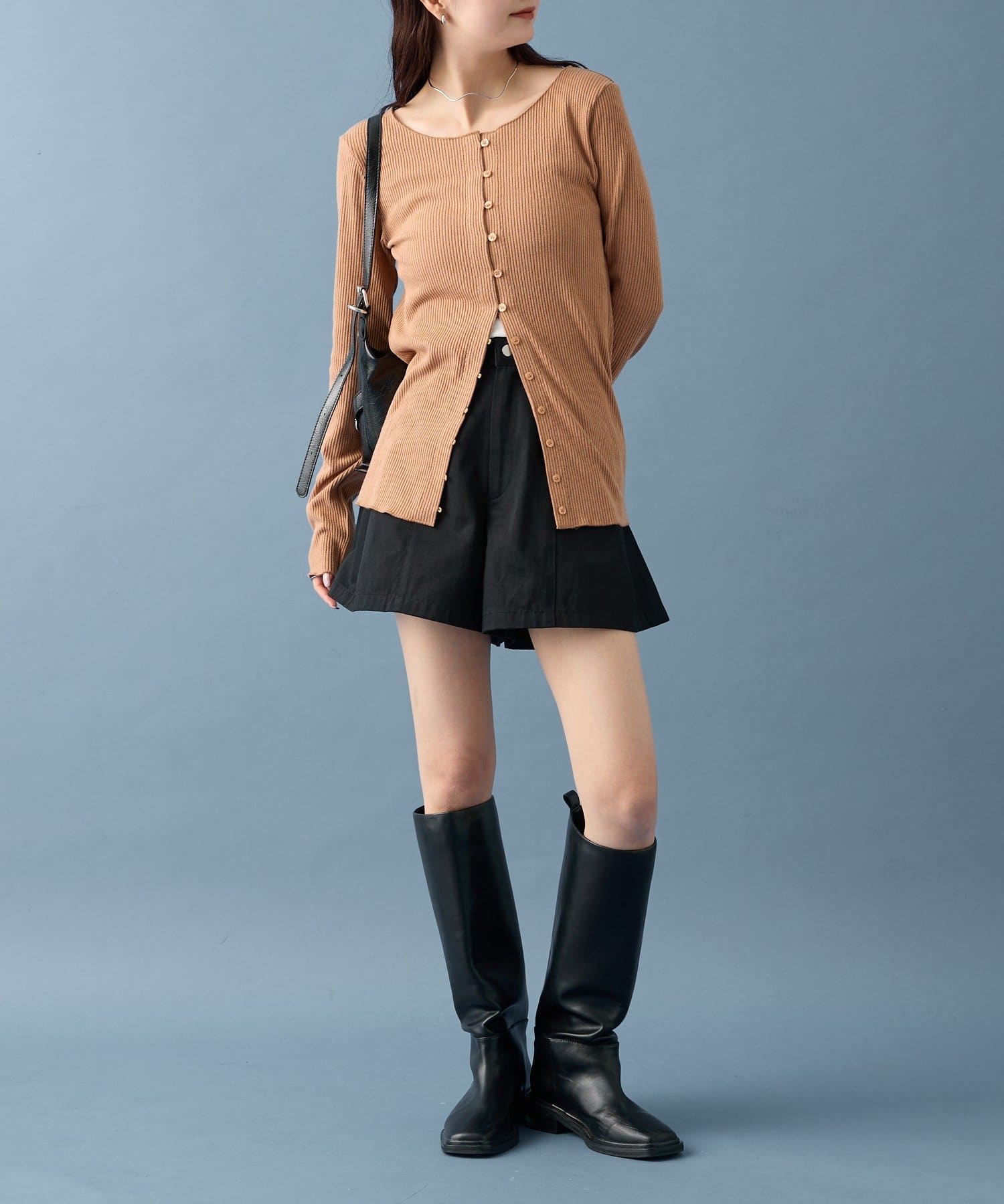 ・カーディガンが長めのデザインなので、ミニ丈のボトムスと合わせも可愛く決まります!