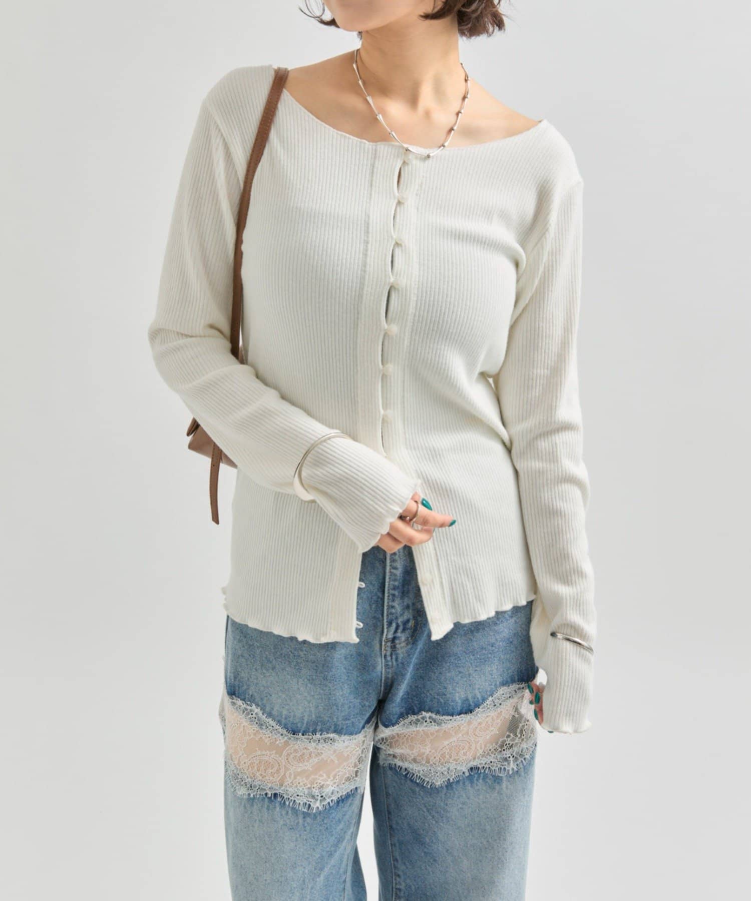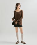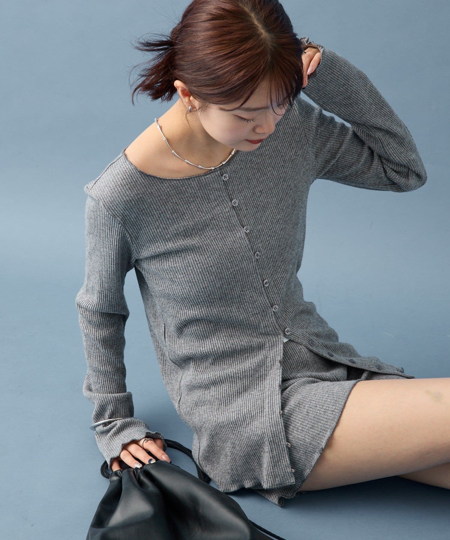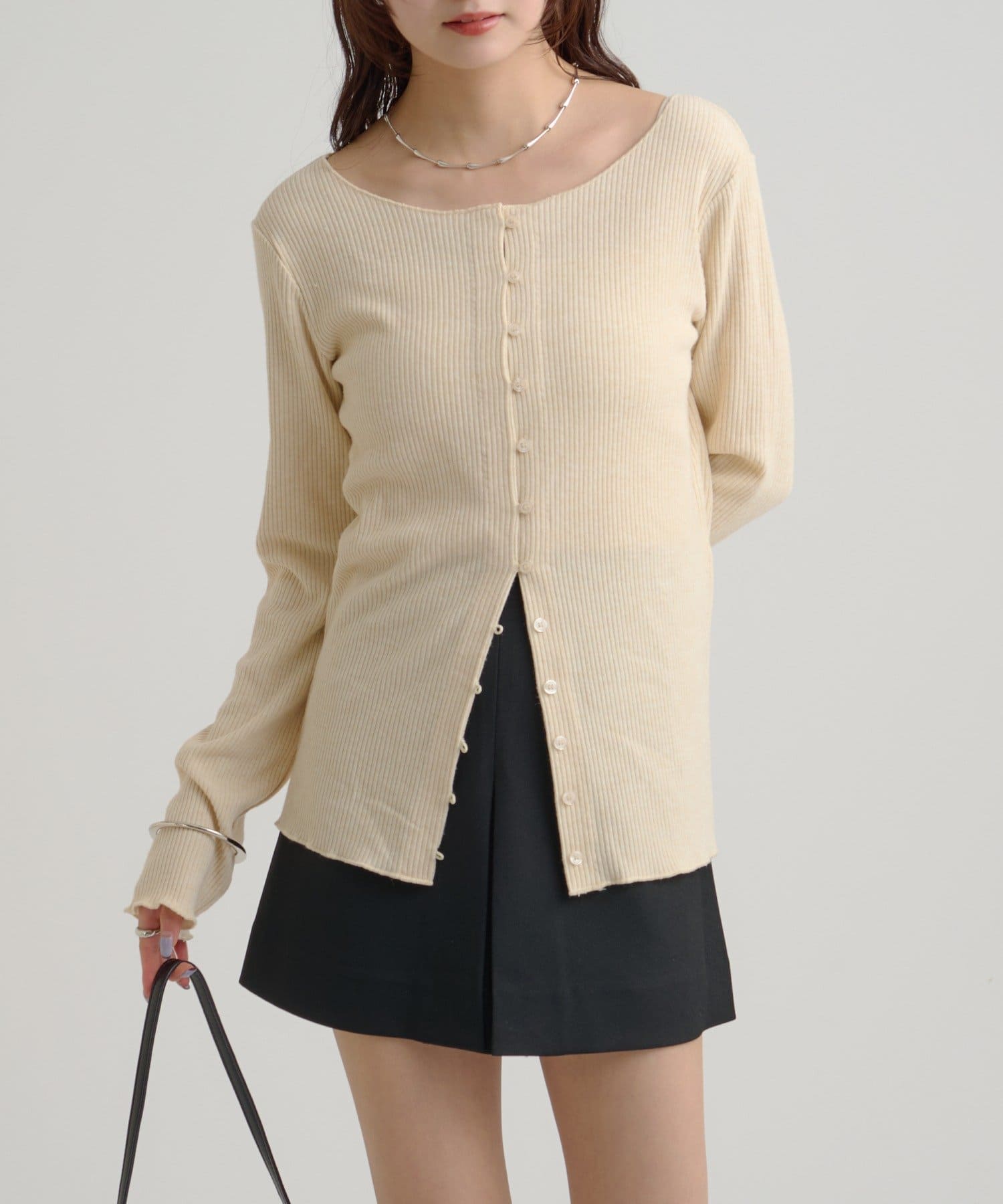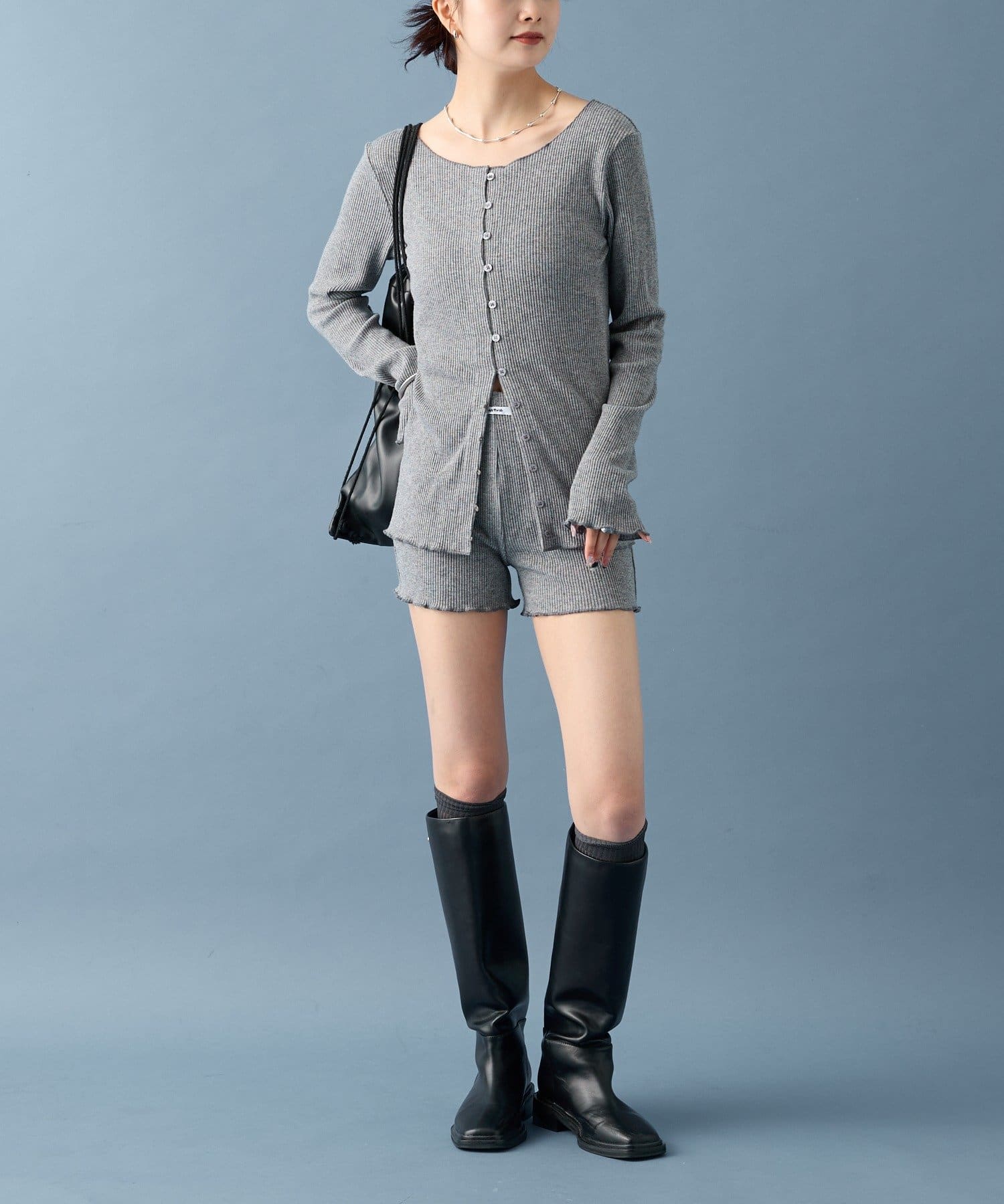 ・カーディガンが長めのデザインなので、ミニ丈のボトムスと合わせも可愛く決まります!