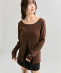 ・カーディガンのボタン下部分を少し開けて、抜け感をプラスして着こなすのも◎