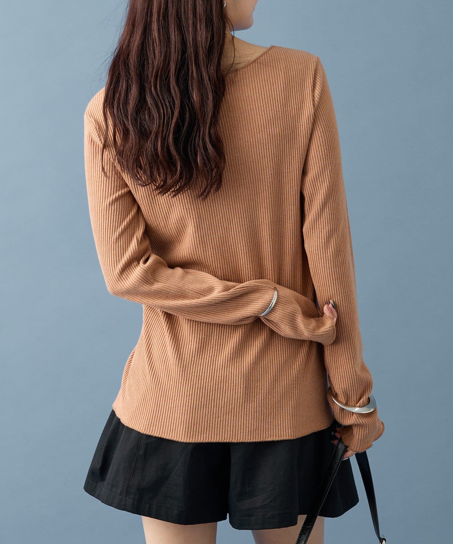 ・リブ素材で伸縮性もあり、程よいシルエットのフィット感なので着心地も抜群です!