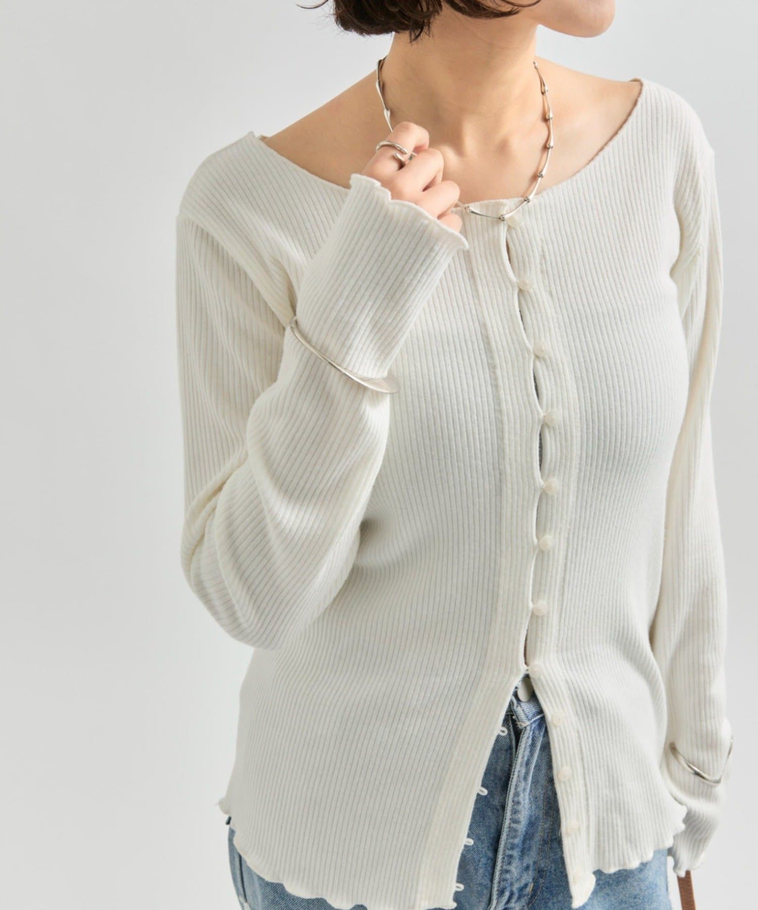 ・程よいフィット感で、スタイルアップ効果も期待できます。ボタンを閉じてプルオーバーとして着ても、羽織りとして着ても◎