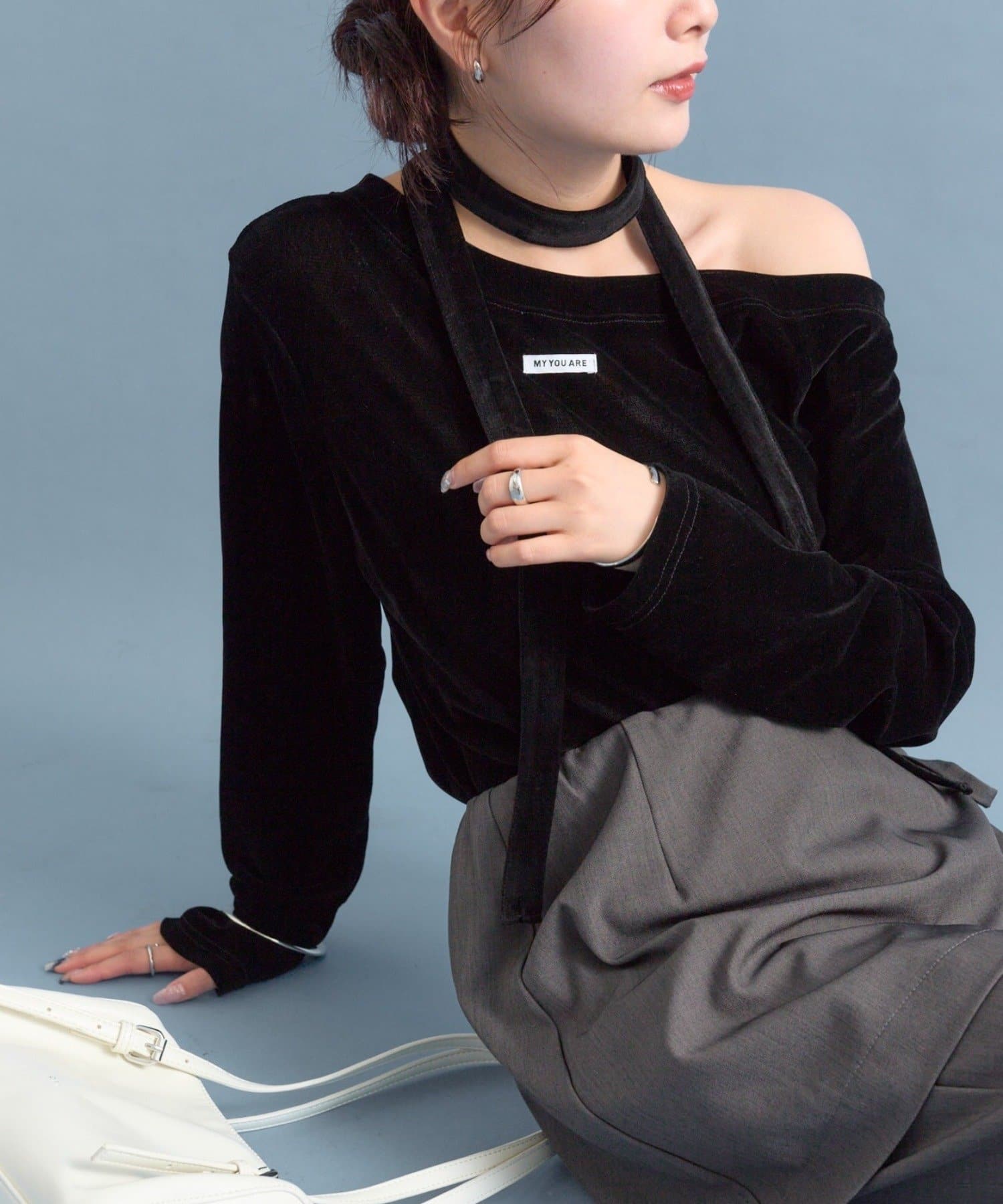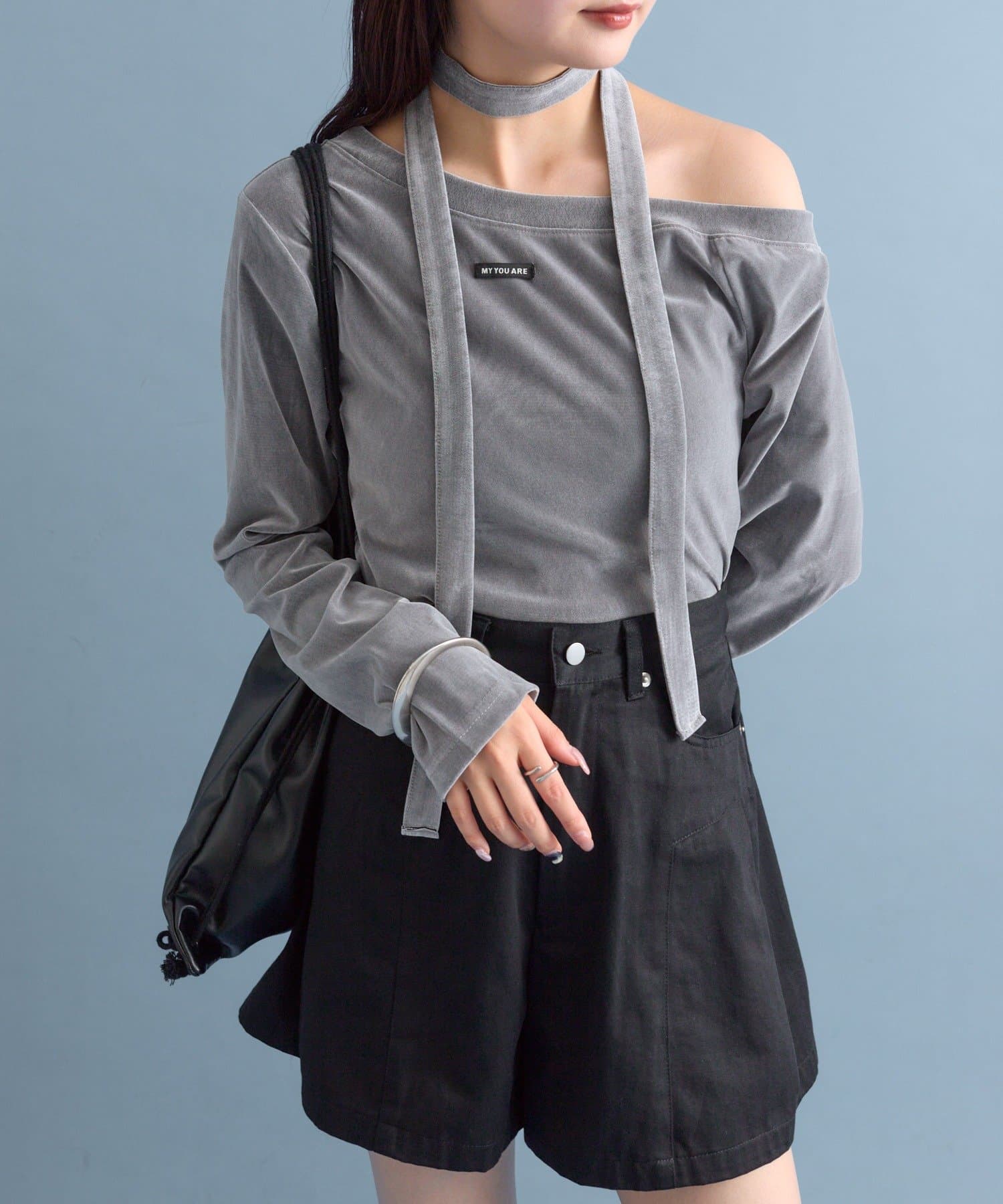 シンプルなデザインですがワンショルとチョーカーで程よく肌魅せとトレンド感があるアイテムで可愛いです!