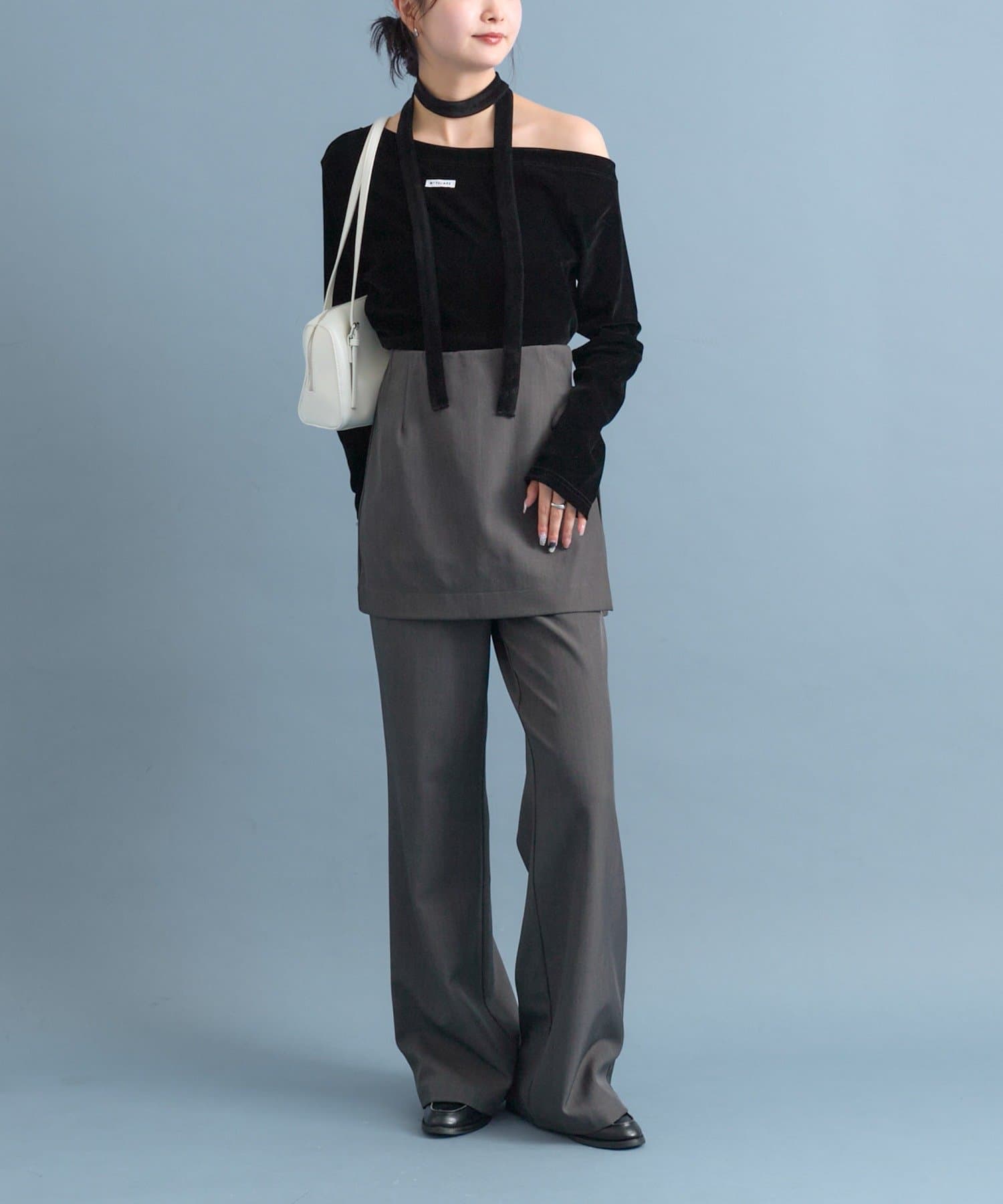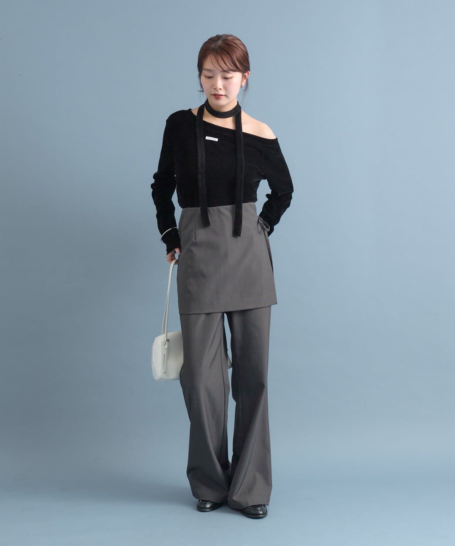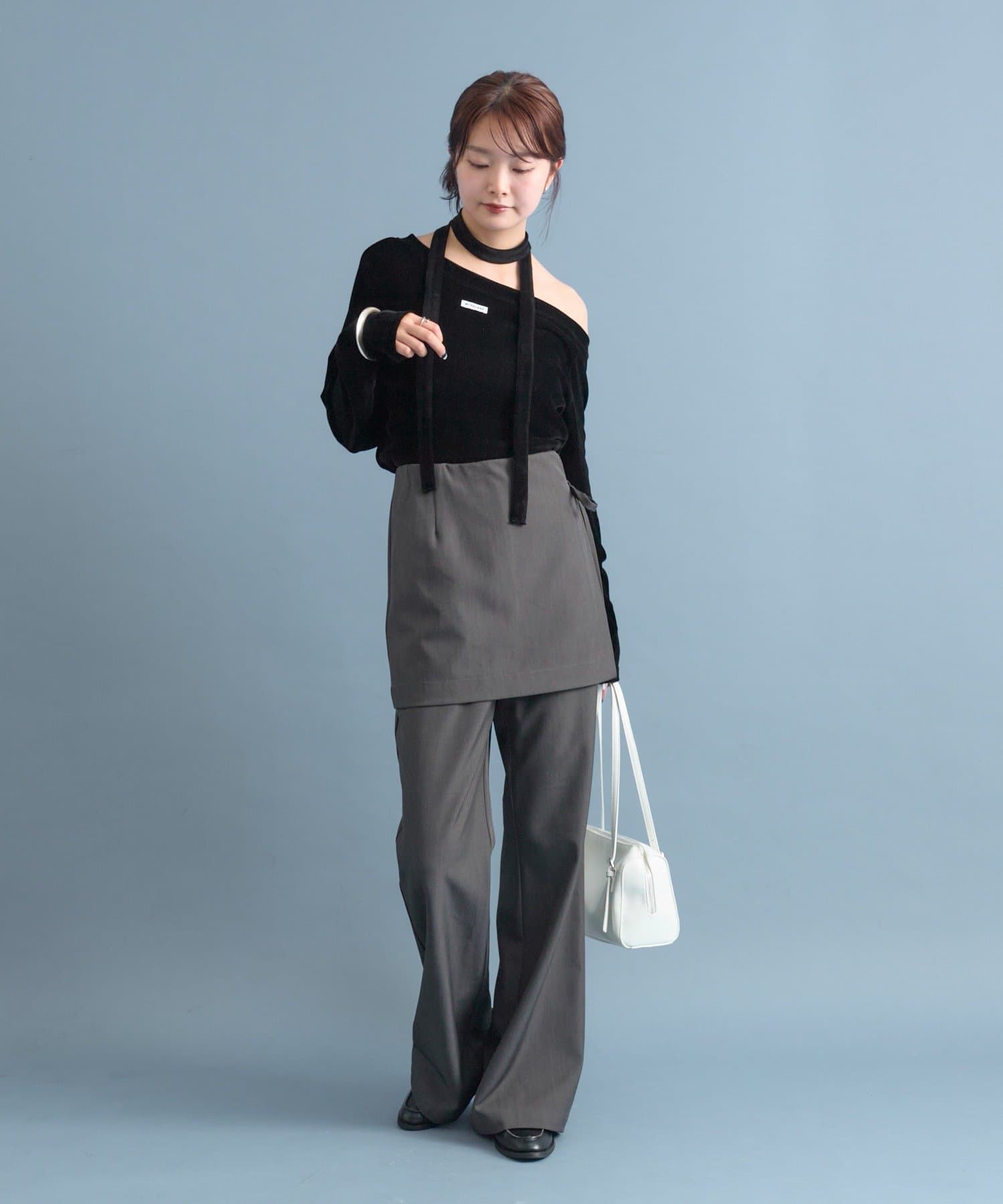 ・デザイン性のあるレイヤードパンツを合わせてトレンド感がアップするスタイリングもおすすめです♡