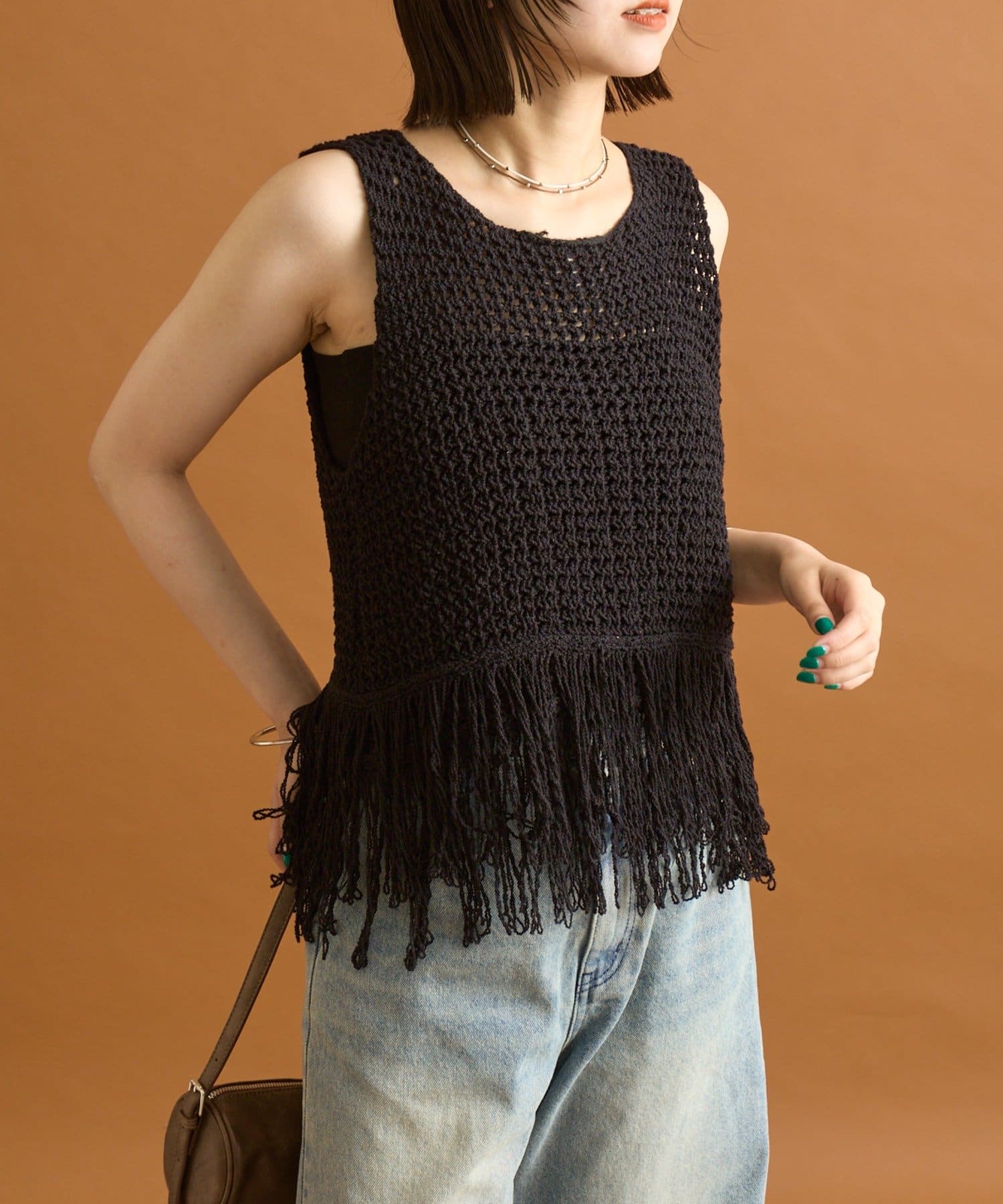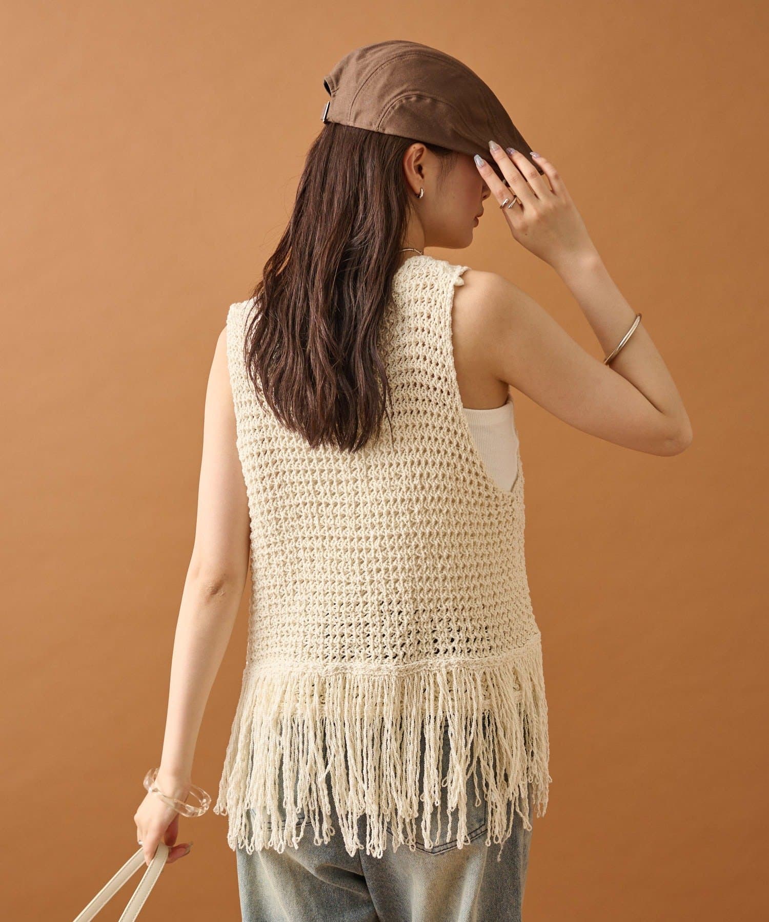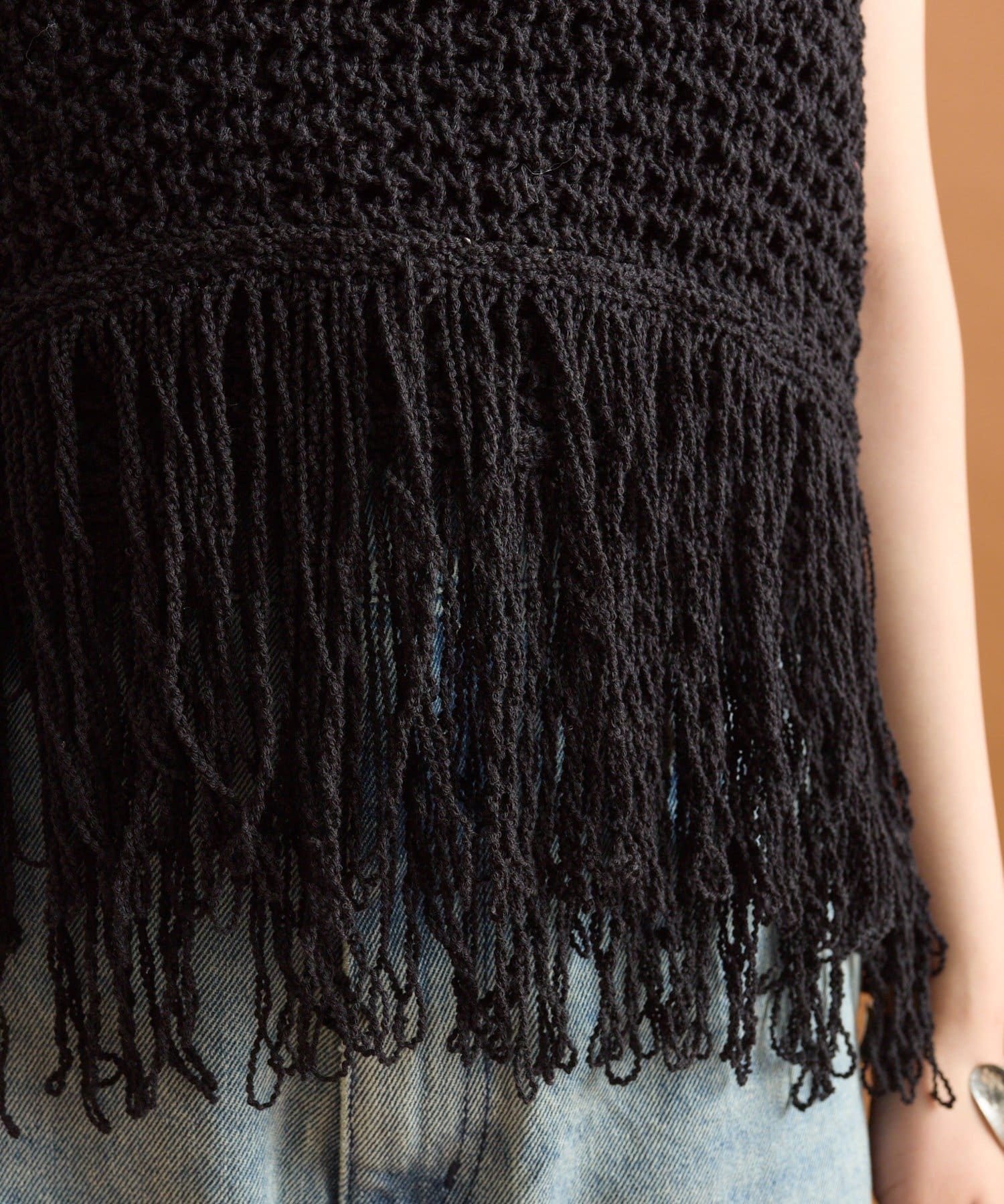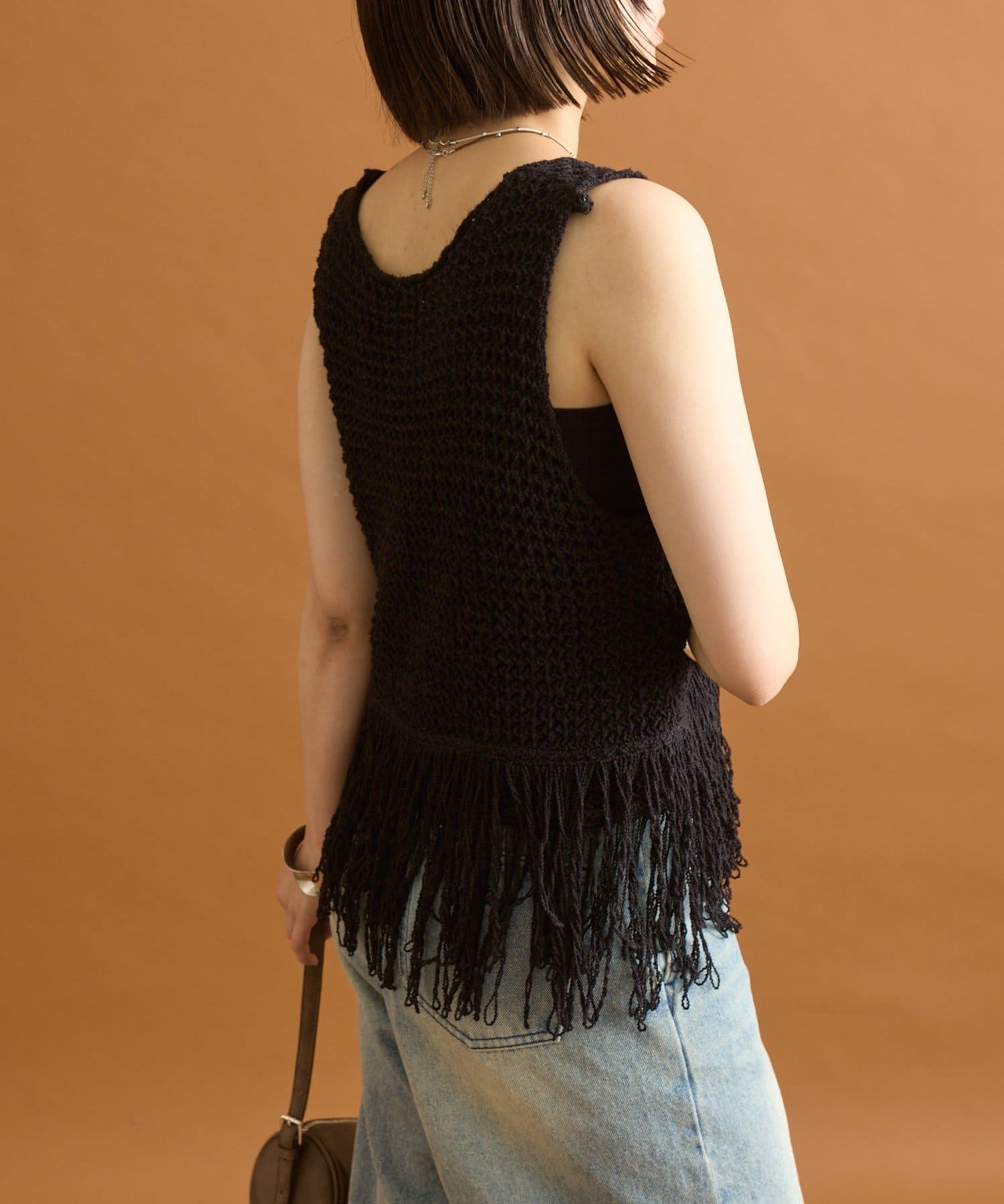 裾のフリンジが目を惹くフリンジニットベストが登場!