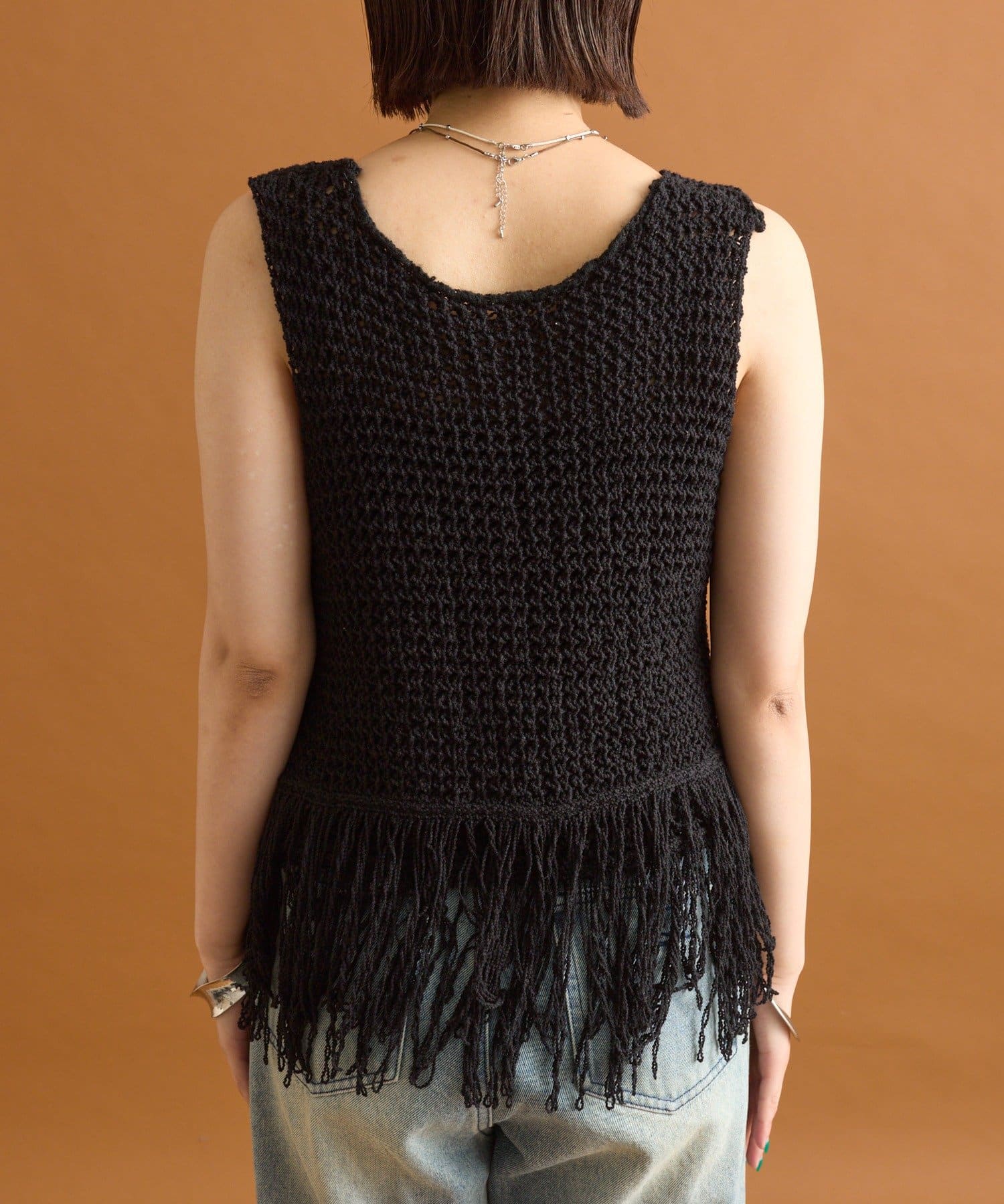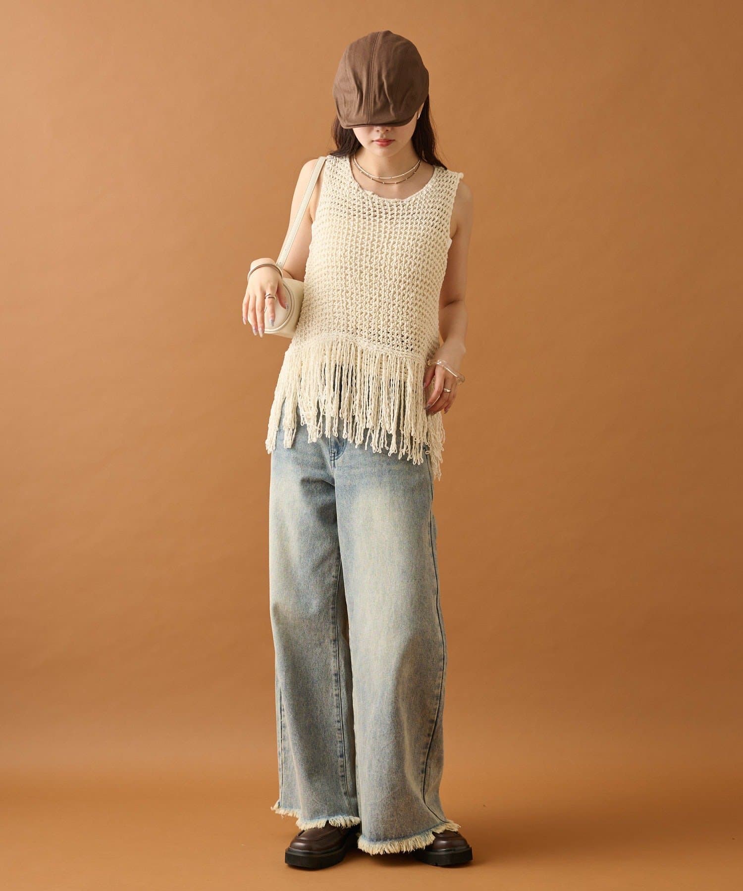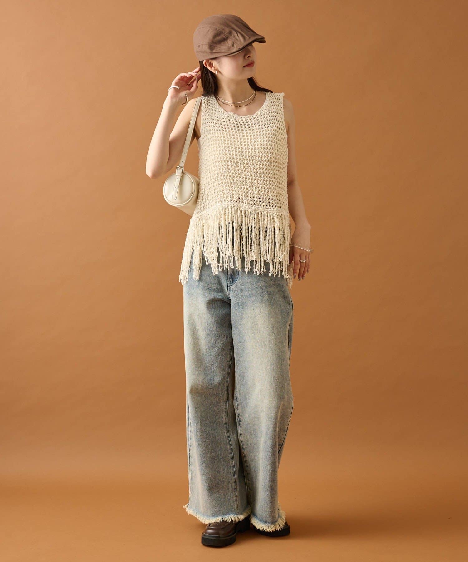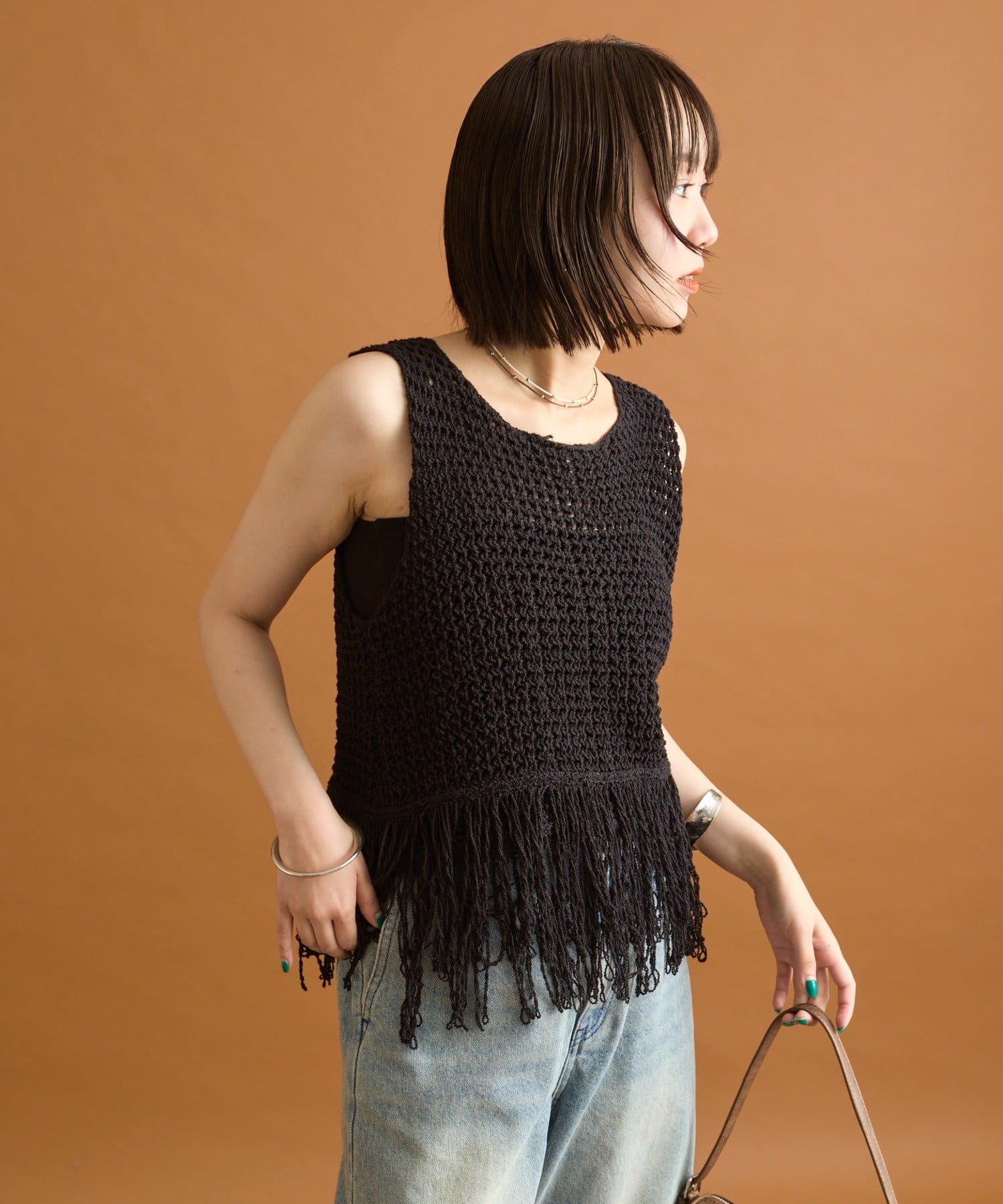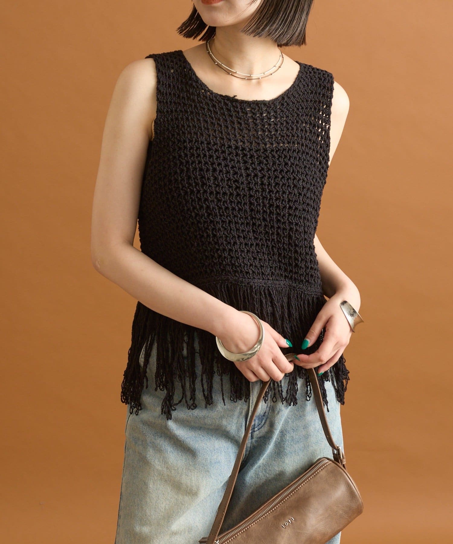 裾のフリンジが目を惹くフリンジニットベストが登場!