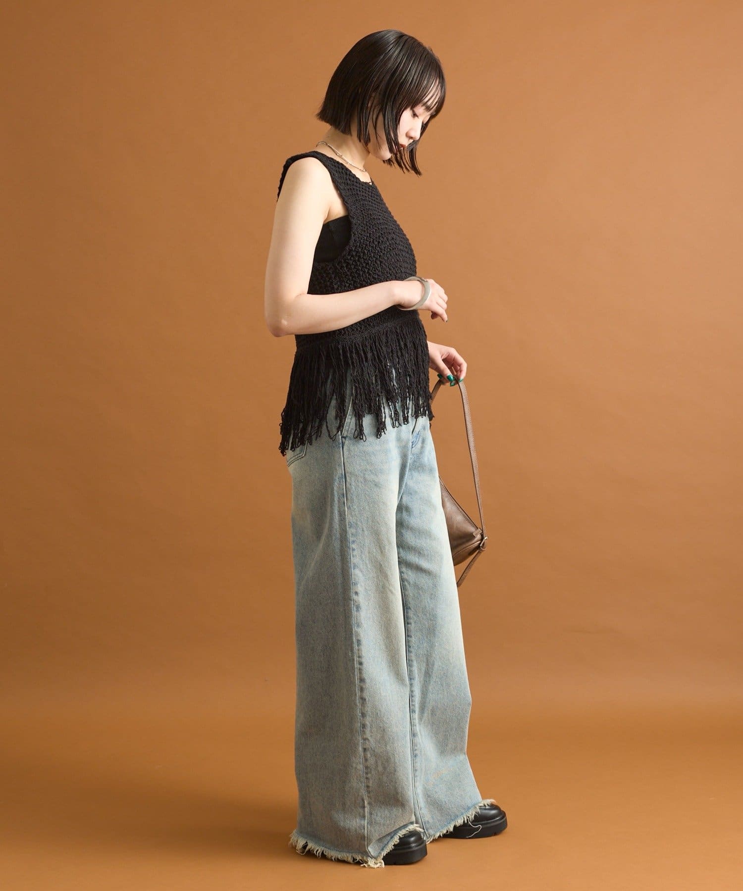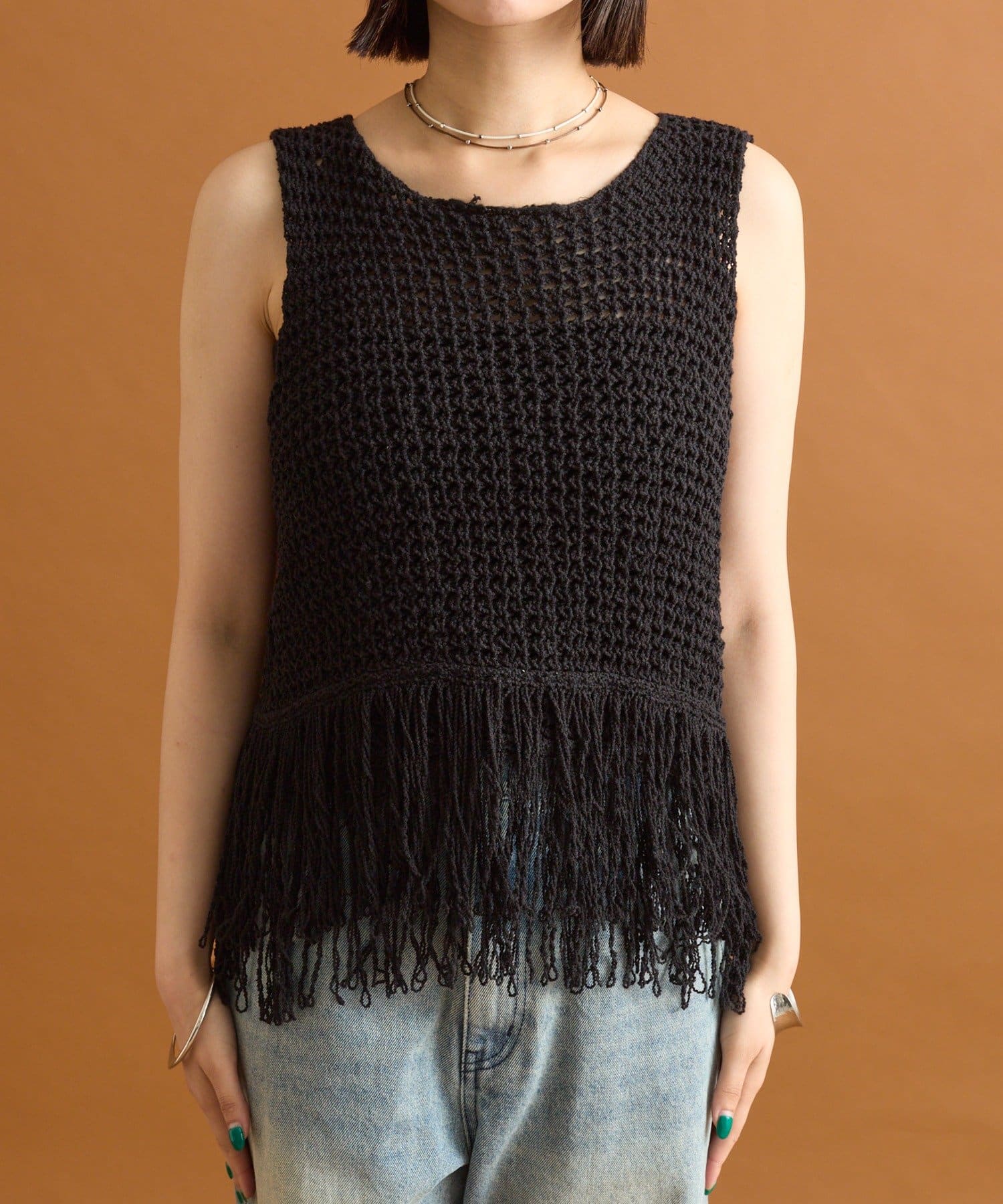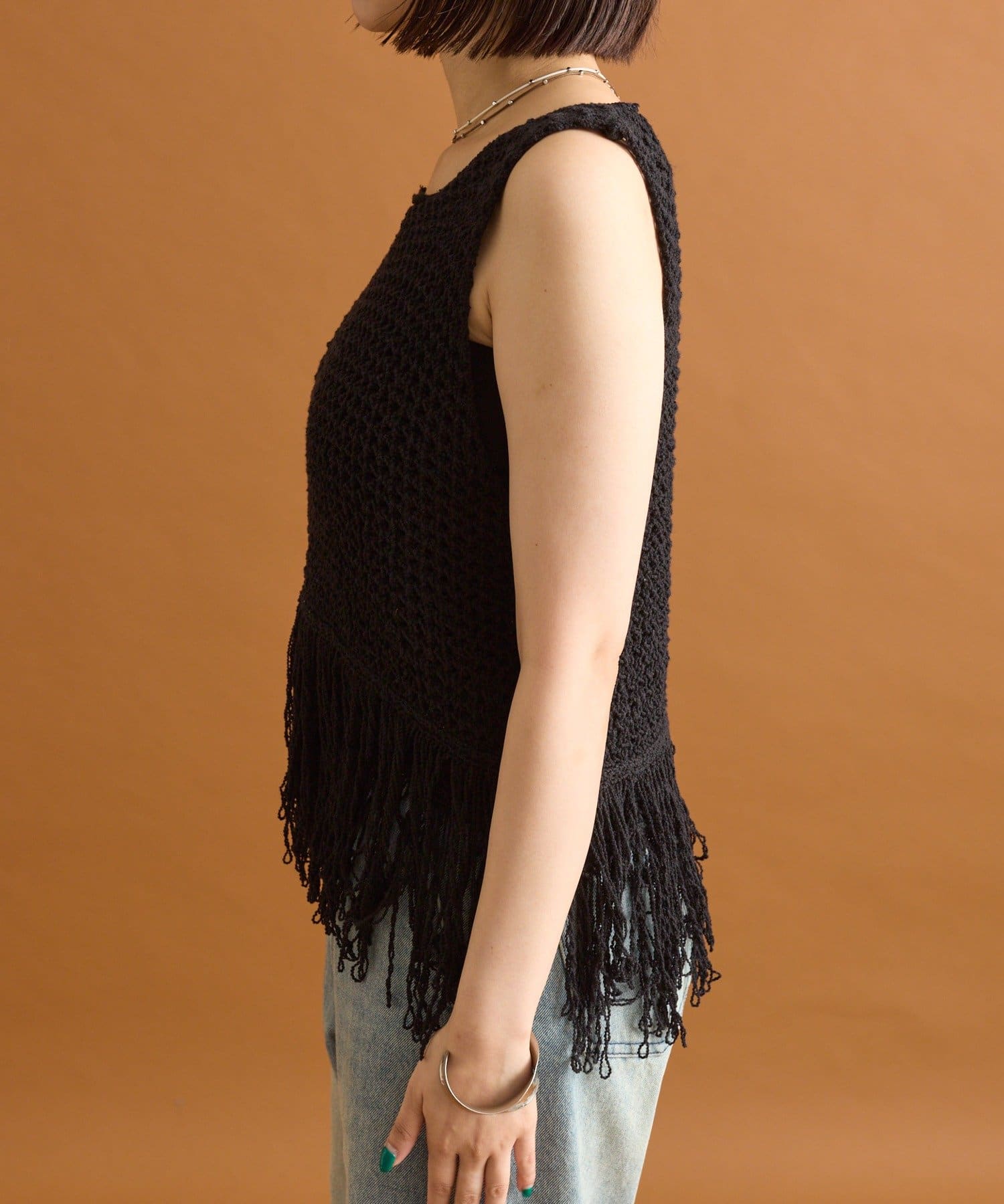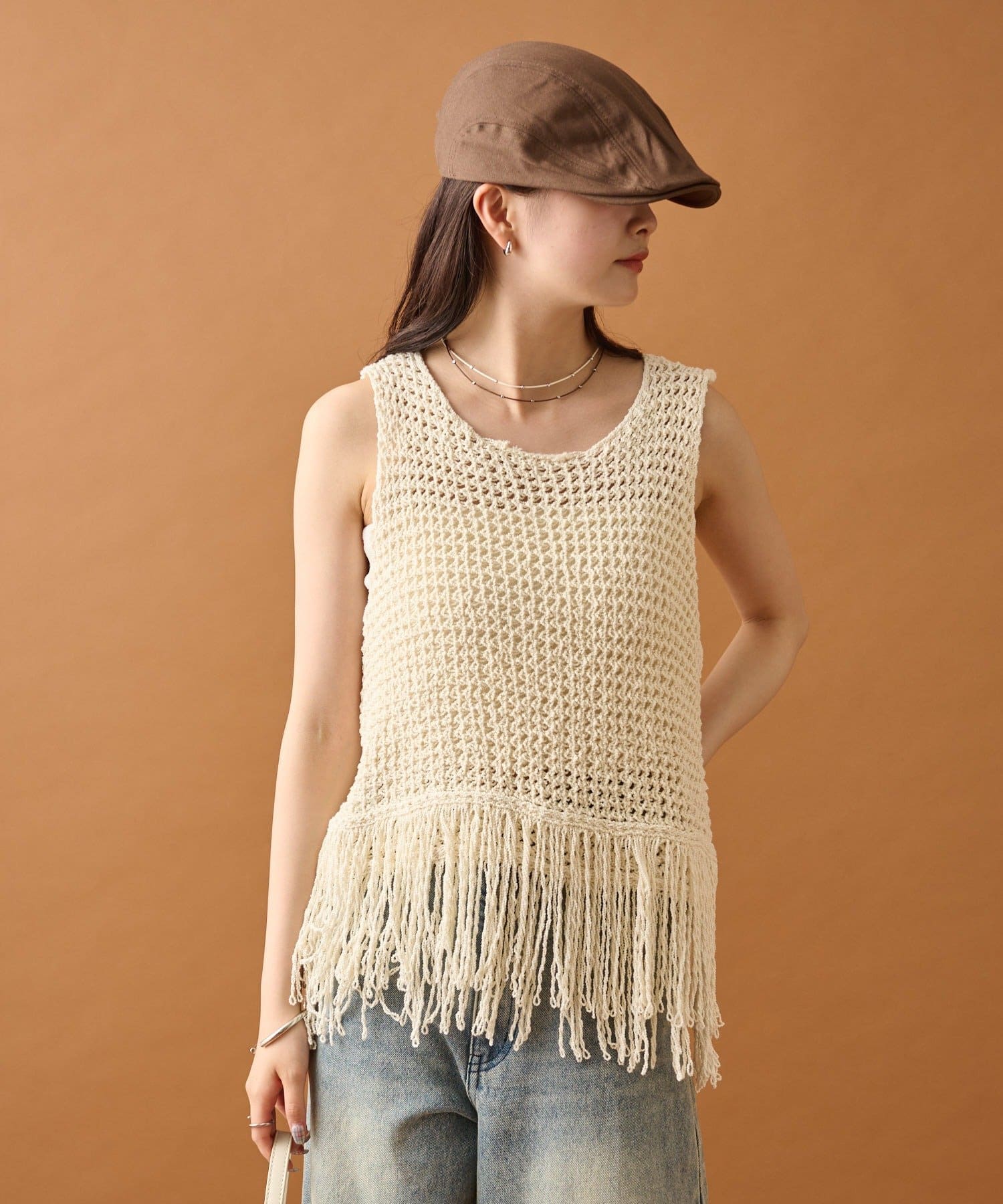 裾のフリンジが目を惹くフリンジニットベストが登場!