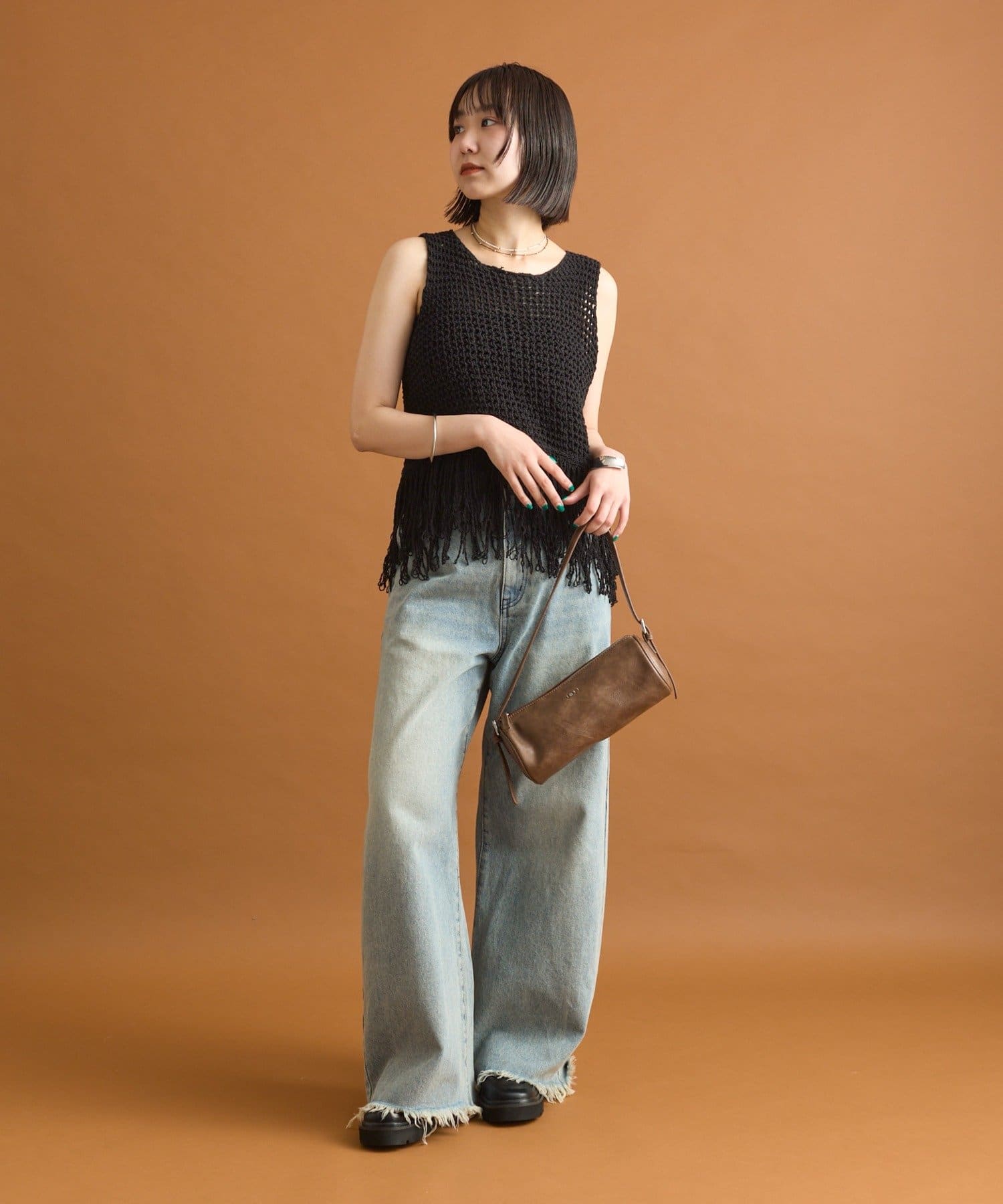 ・ショートのボトムスと合わせて、フリンジの可愛さを主役にするのも♡