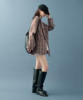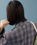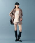 ・ゆっとりとしたシルエットながらもチェック柄はきちんと感のスタイルも演出。