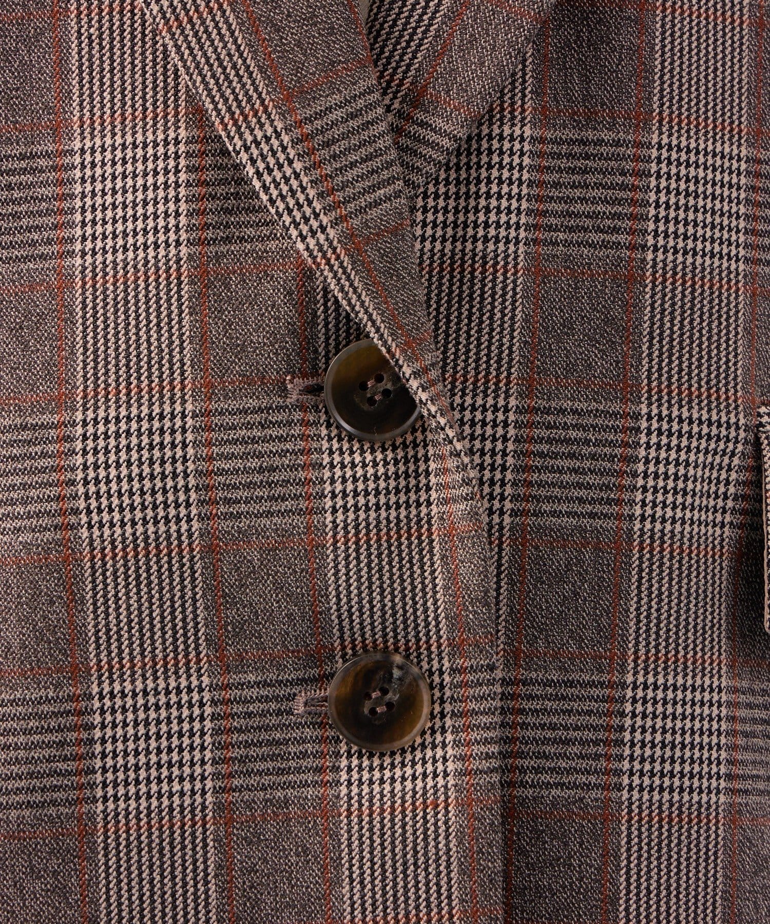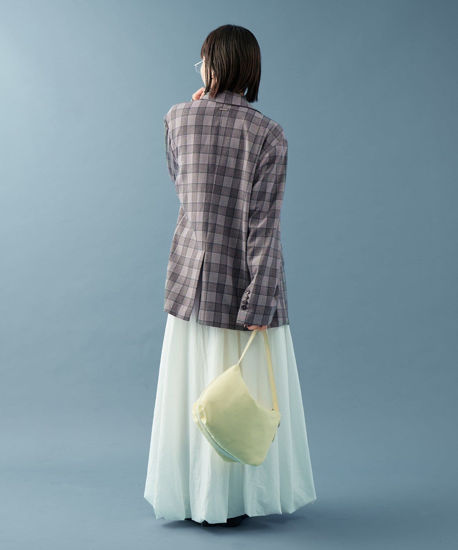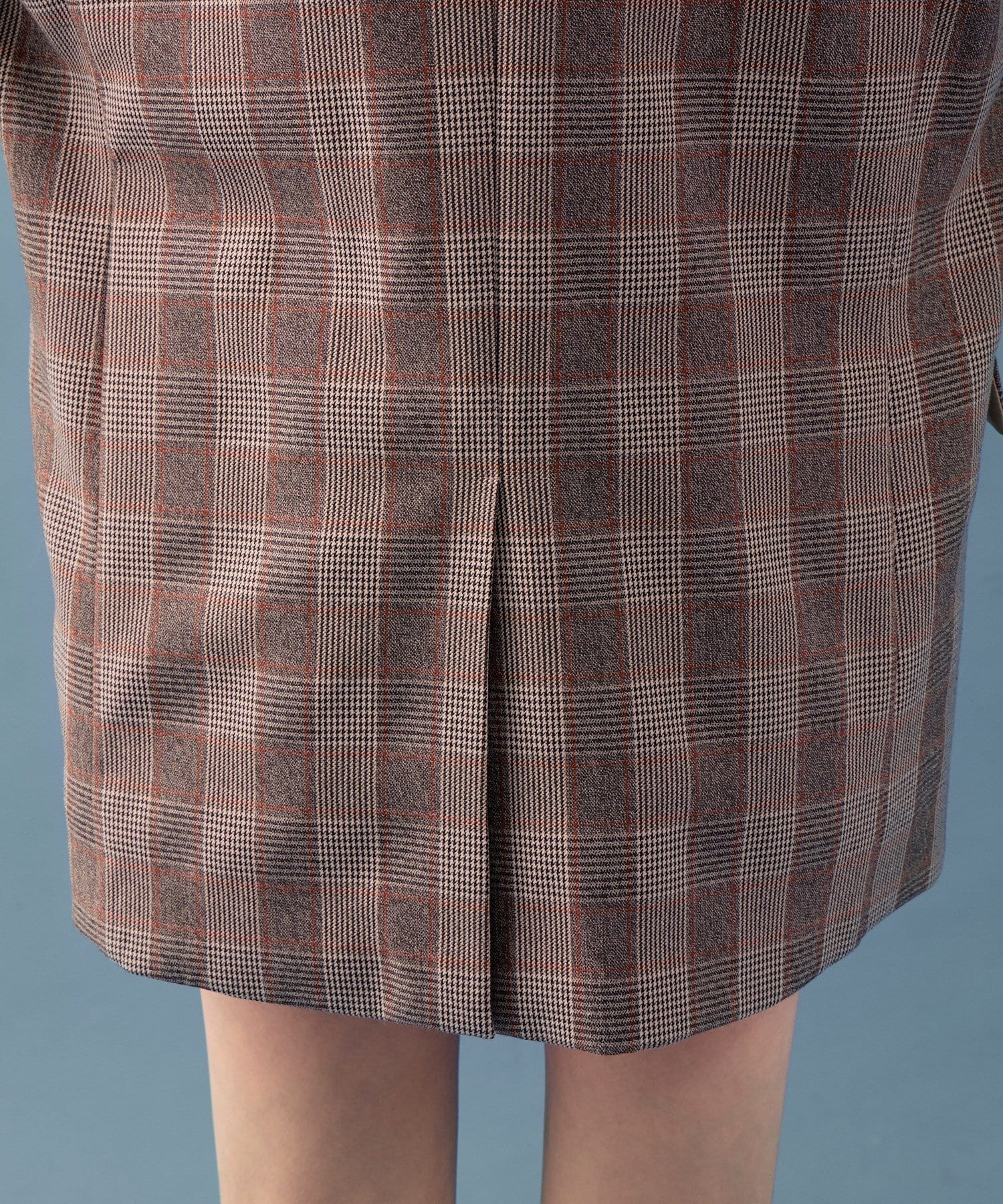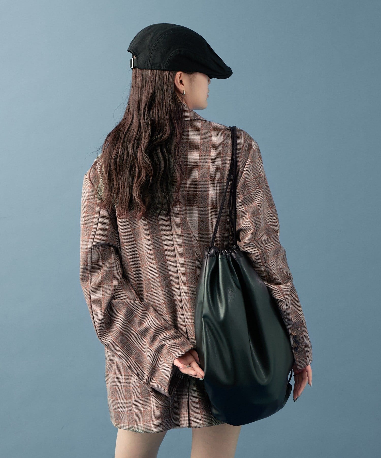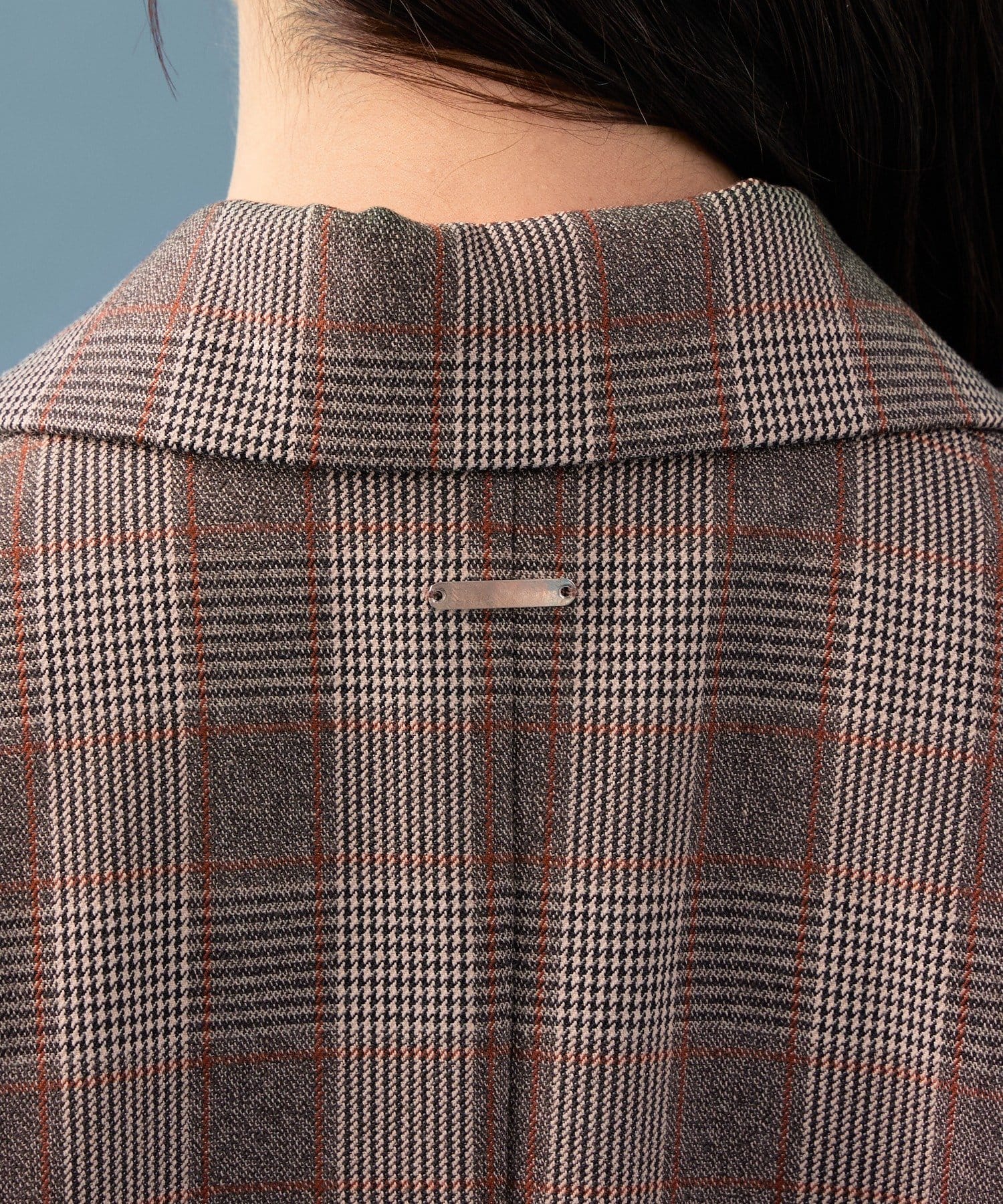 ・落ち着いた色味の大人っぽさを感じられるチェックジャケット。トレンド感のある大きめのサイズ感が可愛らしさもプラス。