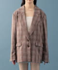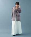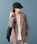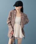 ・落ち着いた色味の大人っぽさを感じられるチェックジャケット。トレンド感のある大きめのサイズ感が可愛らしさもプラス。