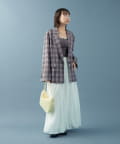 ・ゆっとりとしたシルエットながらもチェック柄はきちんと感のスタイルも演出。