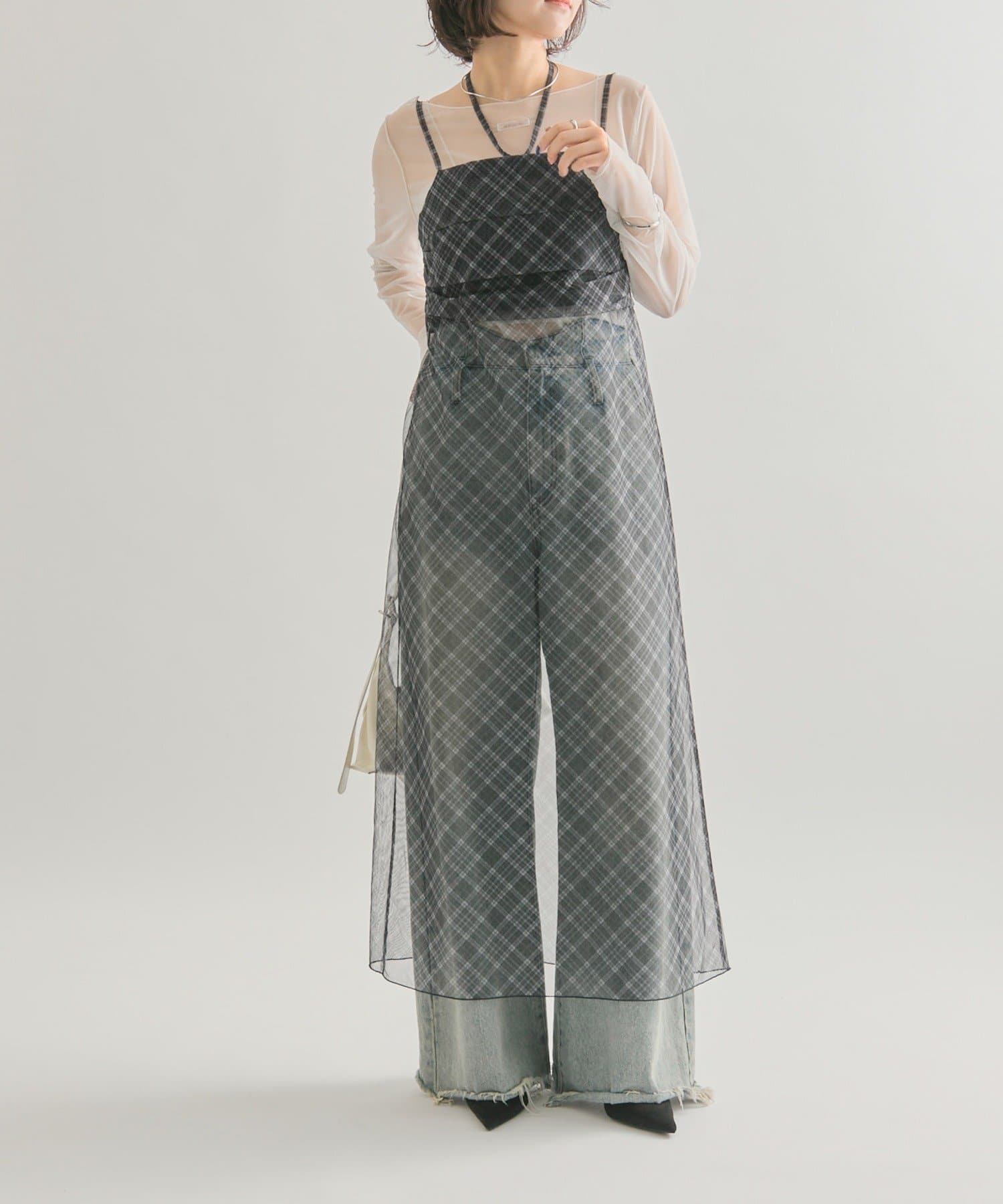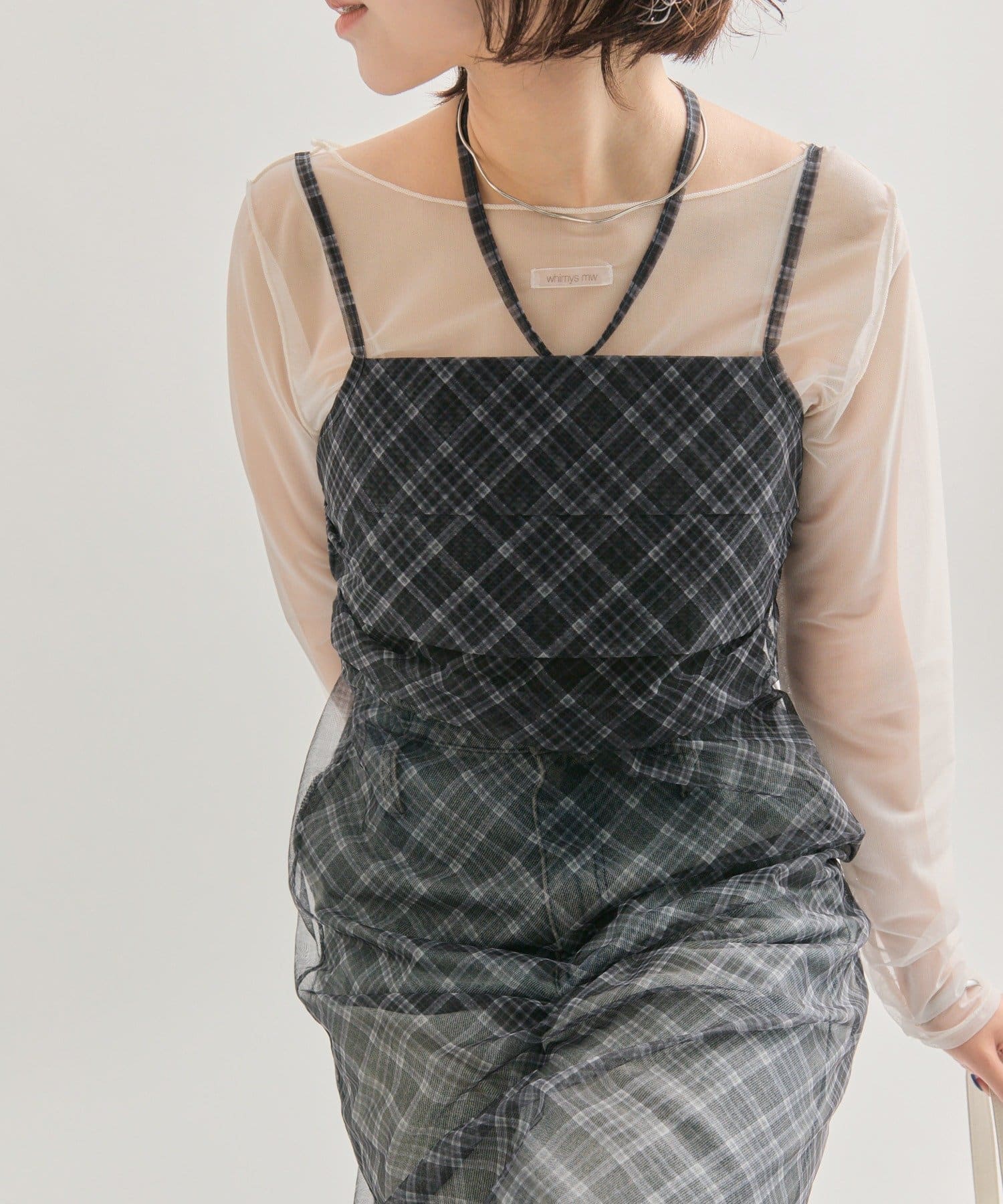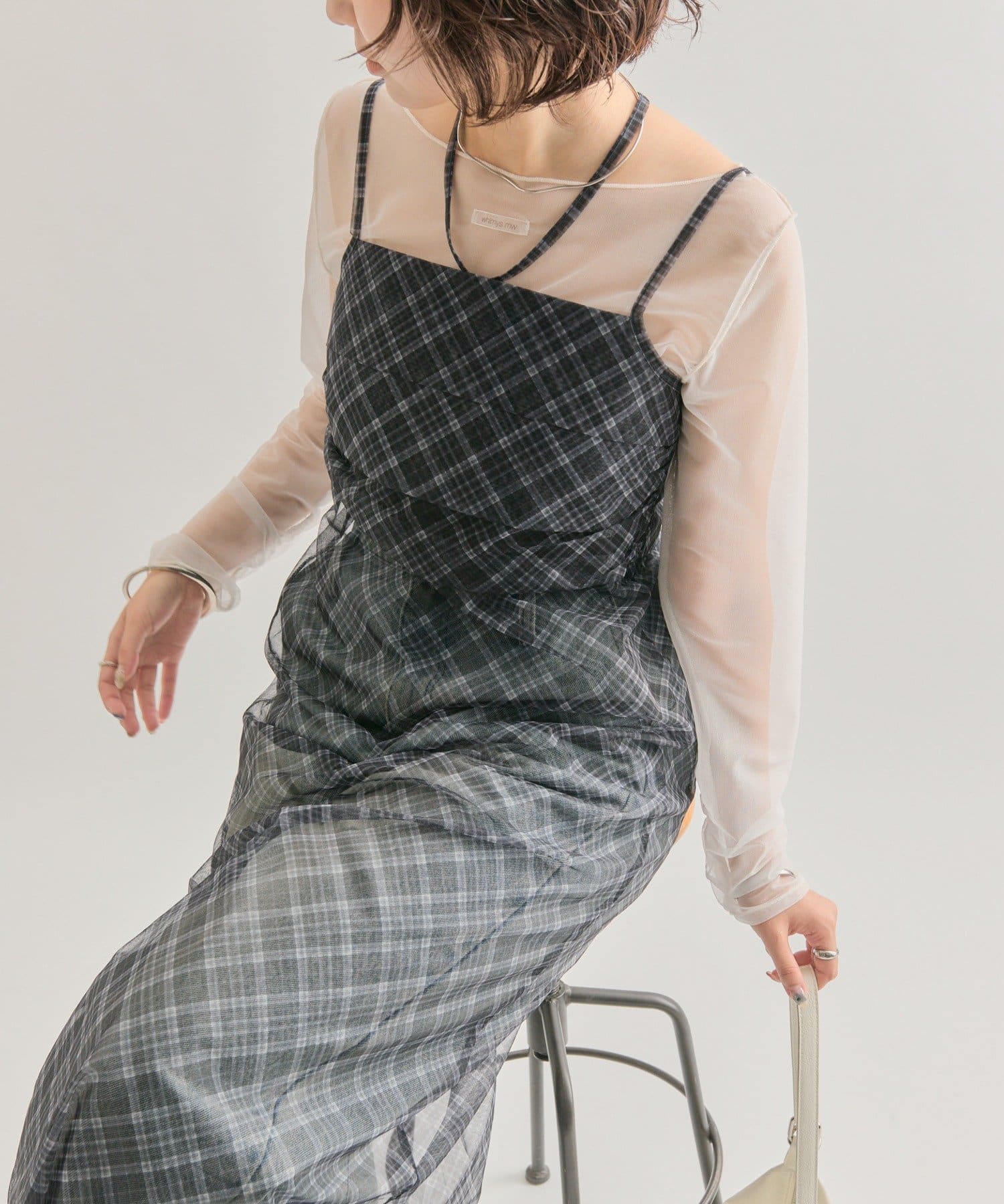 【着回し力抜群!トレンド感のあるコーディネートが叶う♡】シアーチェックキャミワンピース