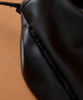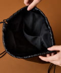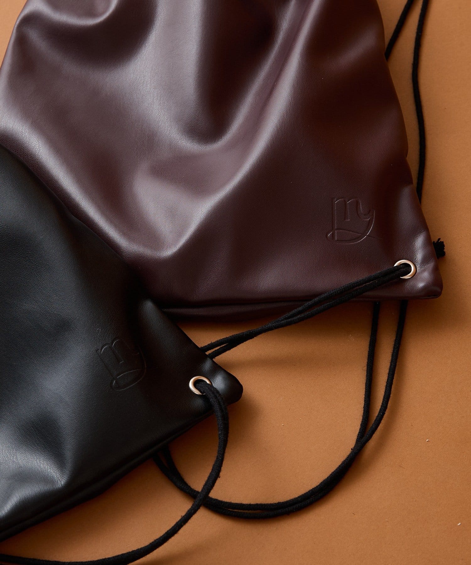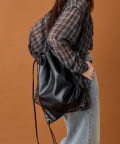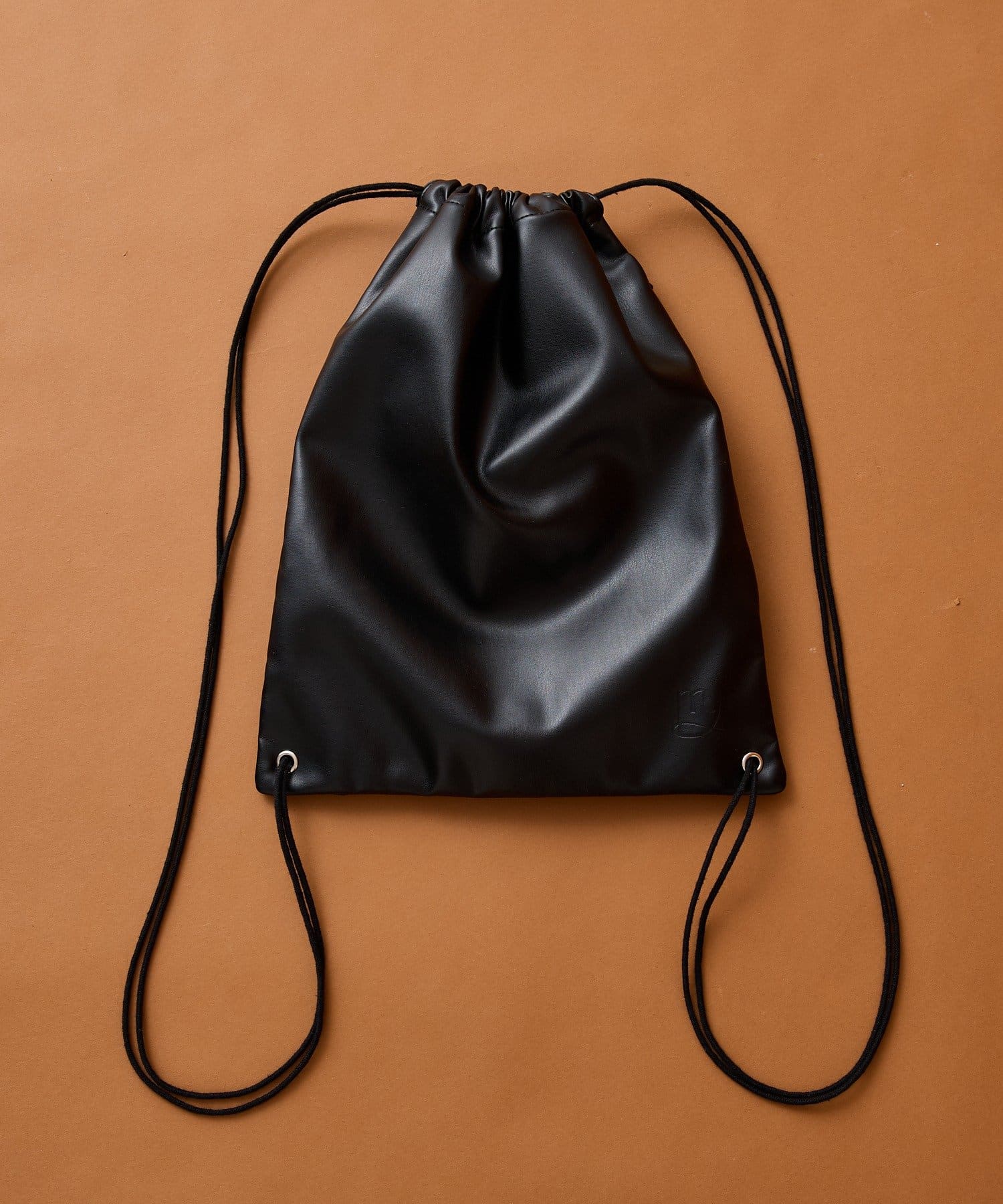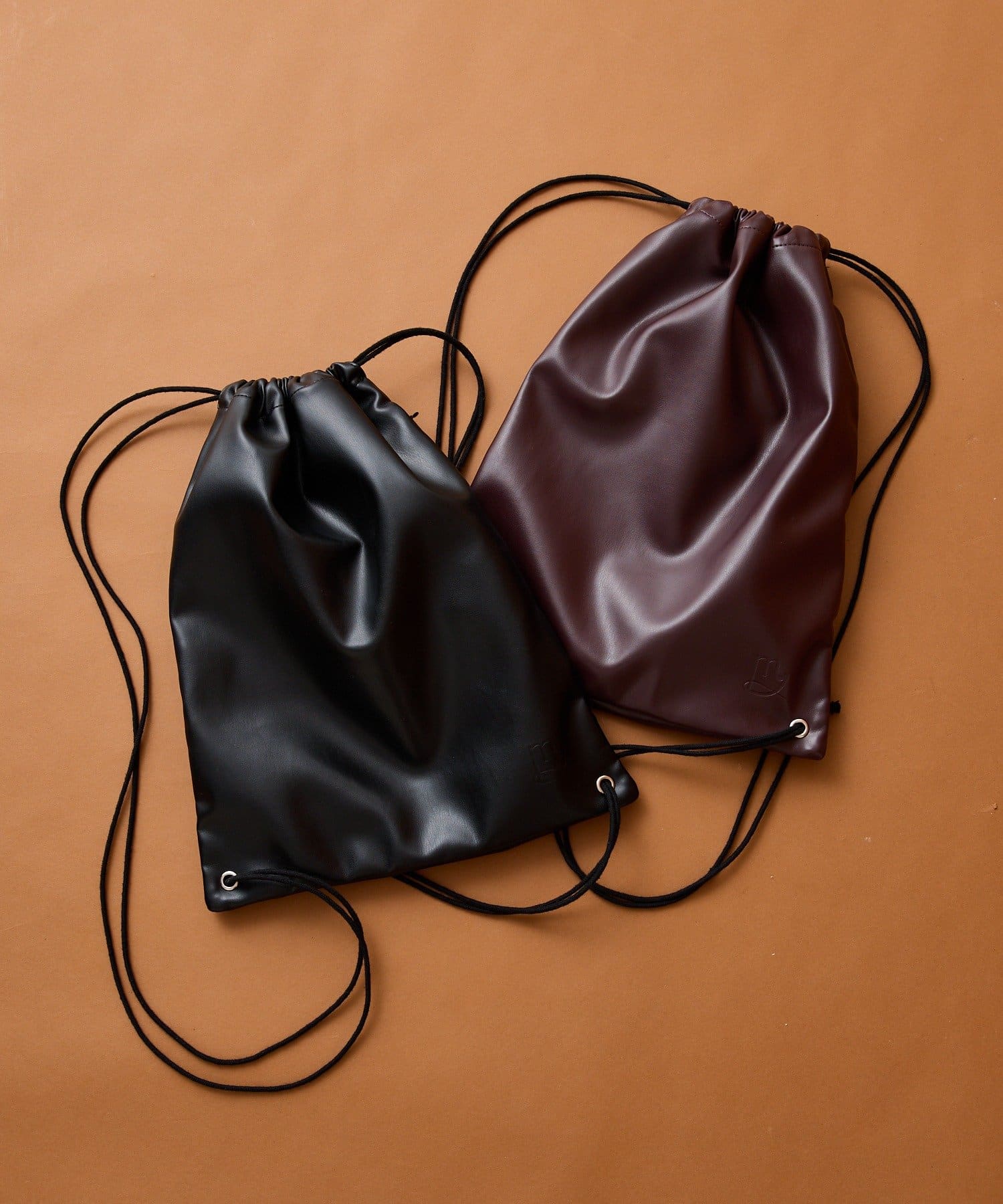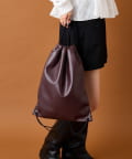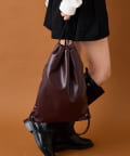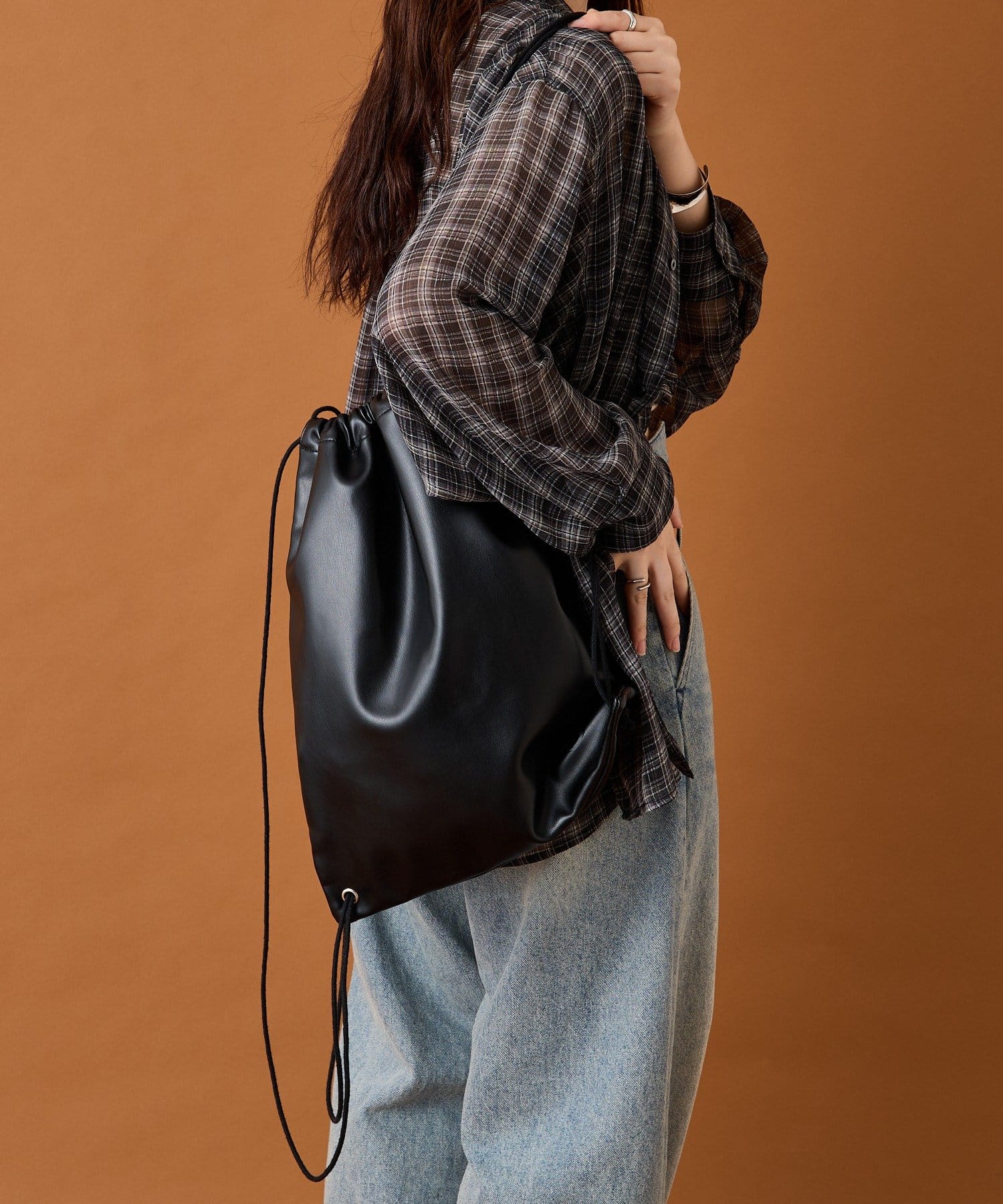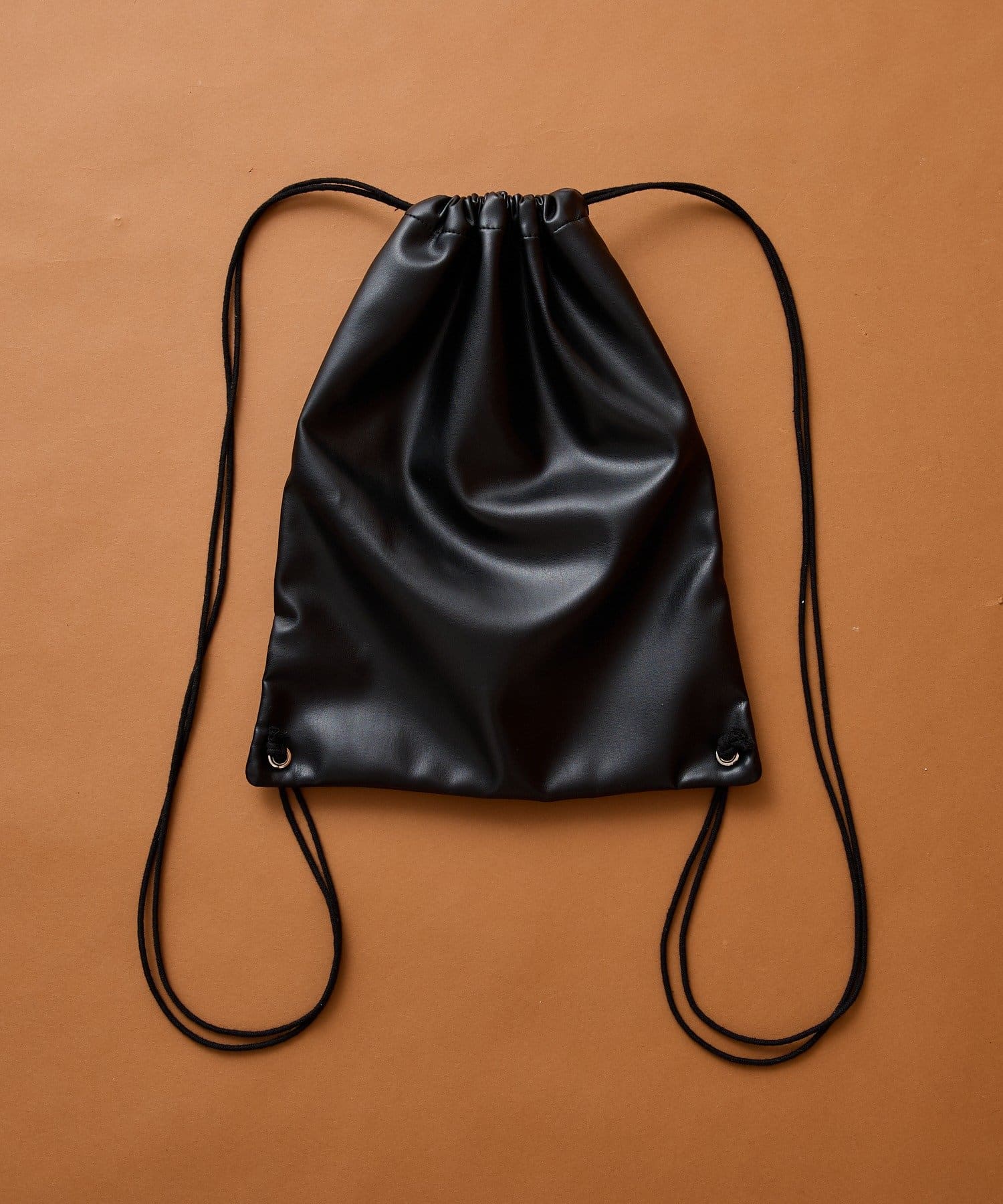 ・柔らかいフェイクレザー程よくハリのある素材のナップザック。フェイクレザーのためカジュアル過ぎず、綺麗めなスタイリングとも合わせやすいアイテムです。