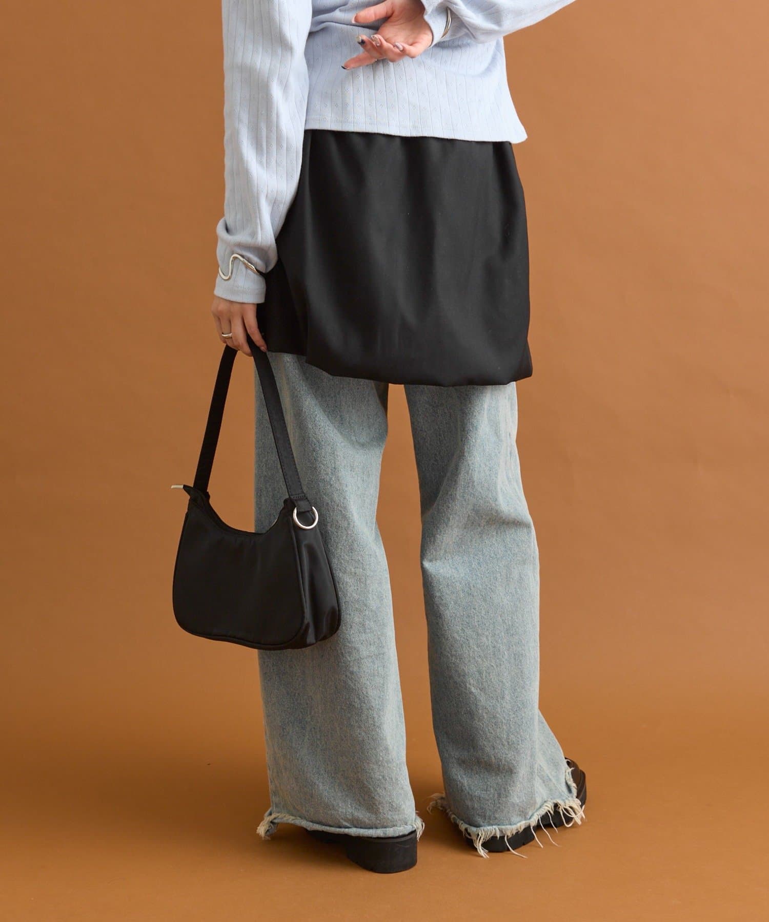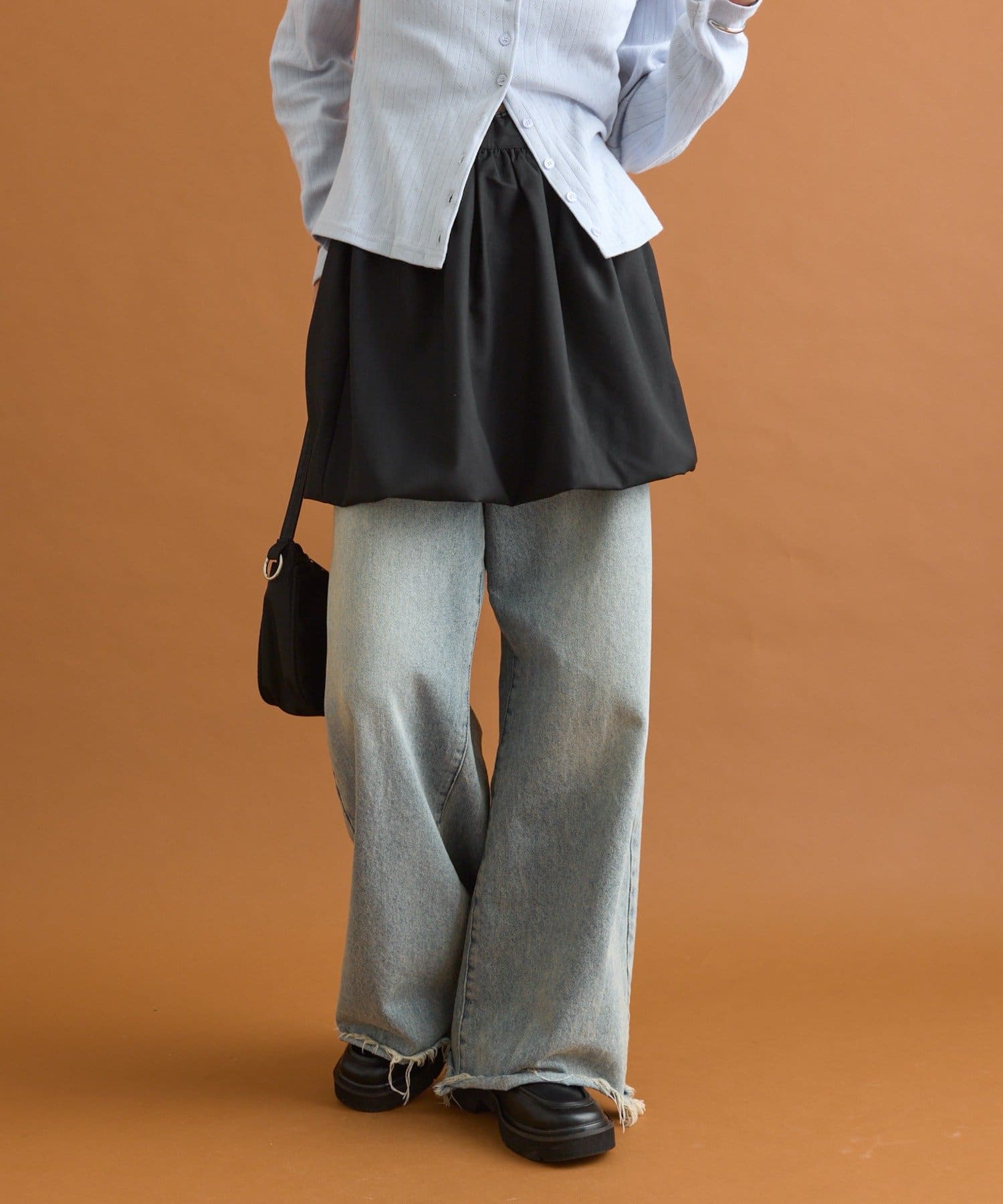 ・クロップド丈でもオーバーサイズのトップスでも合わせやすく、デザイン性があるアイテムなのでコーディネートにアクセントの足しになるアイテムです。