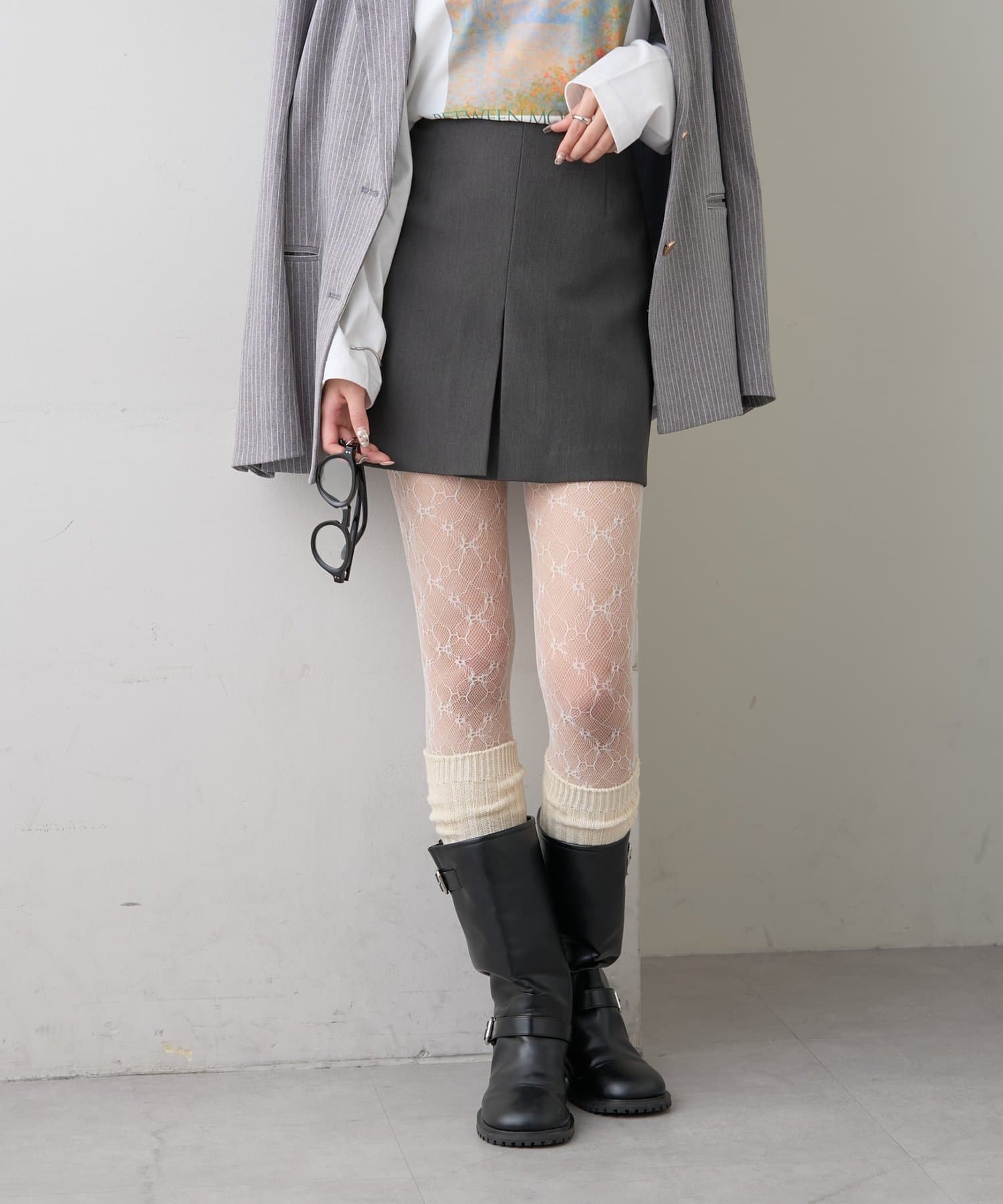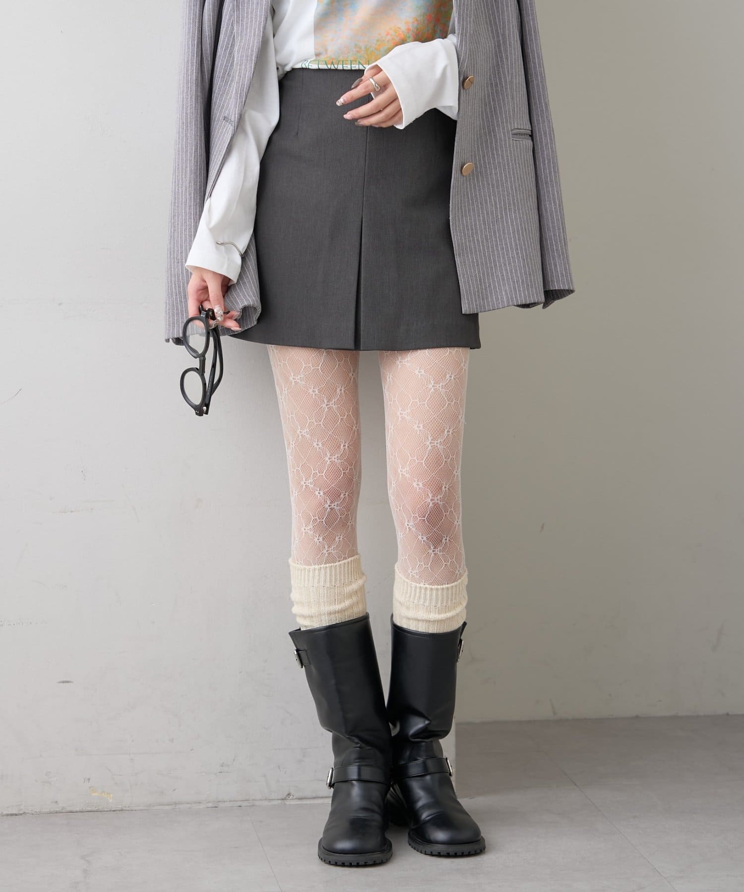 ・足元はパンプスやローファーをソックスやタイツと合わせてトレンド感をプラスしても。