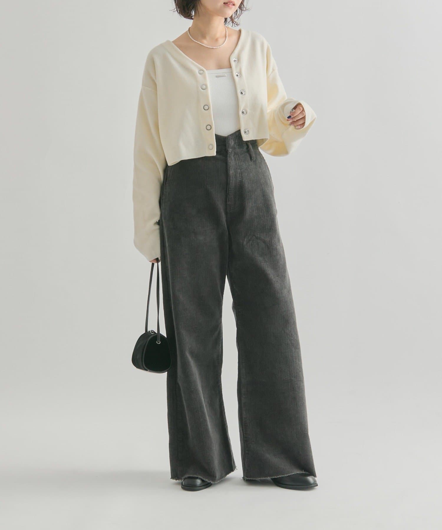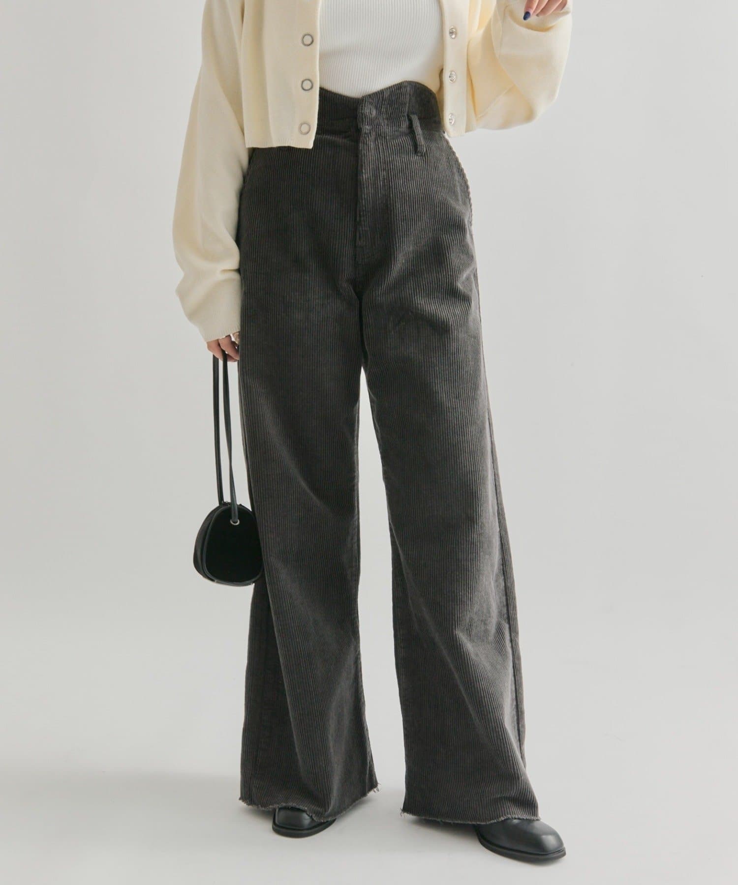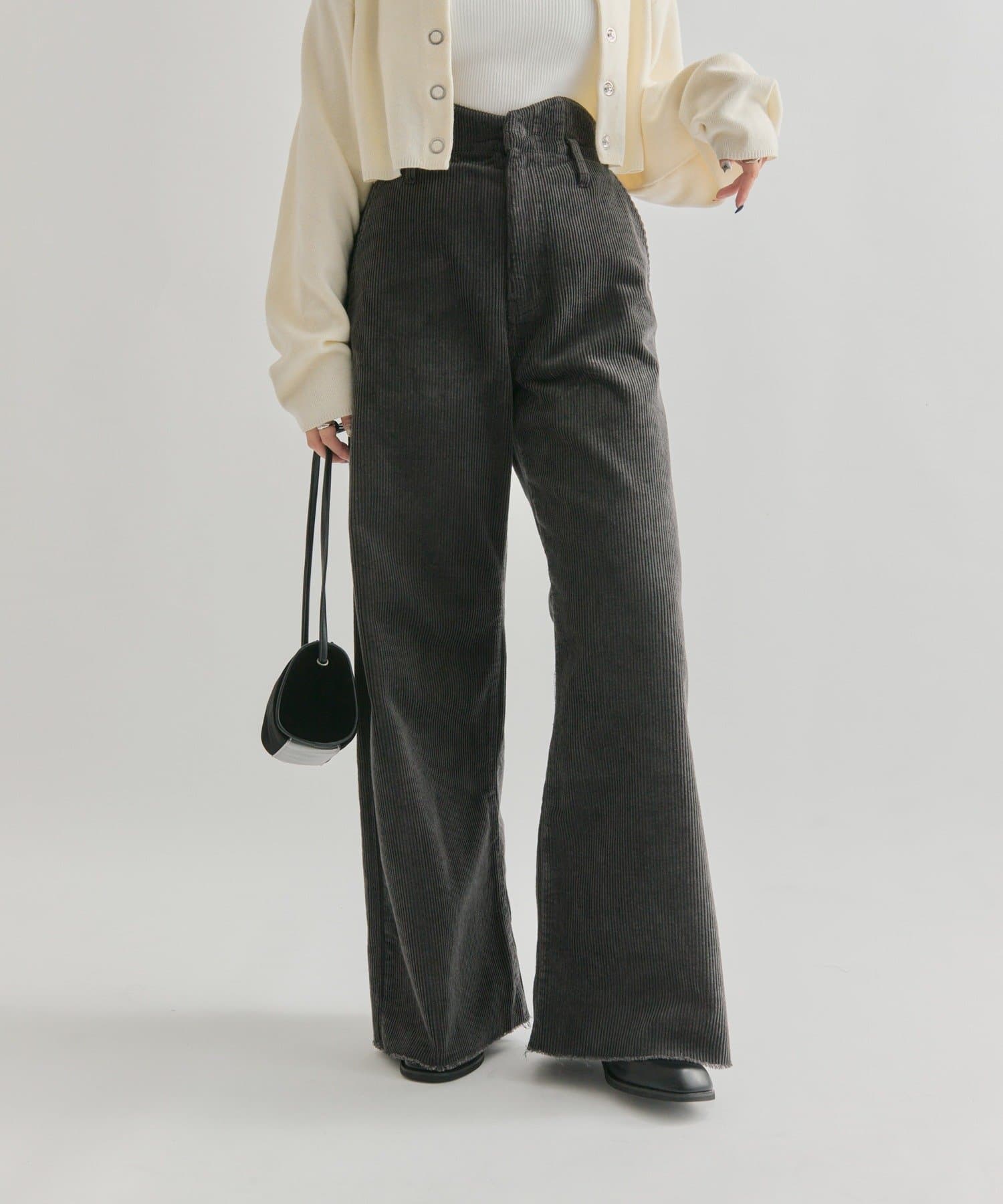 ・ウェーブシリーズから秋冬らしいコーデュロイパンツが登場しました◎程よいワイド感×フレアデザインが気になる太もも周りをカバーしてくれる美シルエットパンツです。