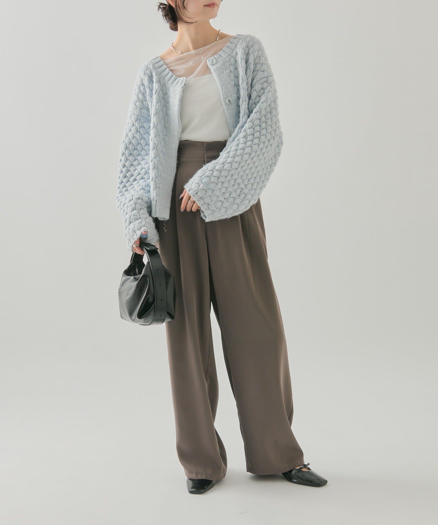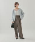 ・ゆったりとしたニットやカーディガンを合わせてきれいめカジュアルなコーディネートに。