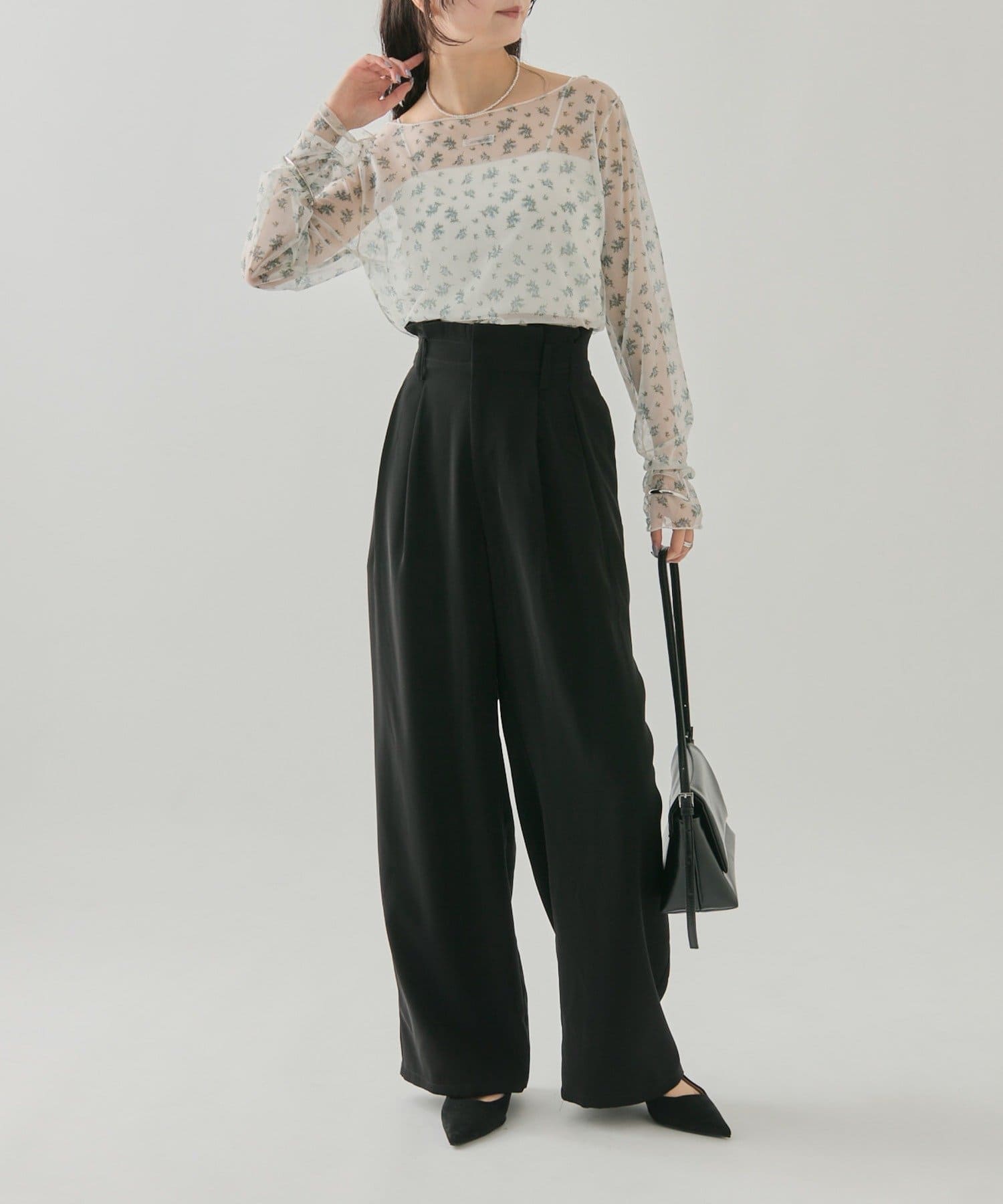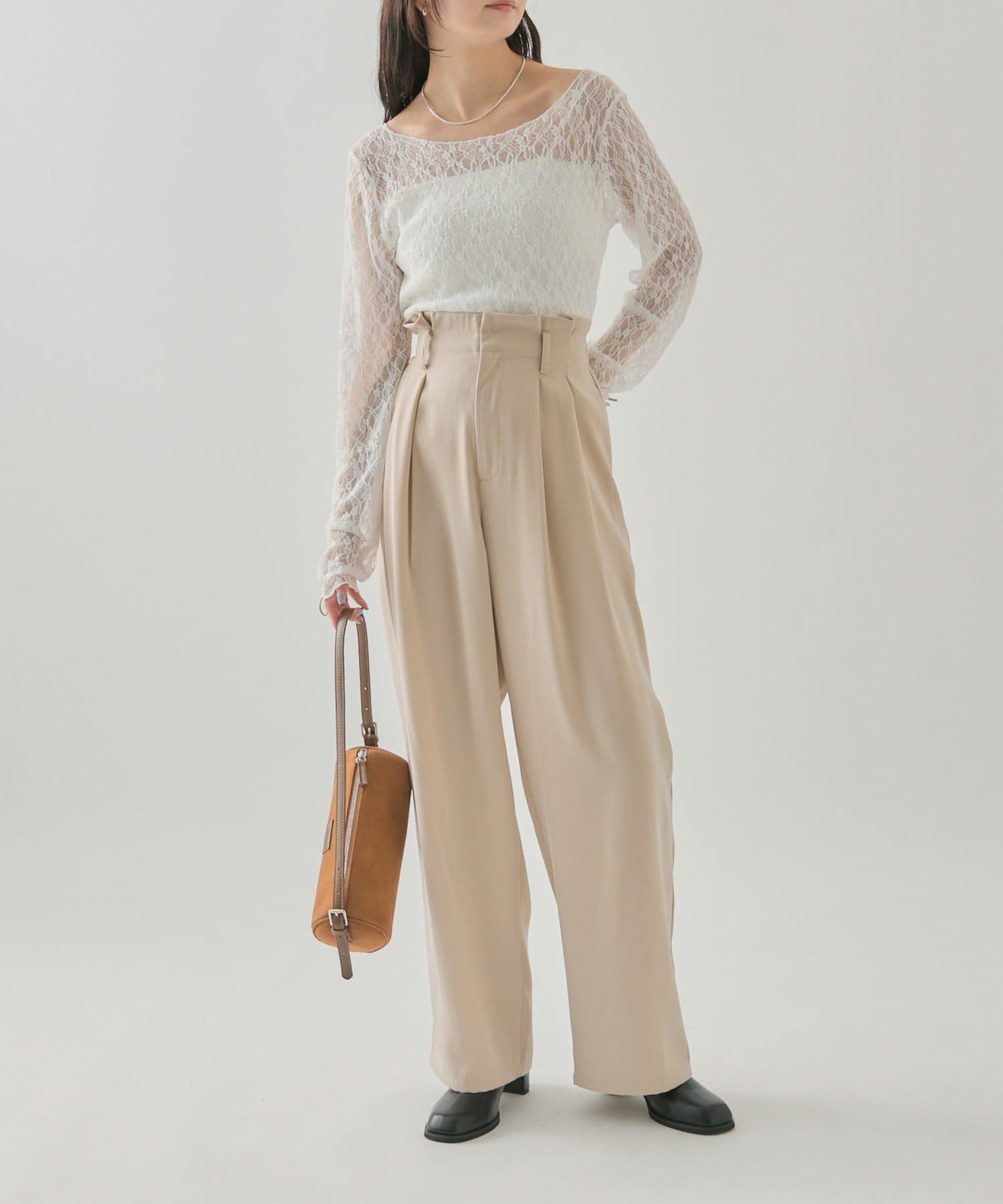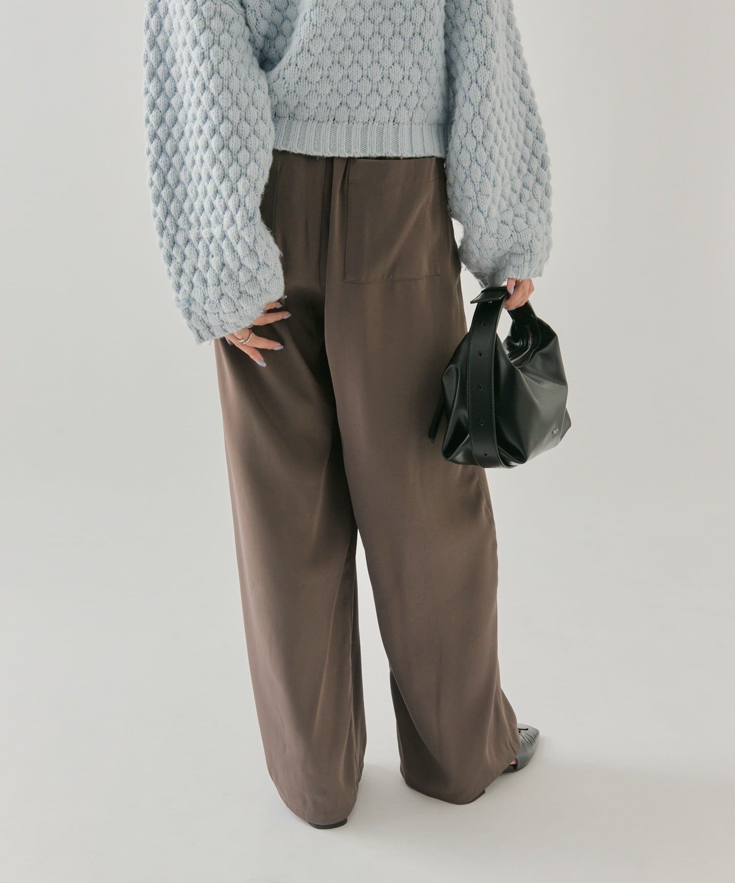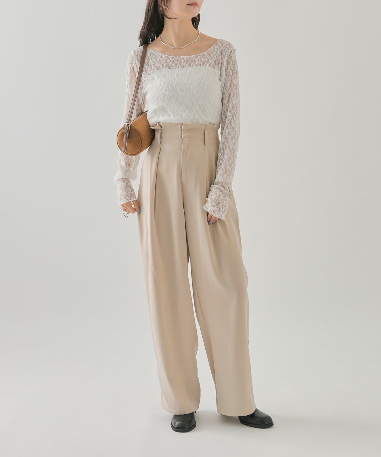 落ち感のあるシルエットパンツなので骨格ウェーブさんでも着られるパンツです。
