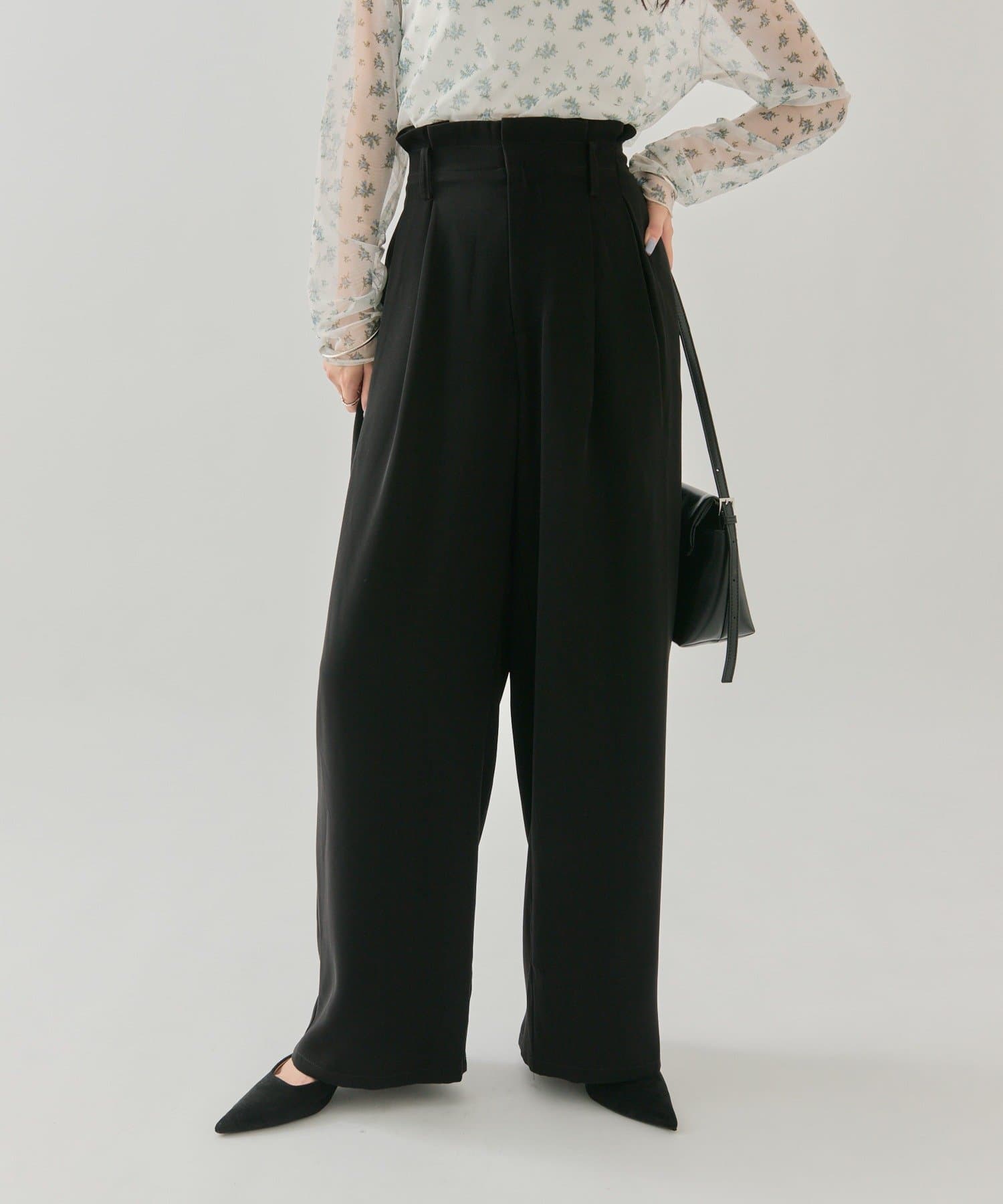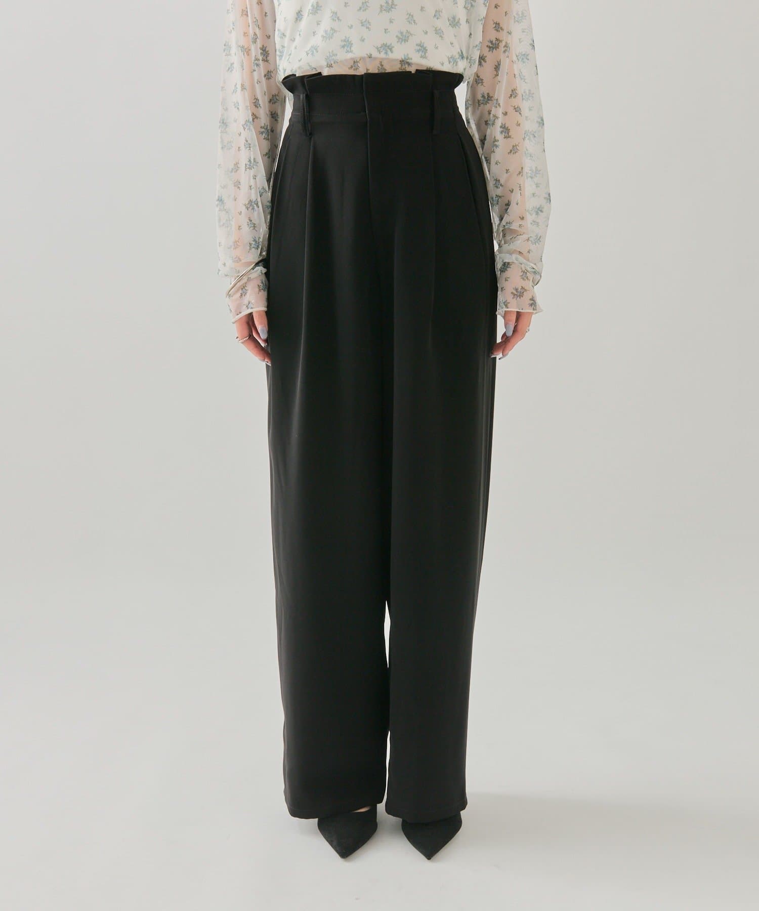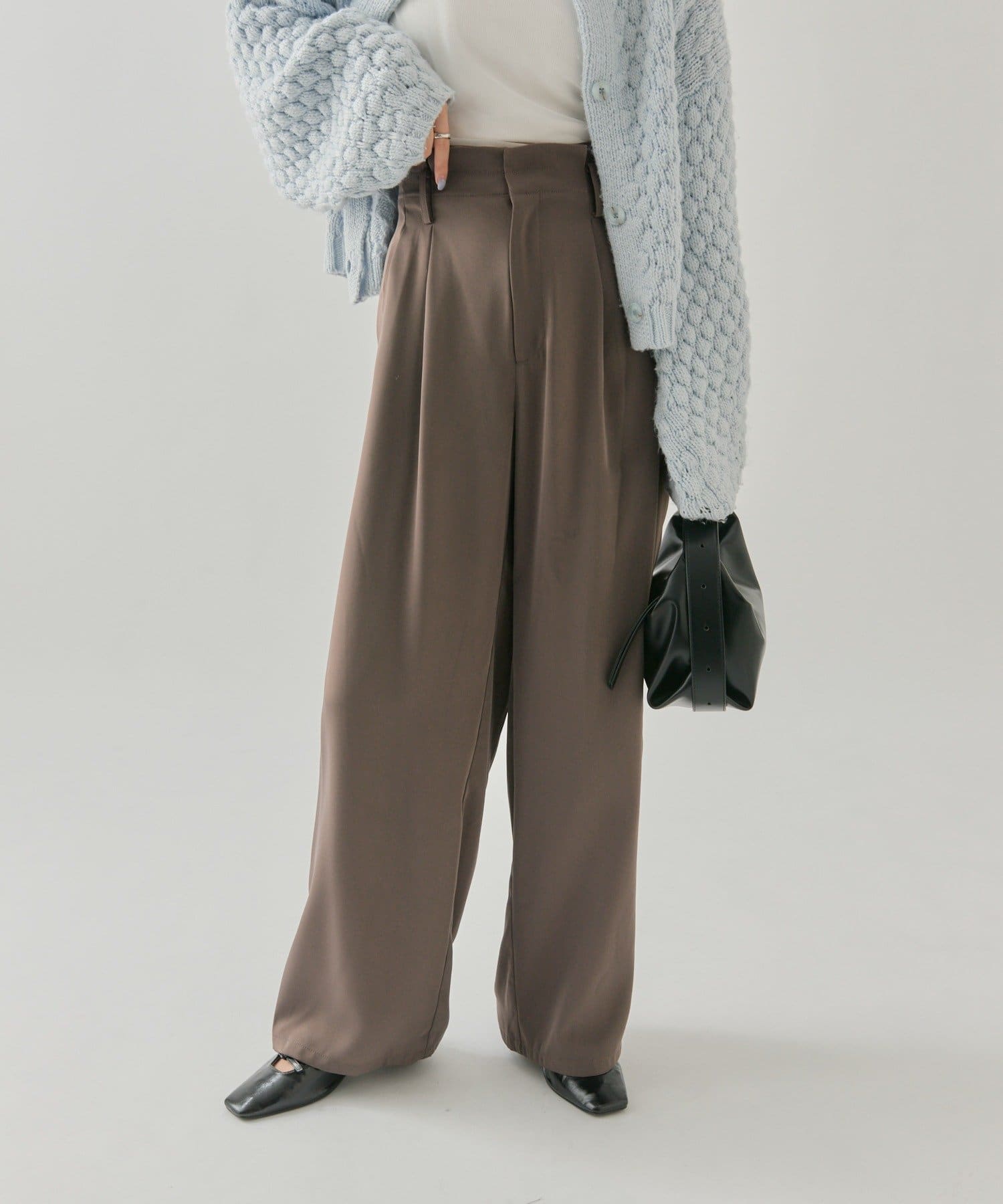 ・タック仕様なので気になる腰回りもカバーでき、光沢感のある生地でさらっとした履きやすいのもポイントです◎