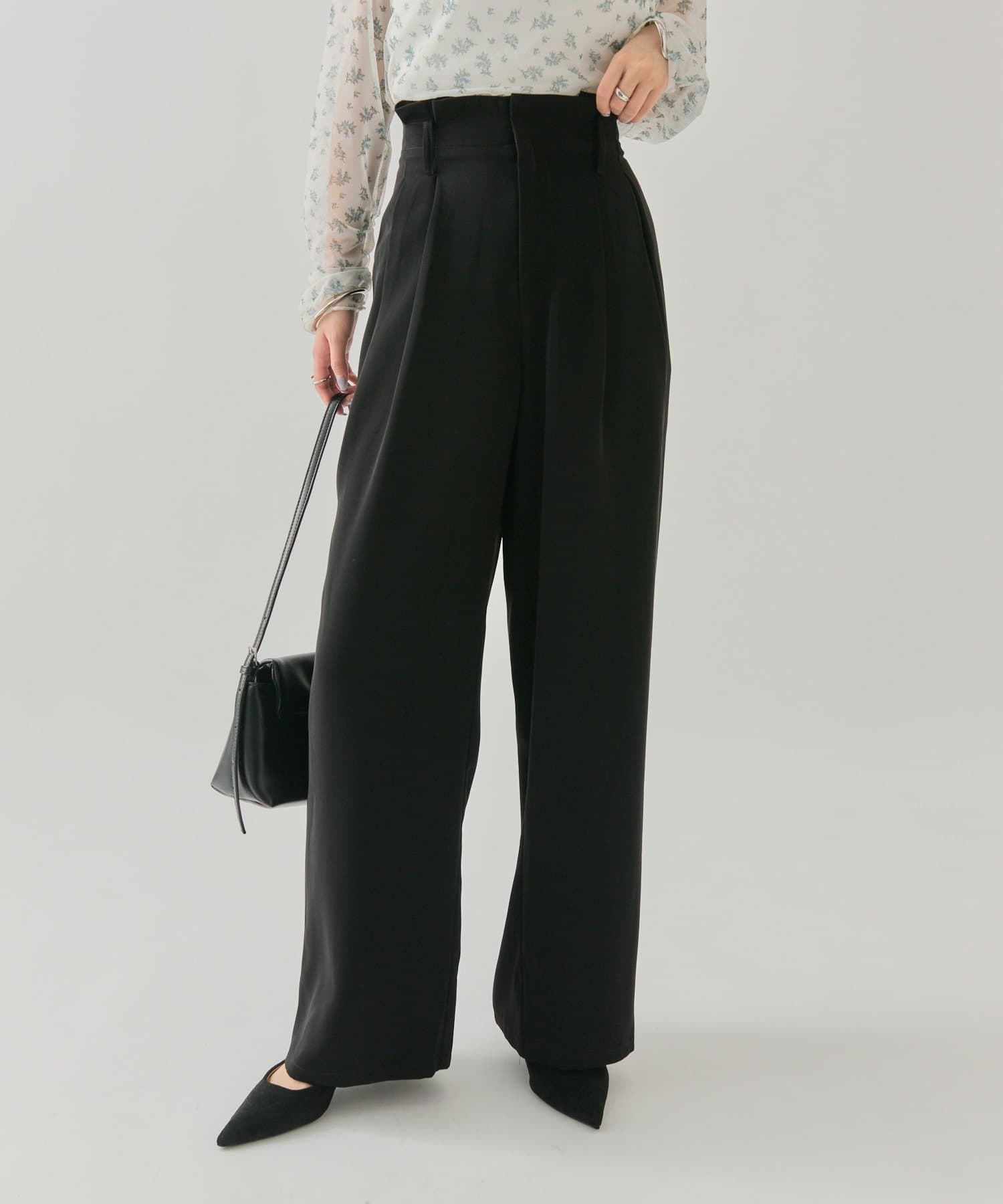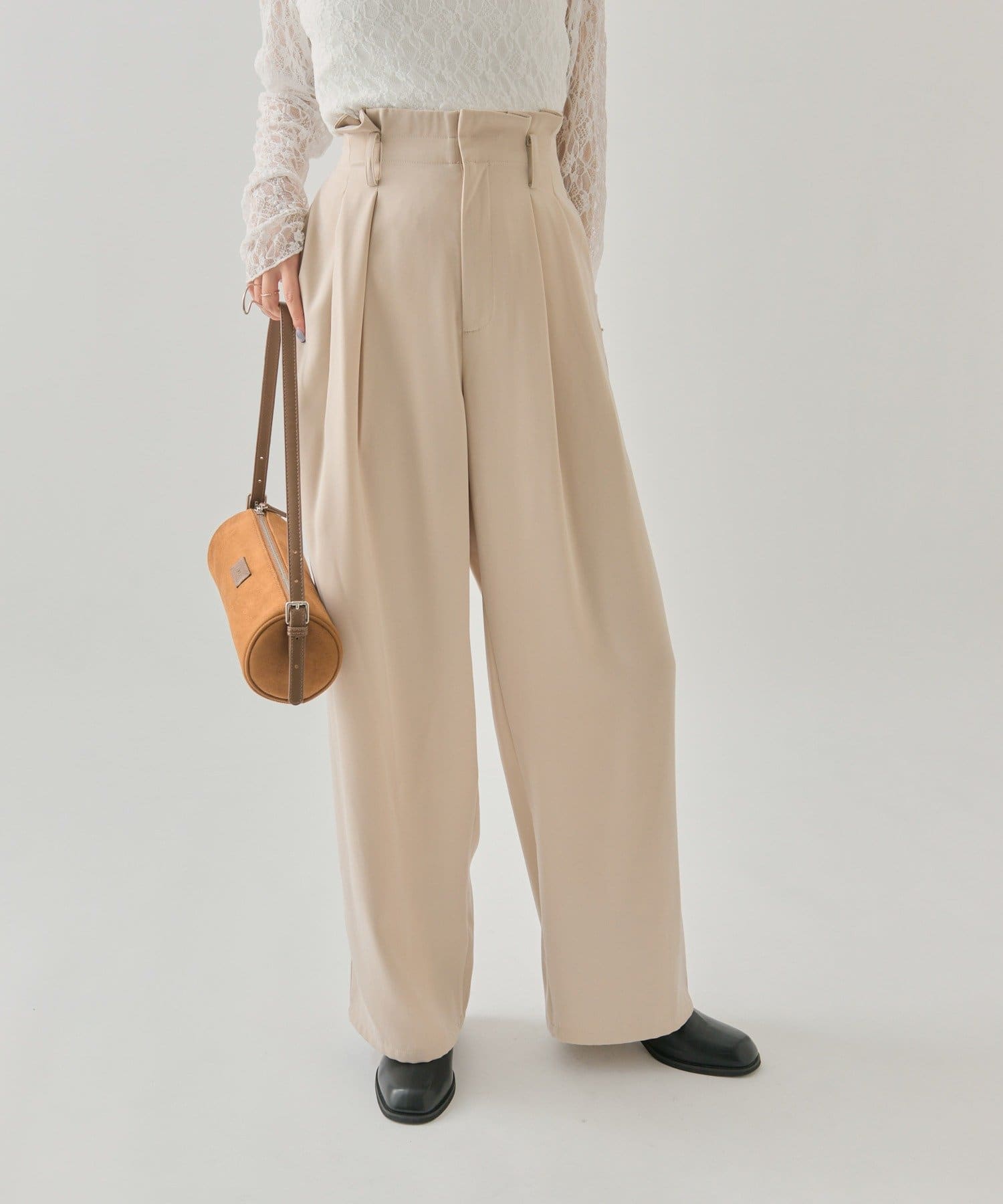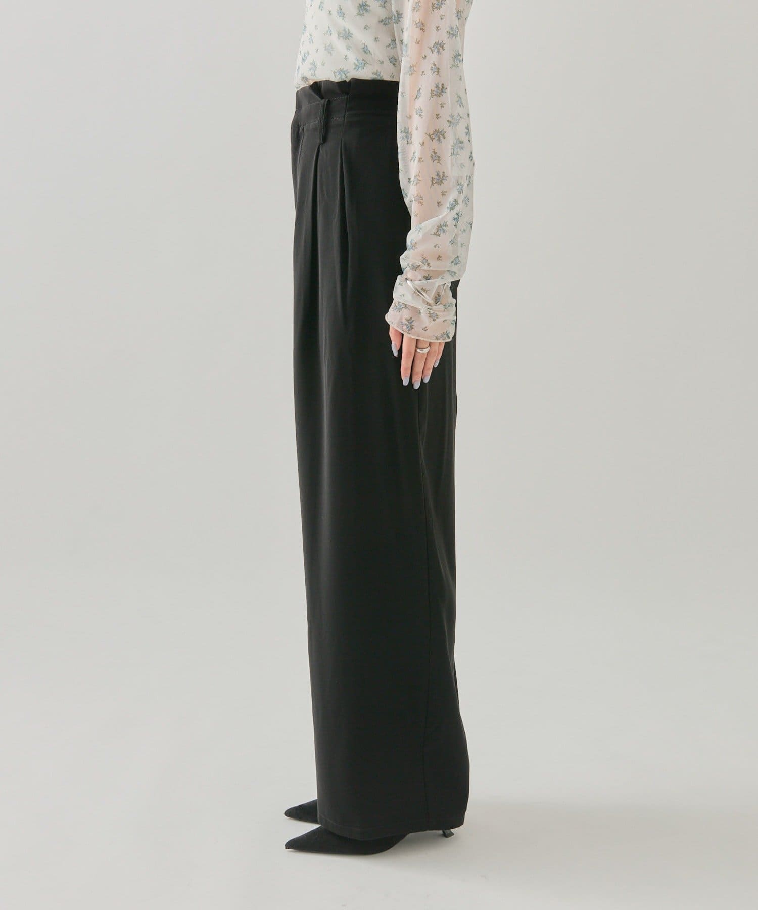 ・タック仕様なので気になる腰回りもカバーでき、光沢感のある生地でさらっとした履きやすいのもポイントです◎