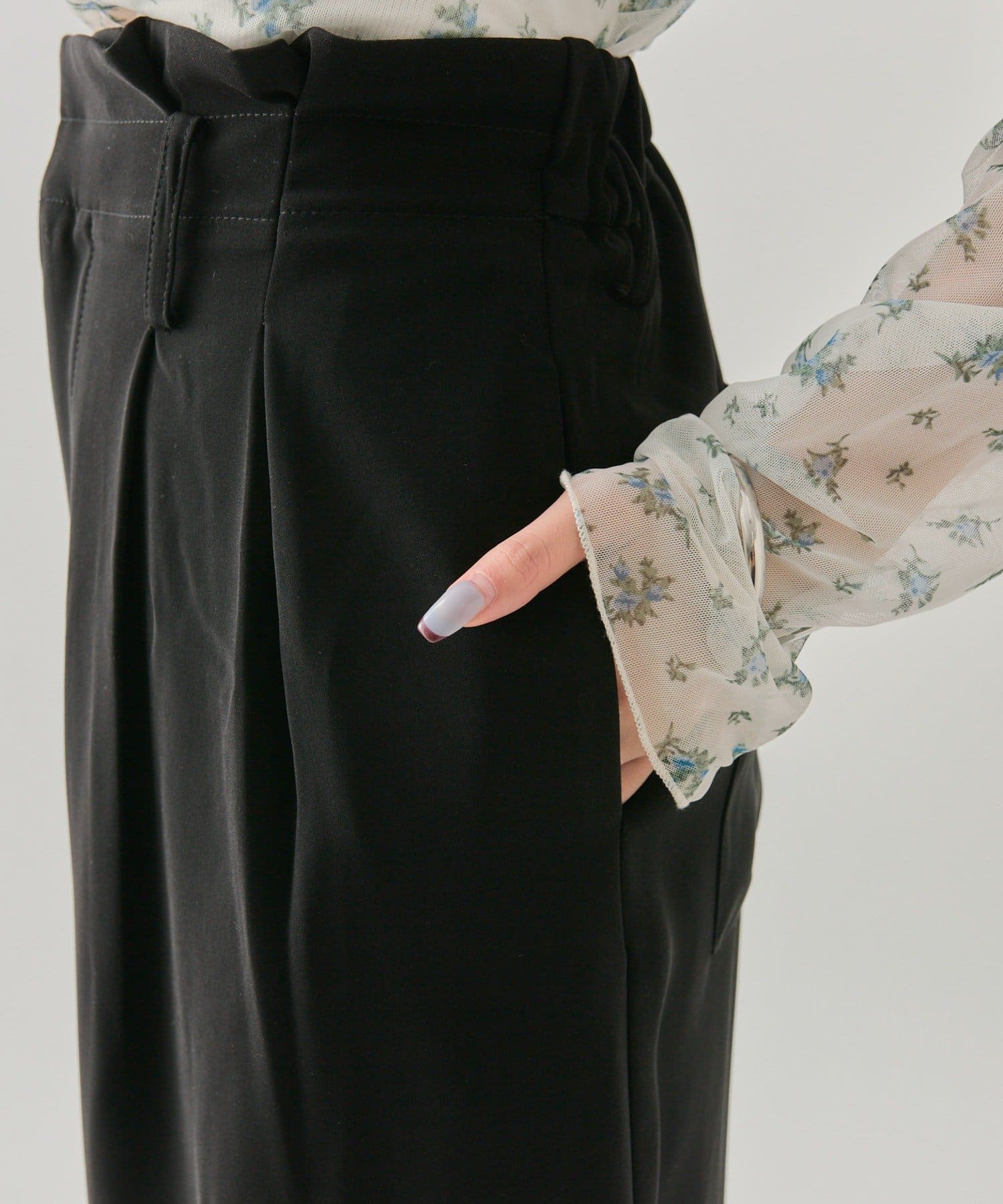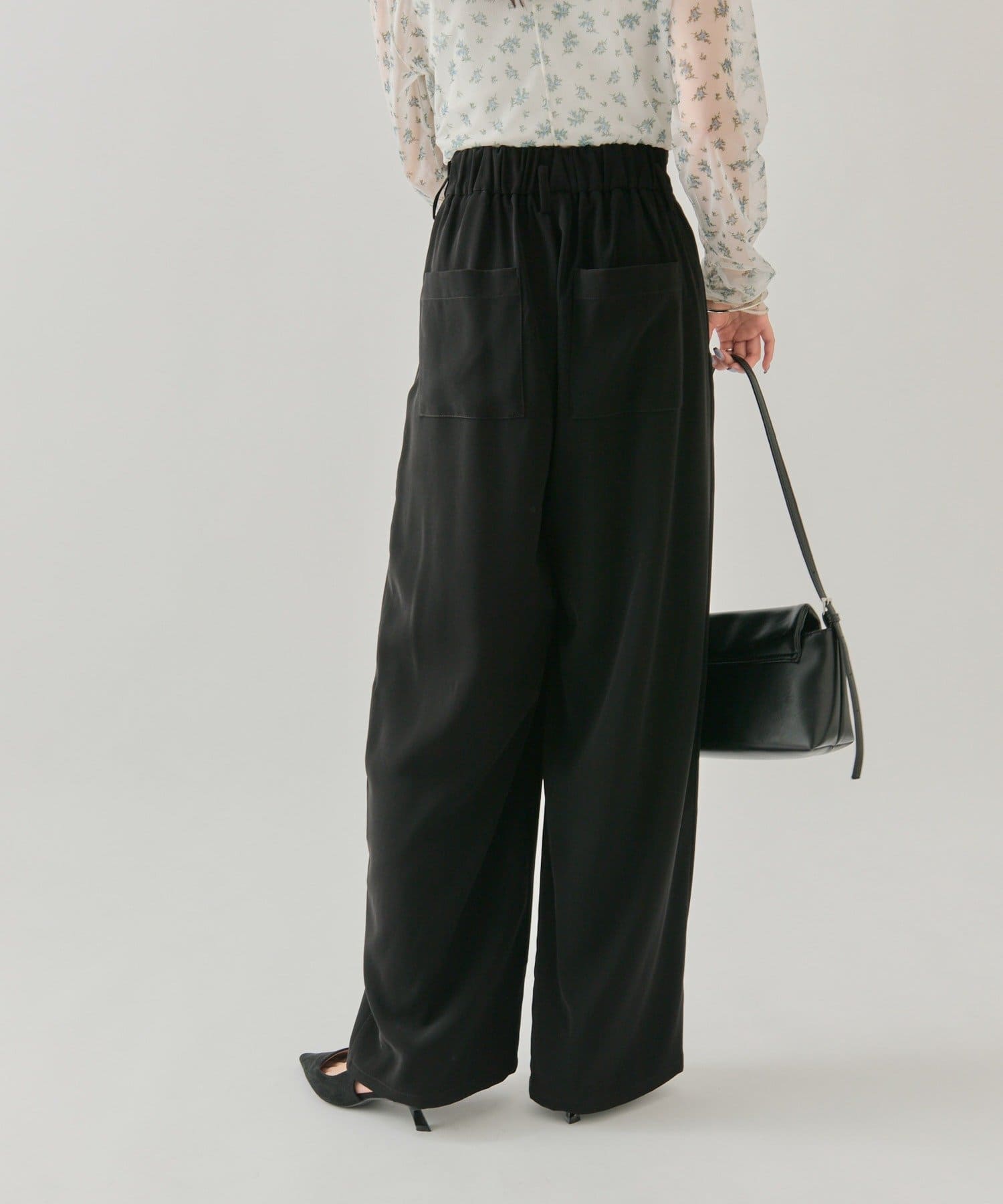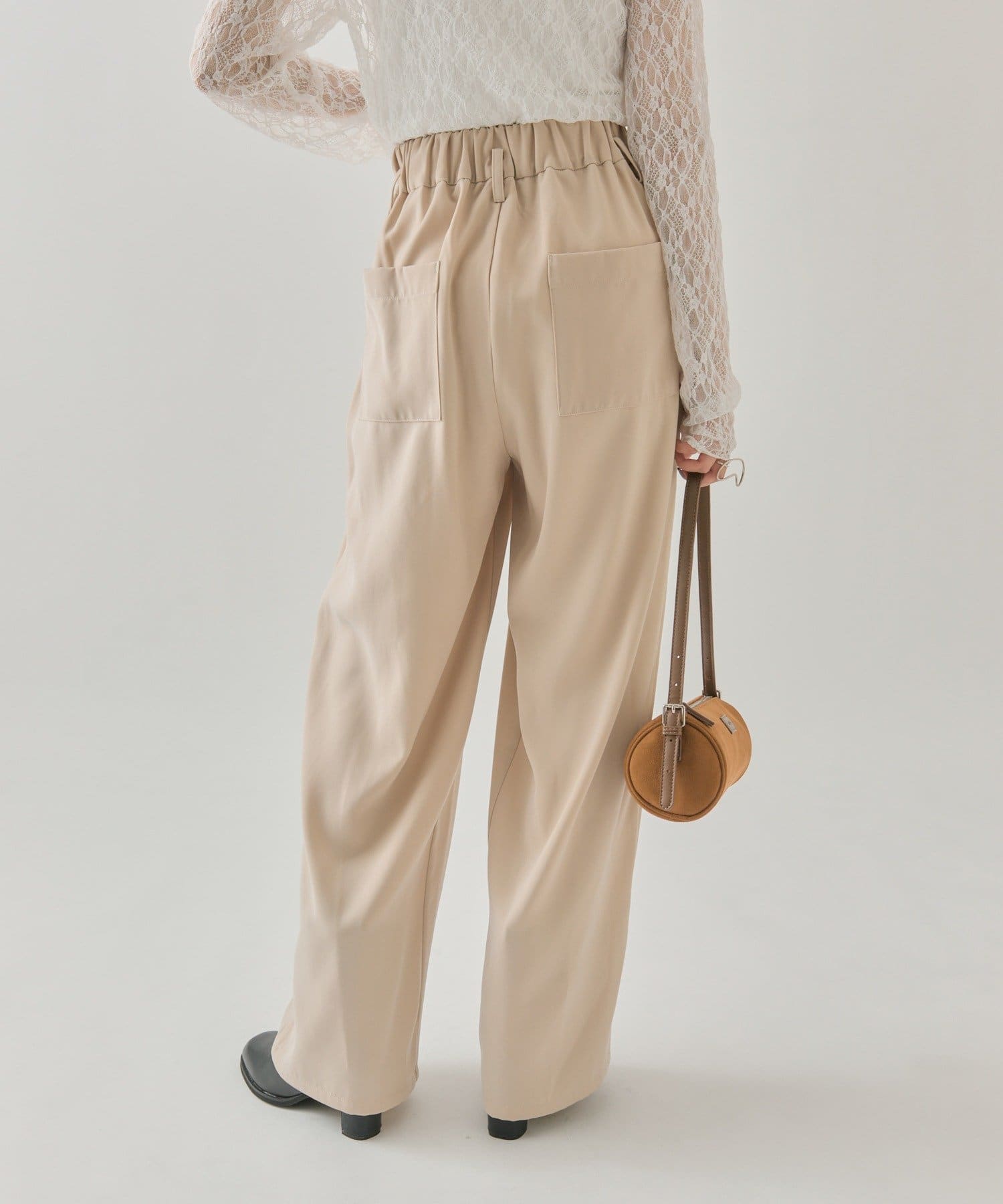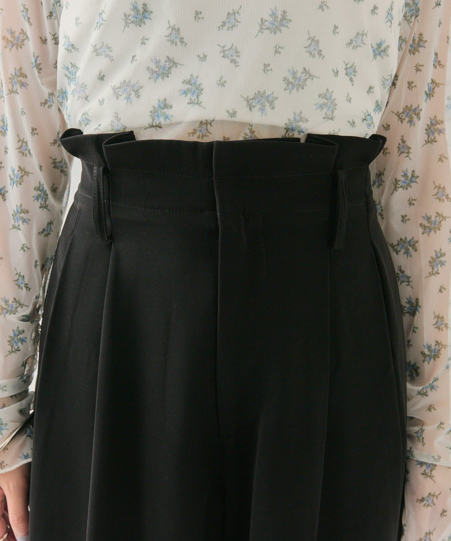 ・ウエスト部分はフリルっぽいタックでインしても決まります◎後ろのポケットも大きめに作られているのでヒップラインをカバーできます。