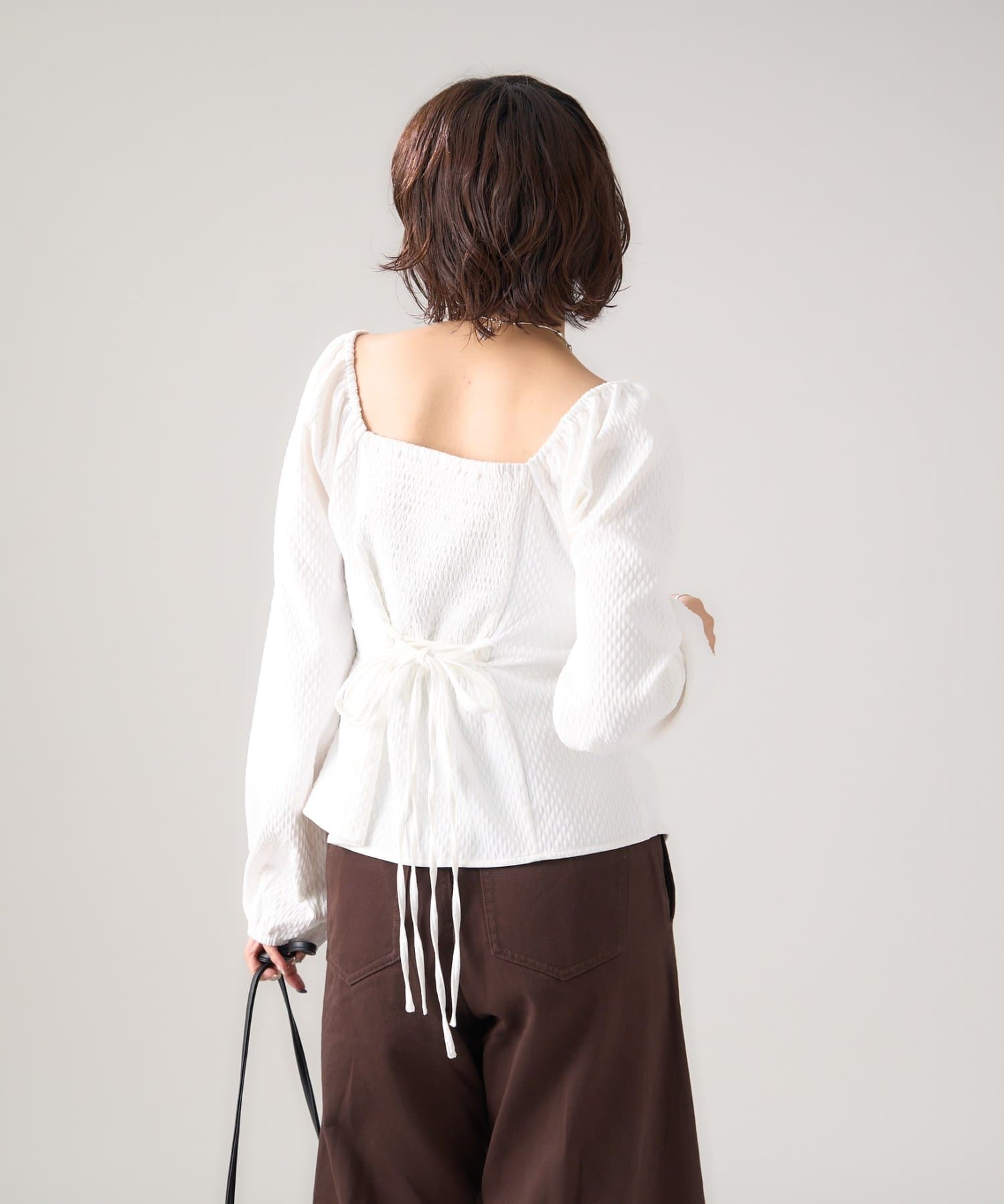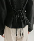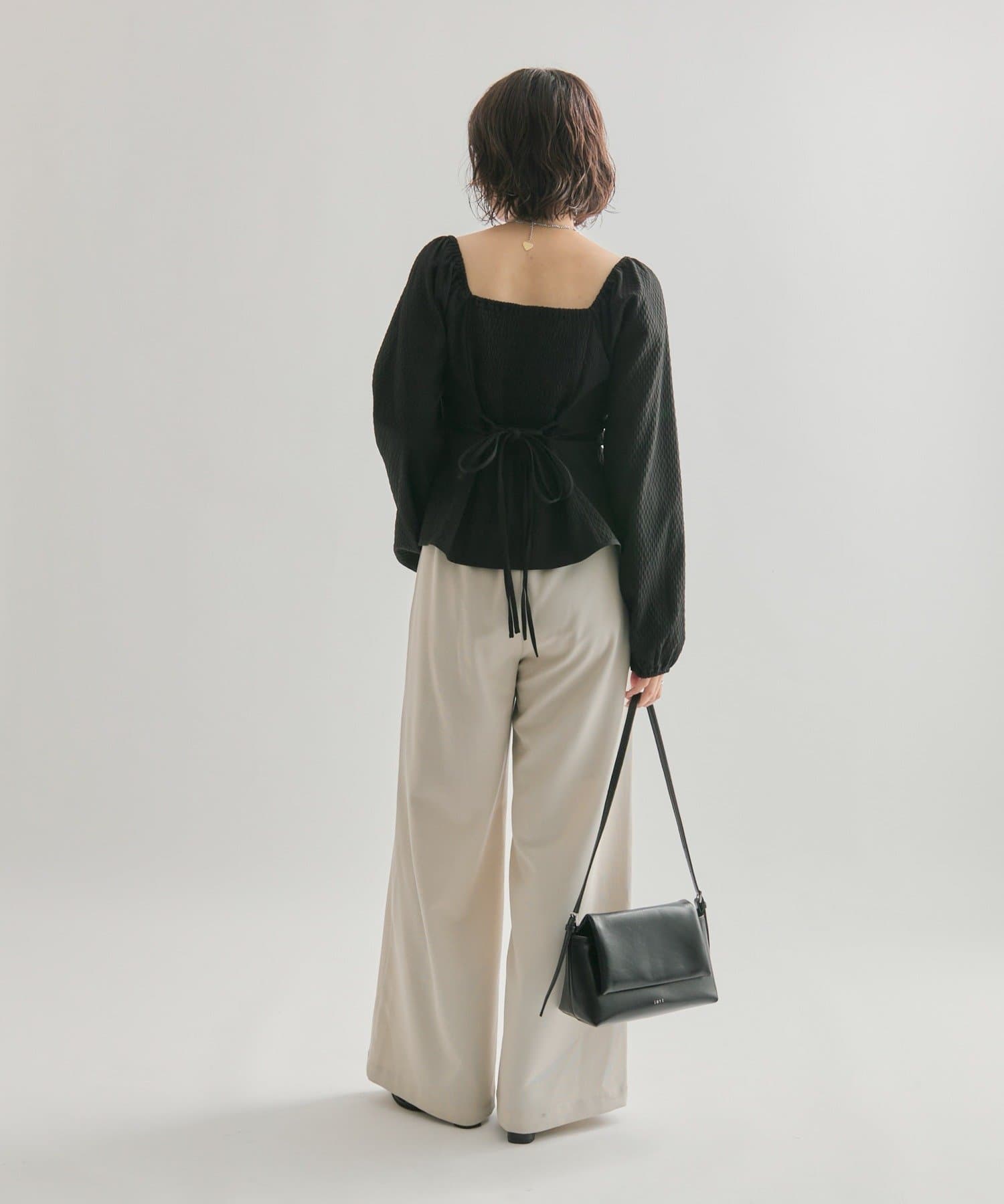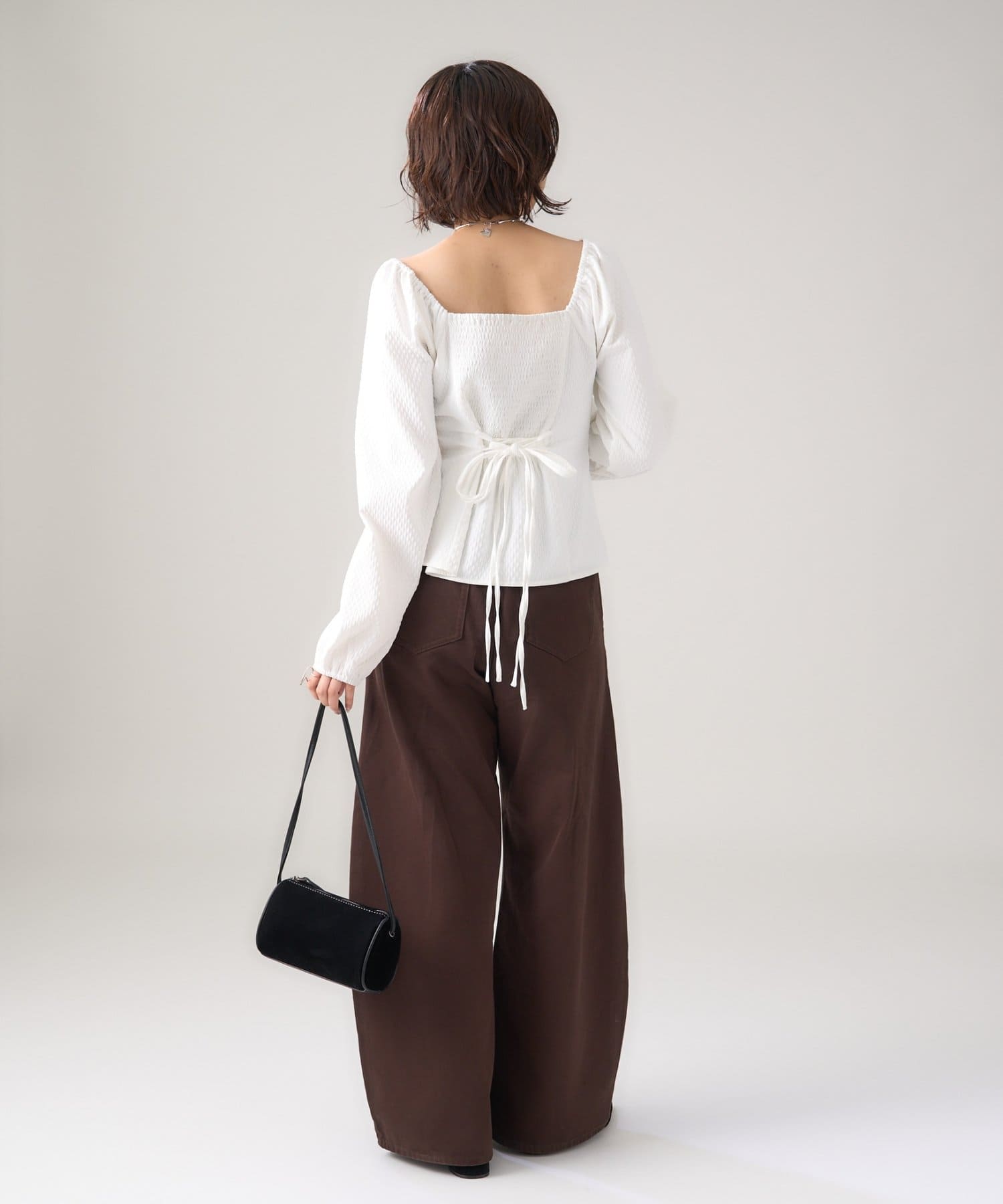 後ろを紐で結べるのも可愛いポイント。ウエスト部分がすっきりとした印象になります◎