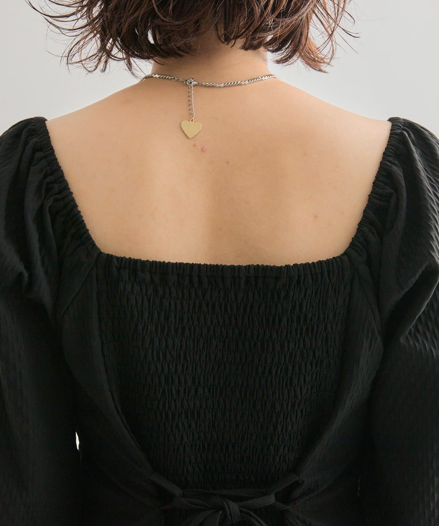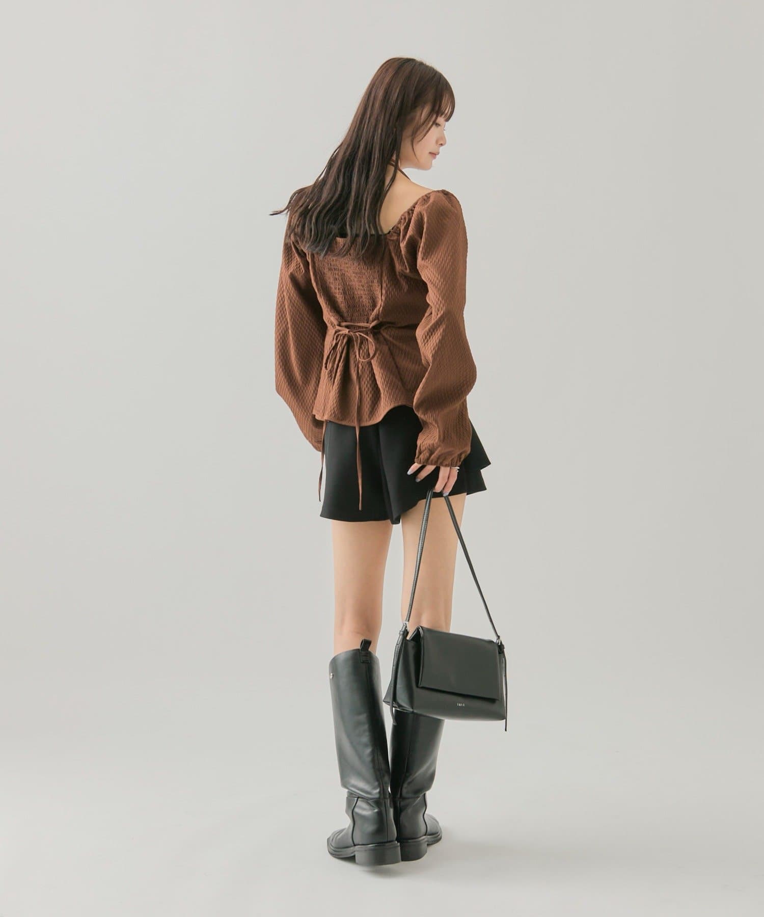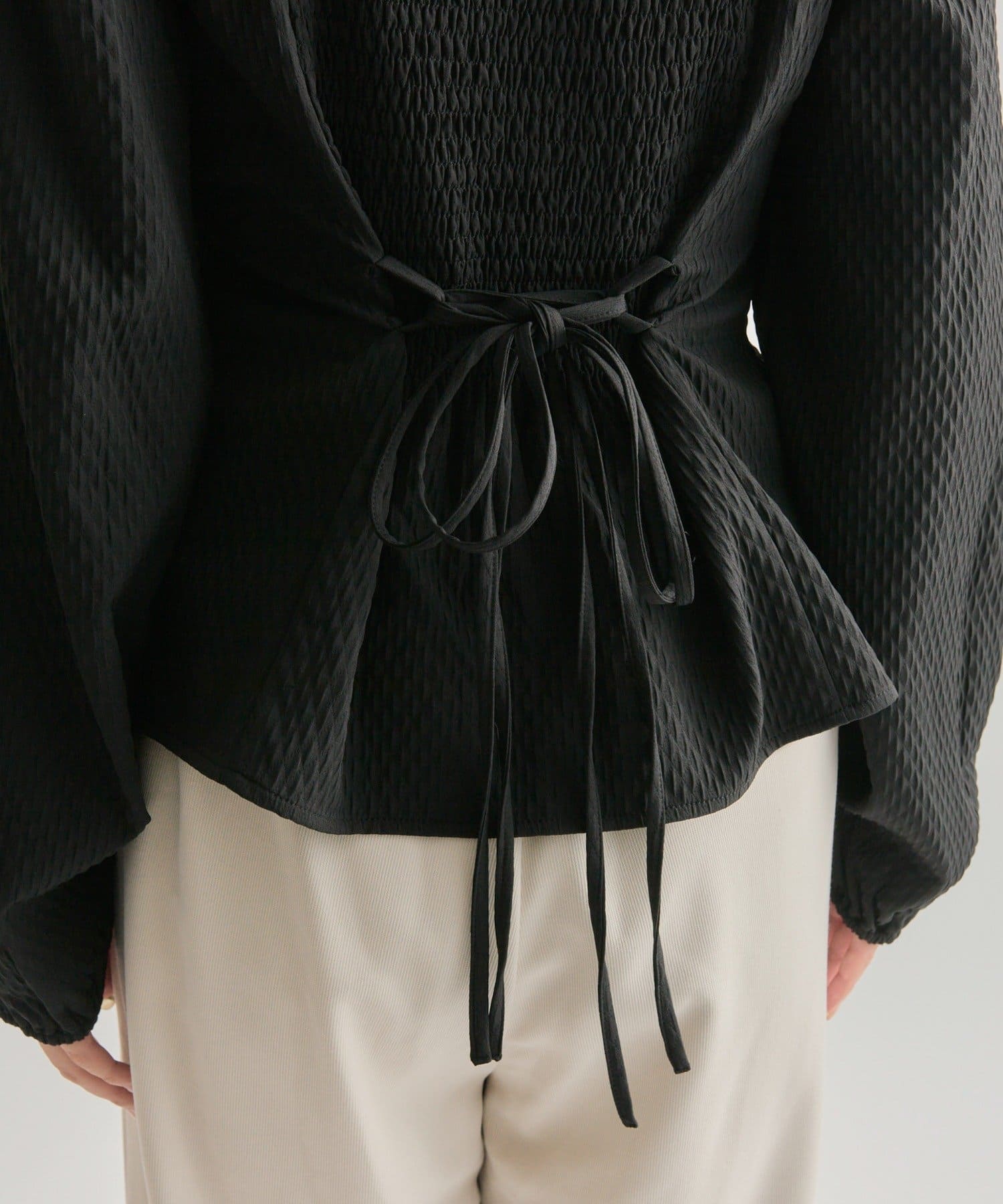 後ろを紐で結べるのも可愛いポイント。ウエスト部分がすっきりとした印象になります◎