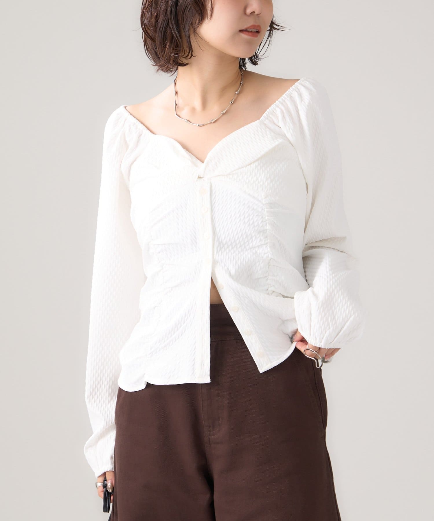 肩を落としてオフショルにしてより可愛らしく着用していただけます。お出かけにおすすめな1枚です♡