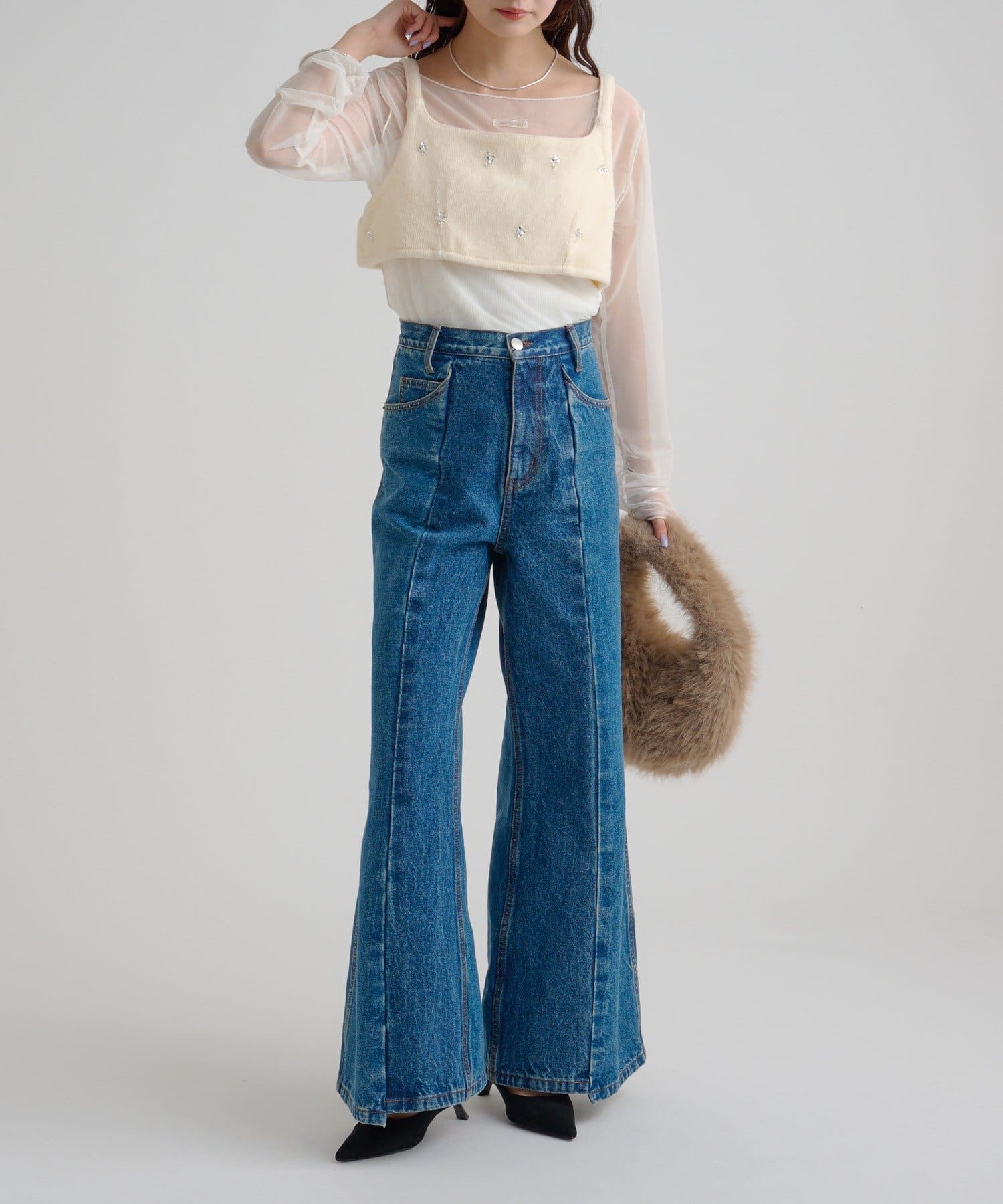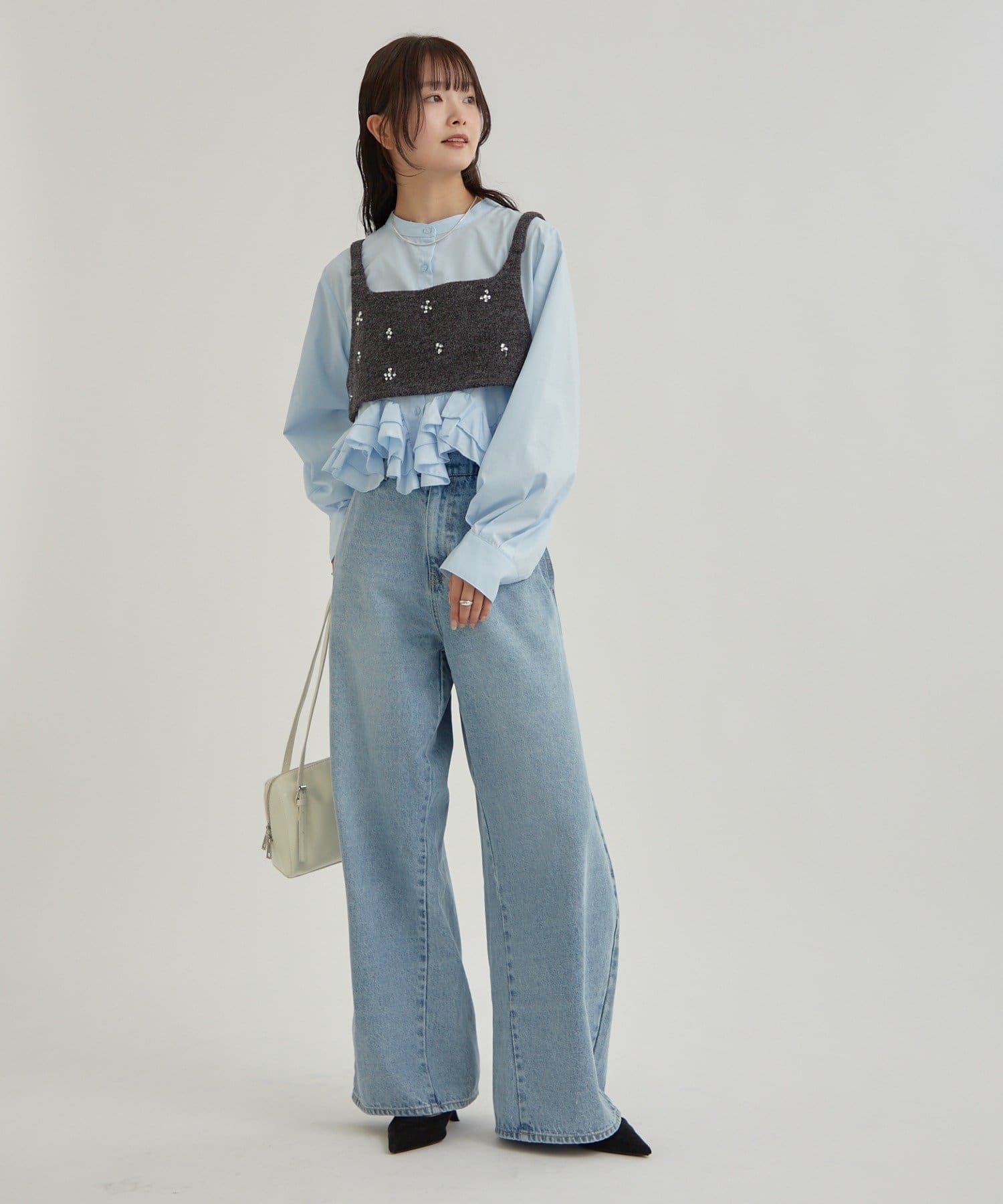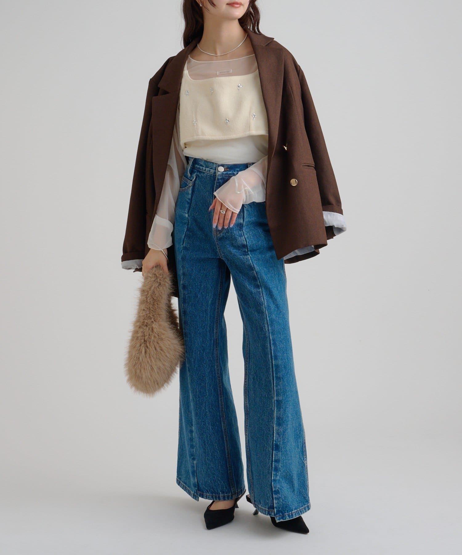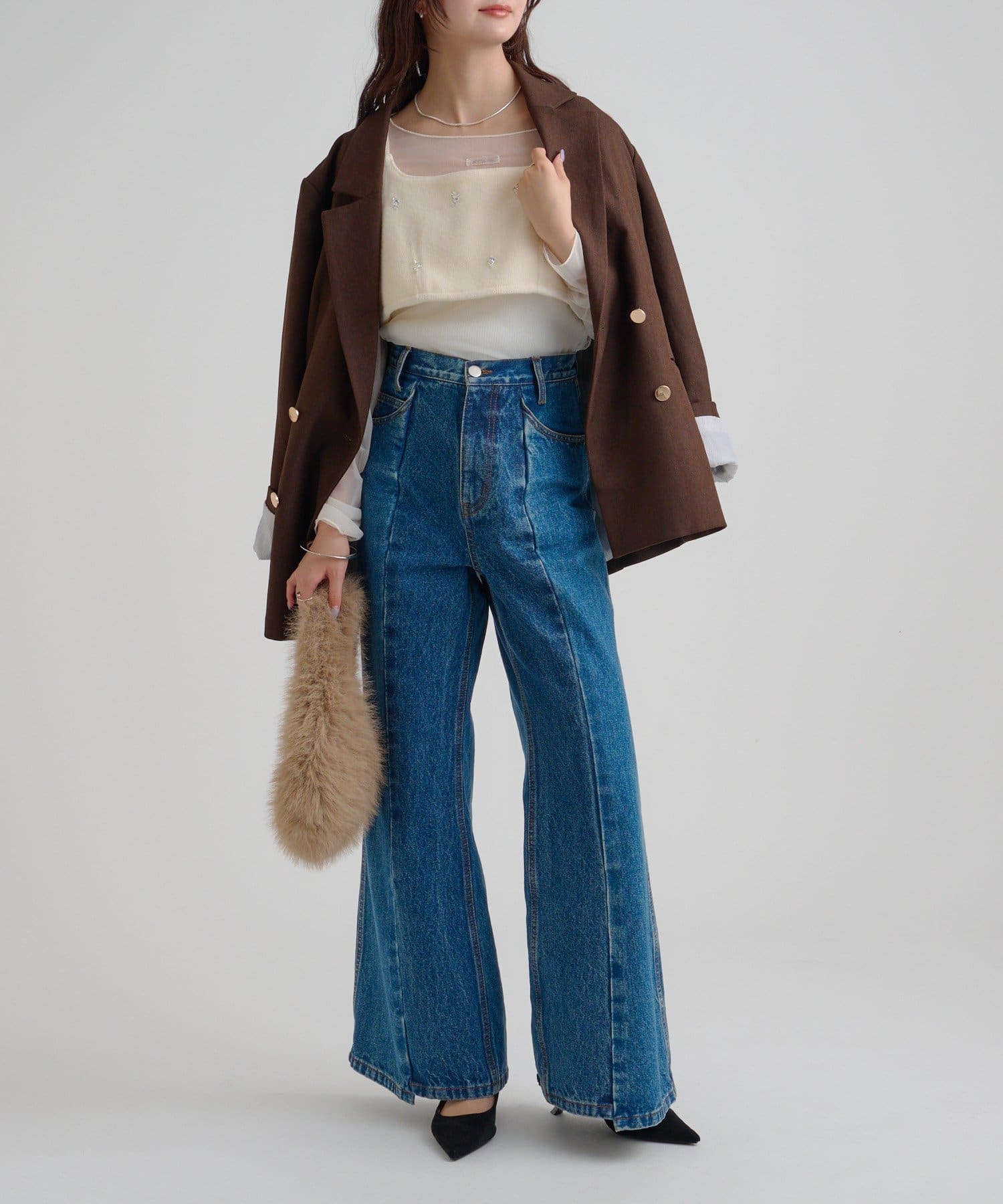 ・ボトムスはデニムと合わせてカジュアルダウンさせても◎きれいめカジュアルなコーディネートが完成します!