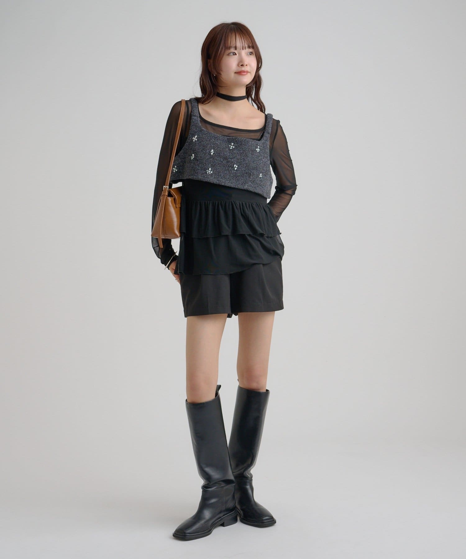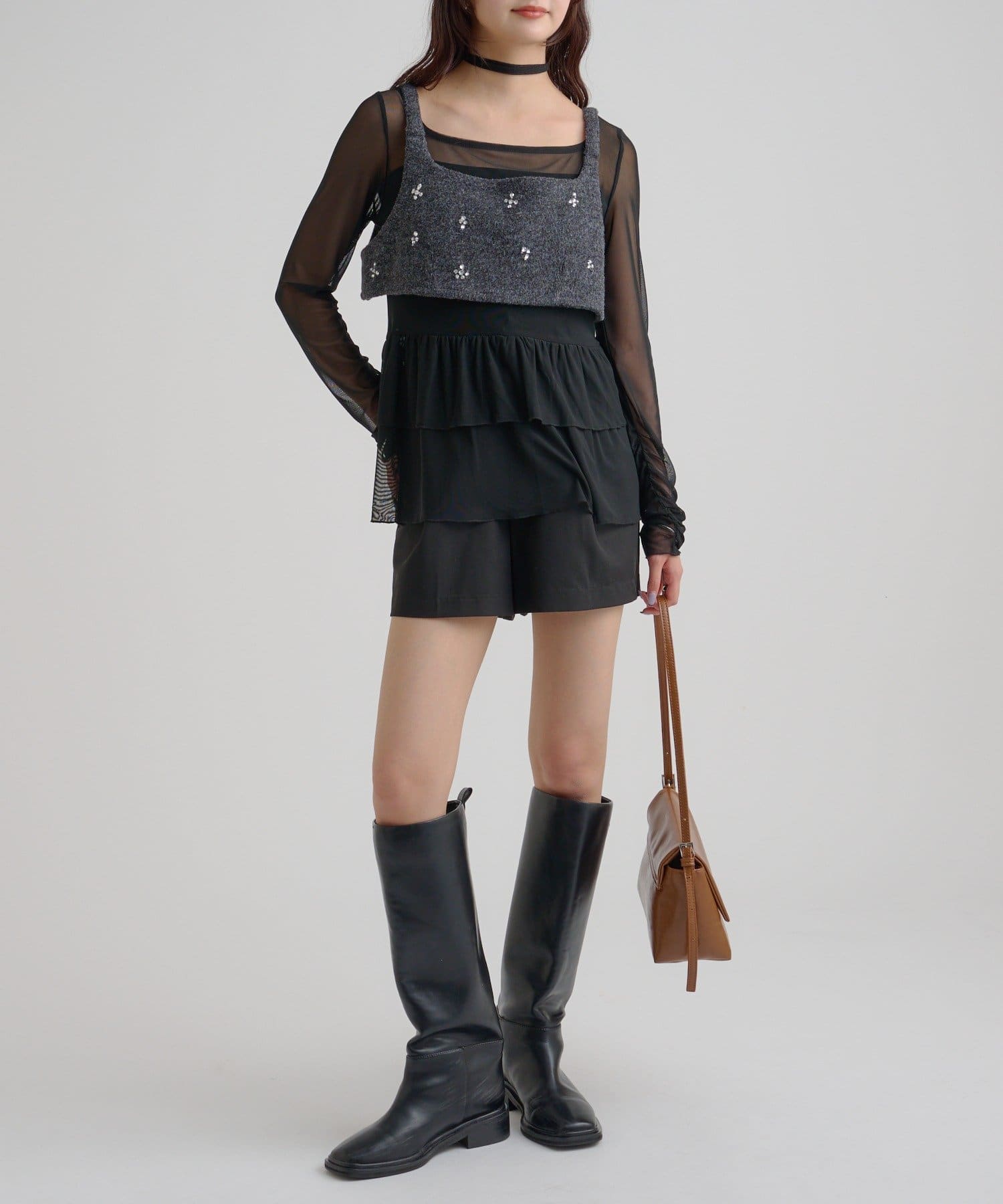 ・キラっと光るビジューが上品さをプラスしてくれるアイテム。ビジューも主張しすぎなく、さりげないデザインが可愛いビスチェです!