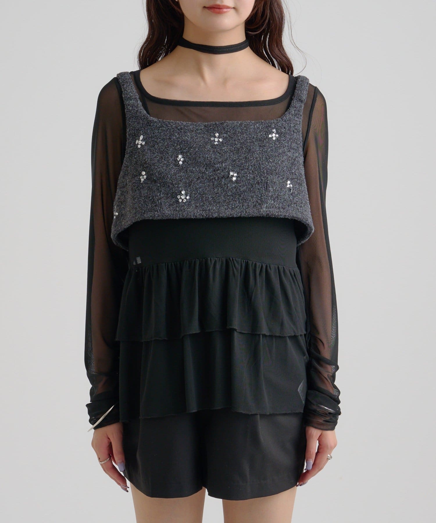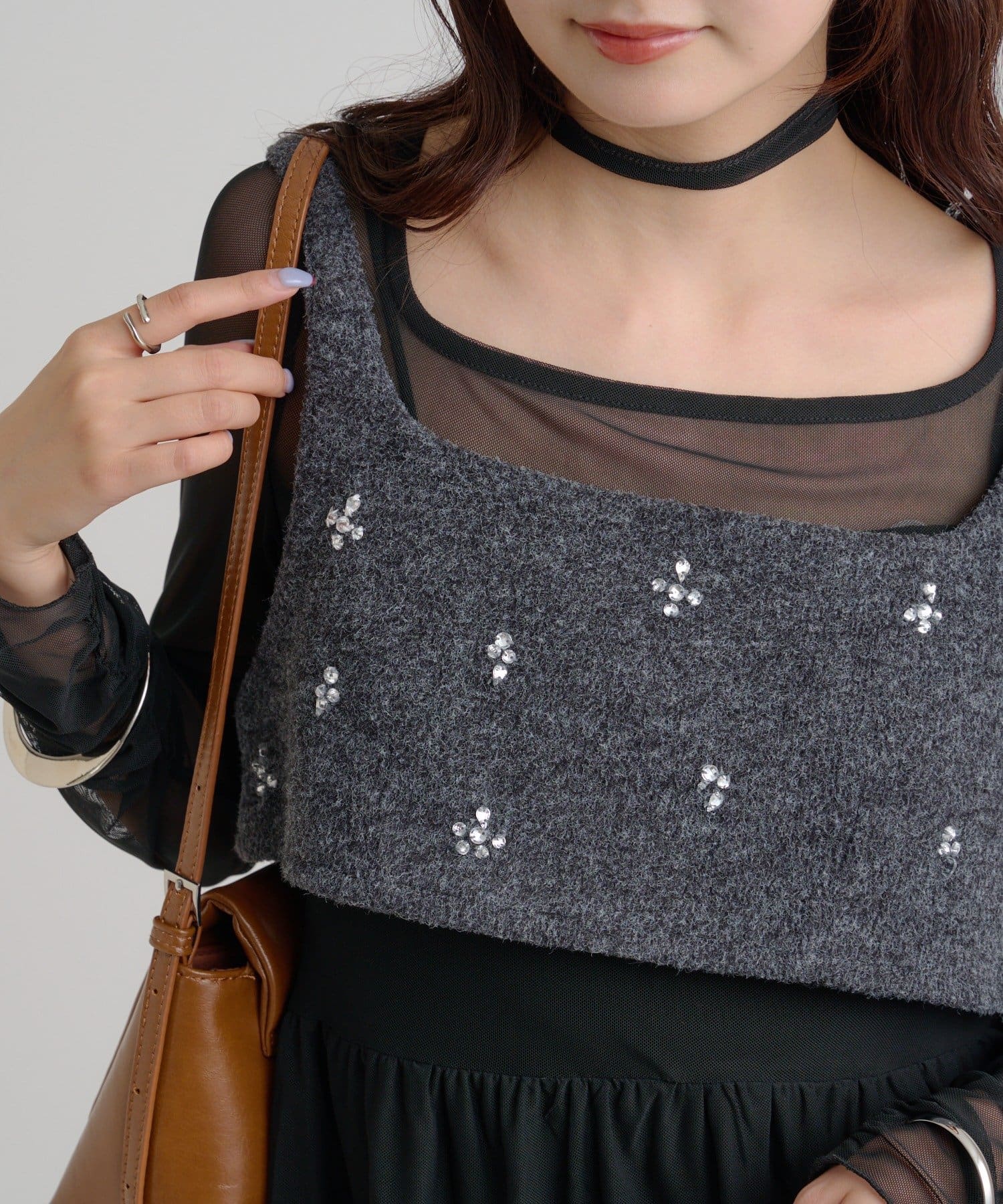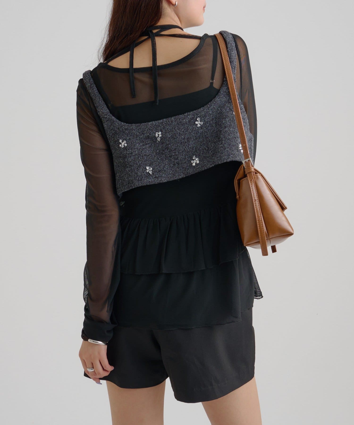 キラキラのビジューが目を惹く♡ビジューベストが登場!