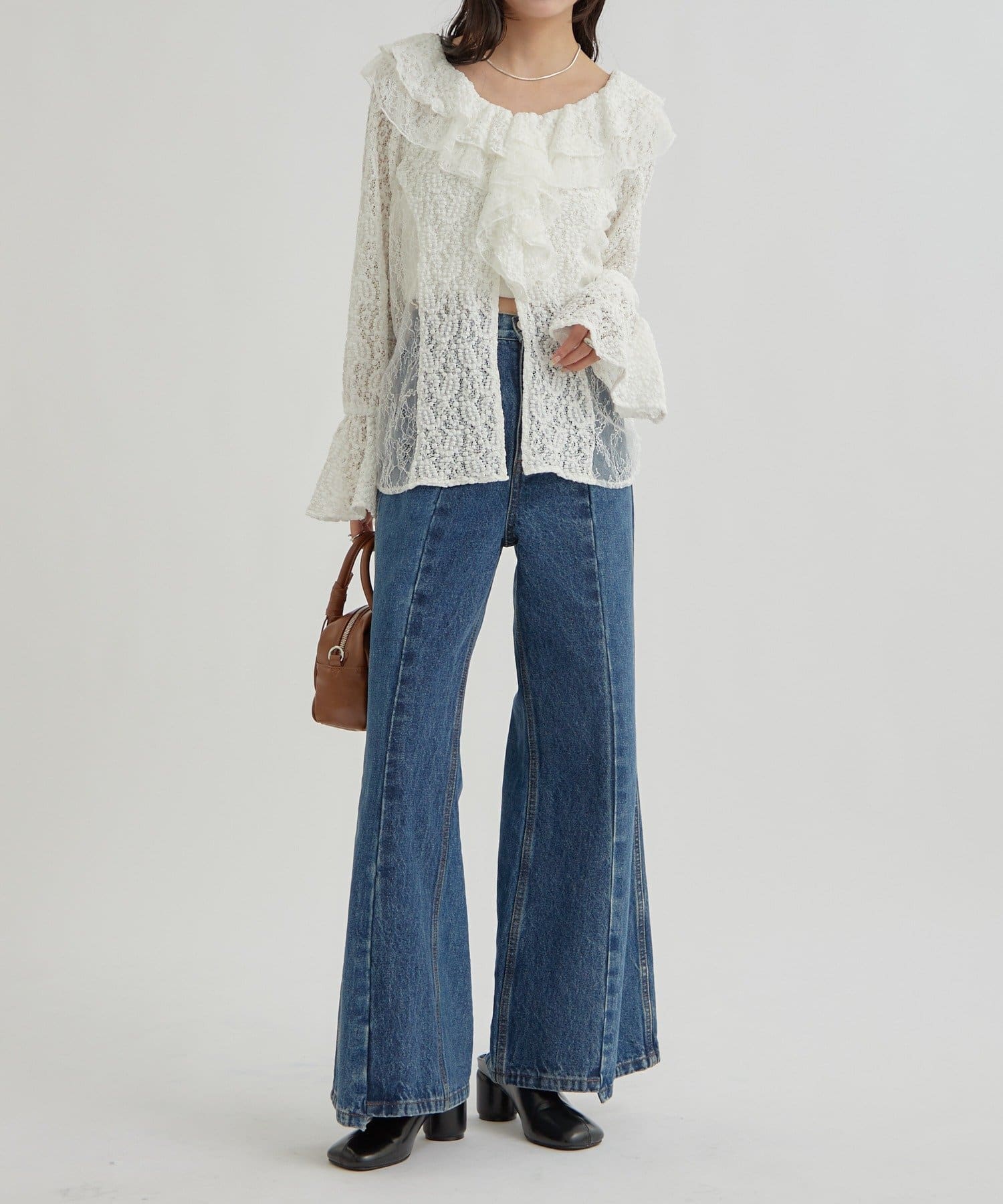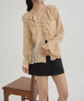 フリル×レースが華やかで可愛いブラウスです。