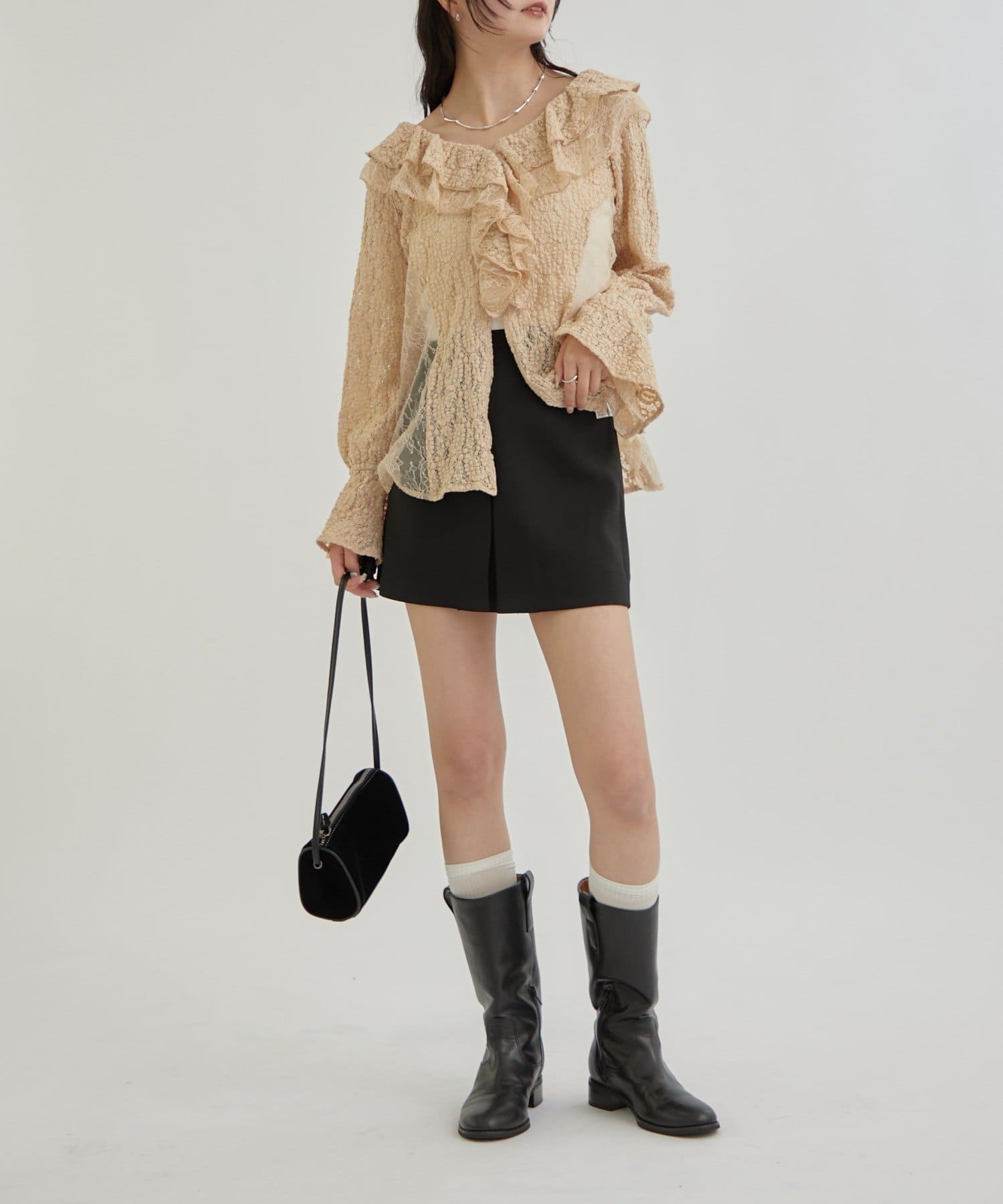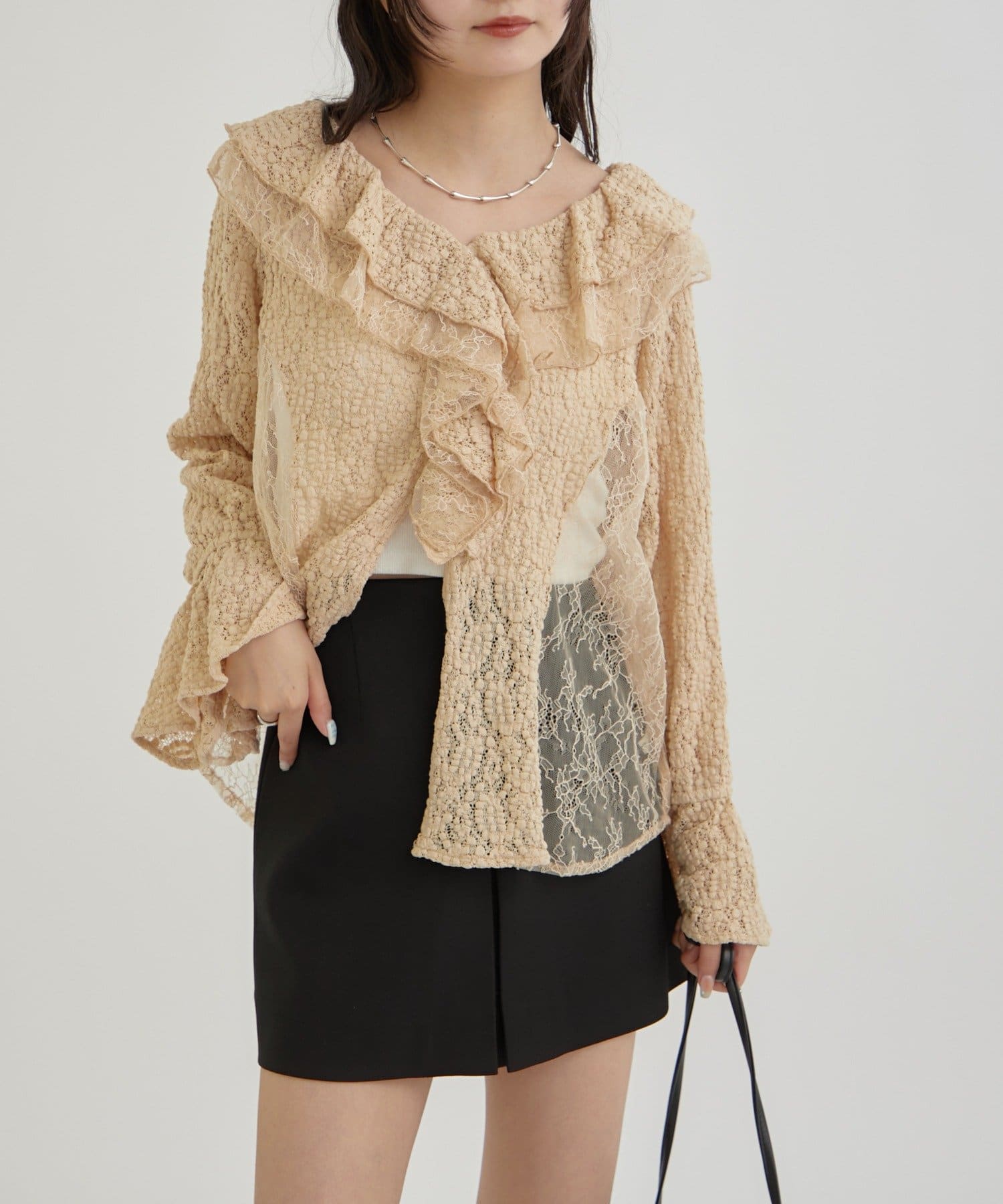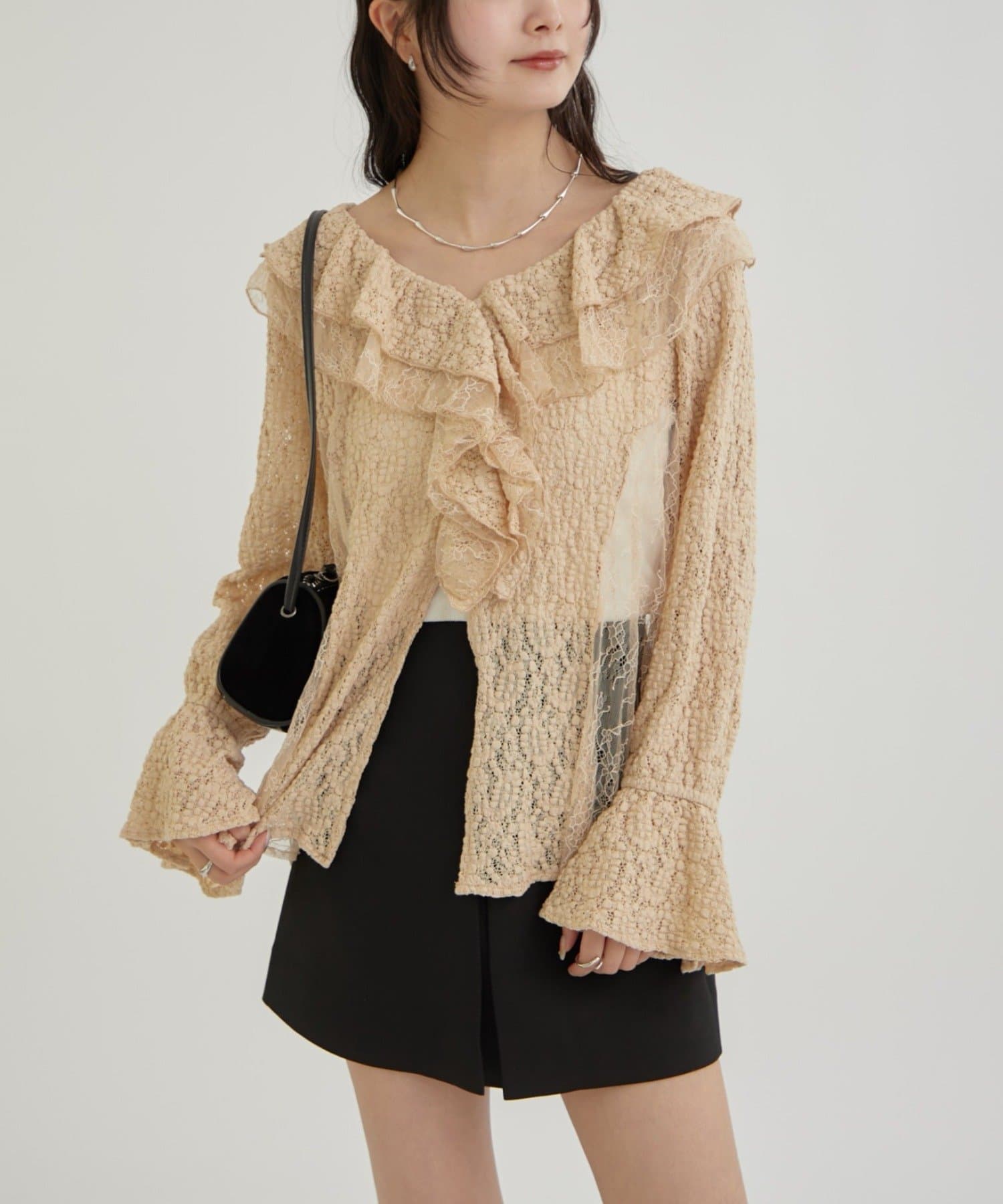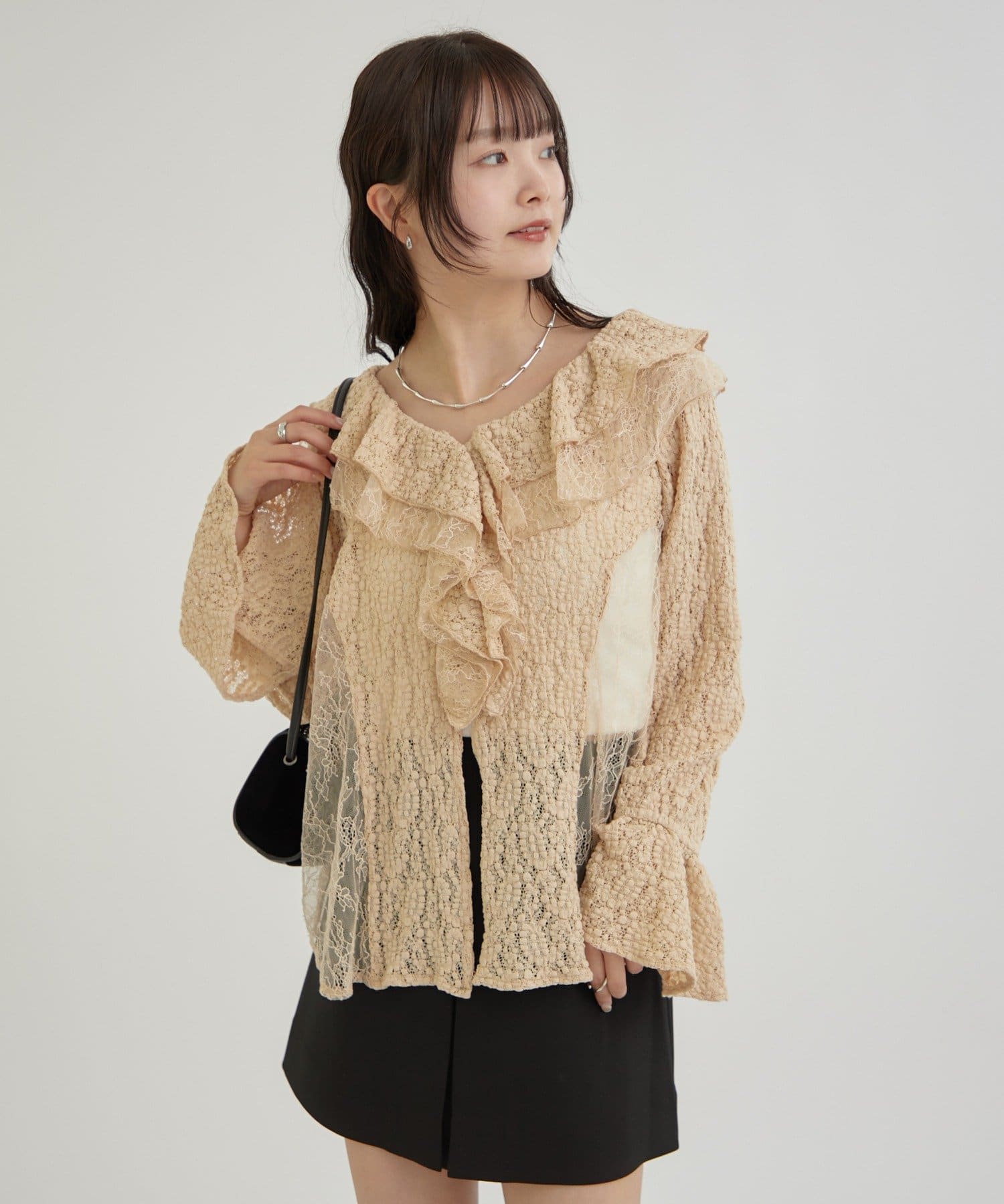 やや透ける素材なので抜け感もあり、女子らしさが増すアイテムだと思います!