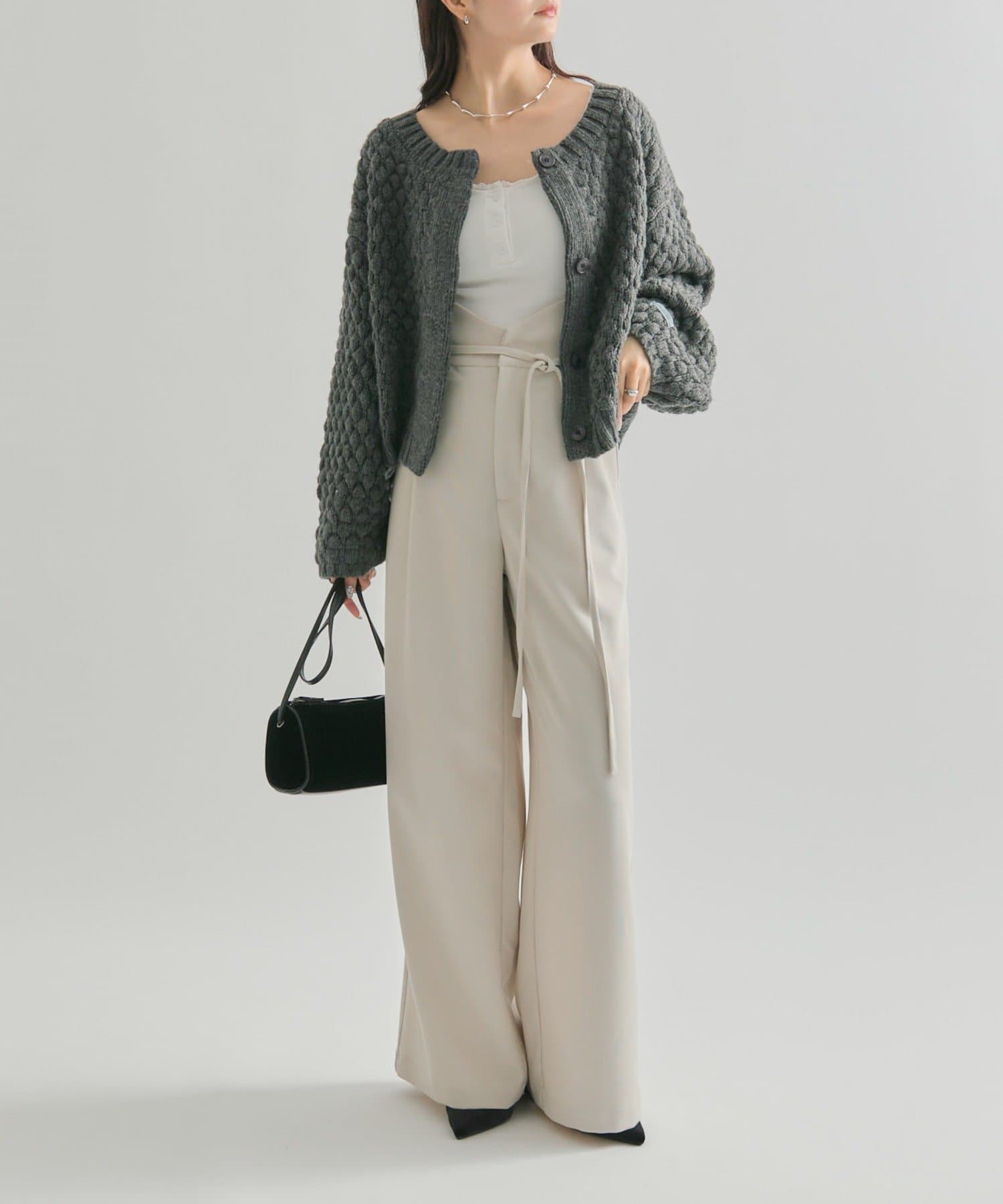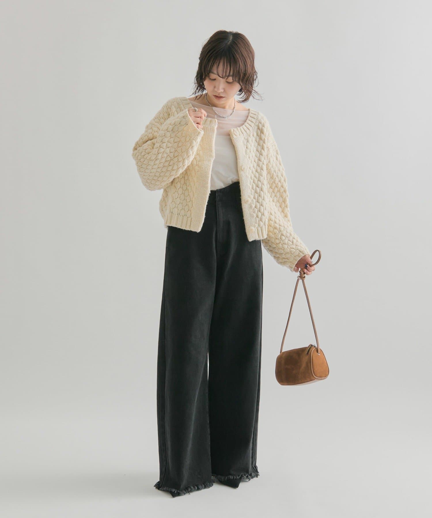 ・表面感があることで、シンプルなボトムスでも着映えします◎