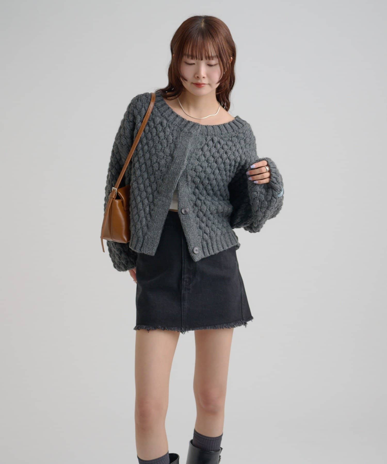 ・ゆったりとしたシルエットなのでミニ丈のボトムスと合わせるとバランスよく着ることができます◎