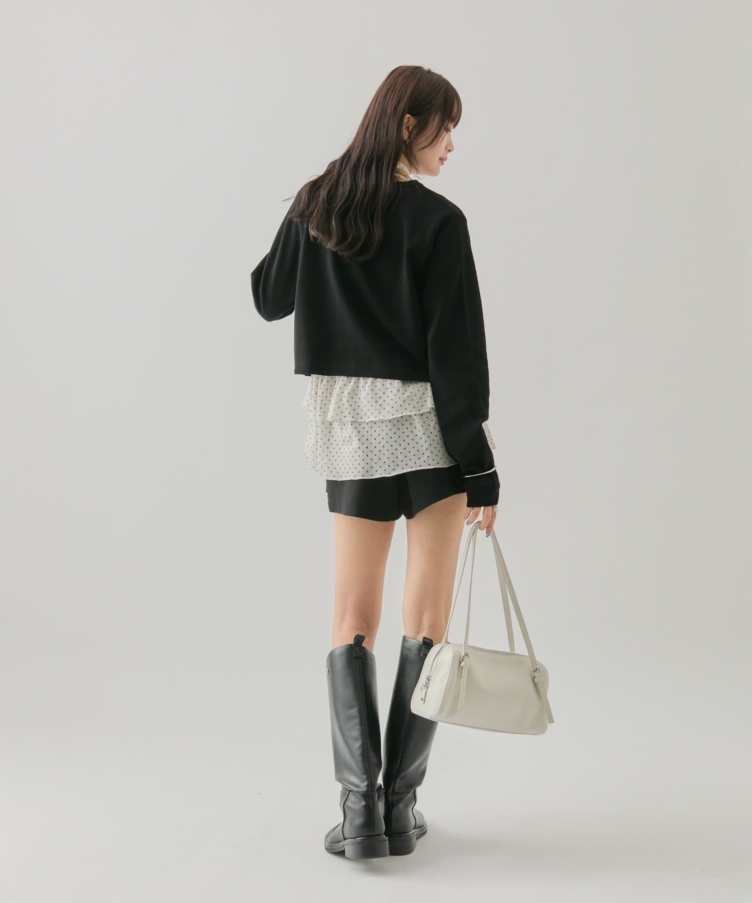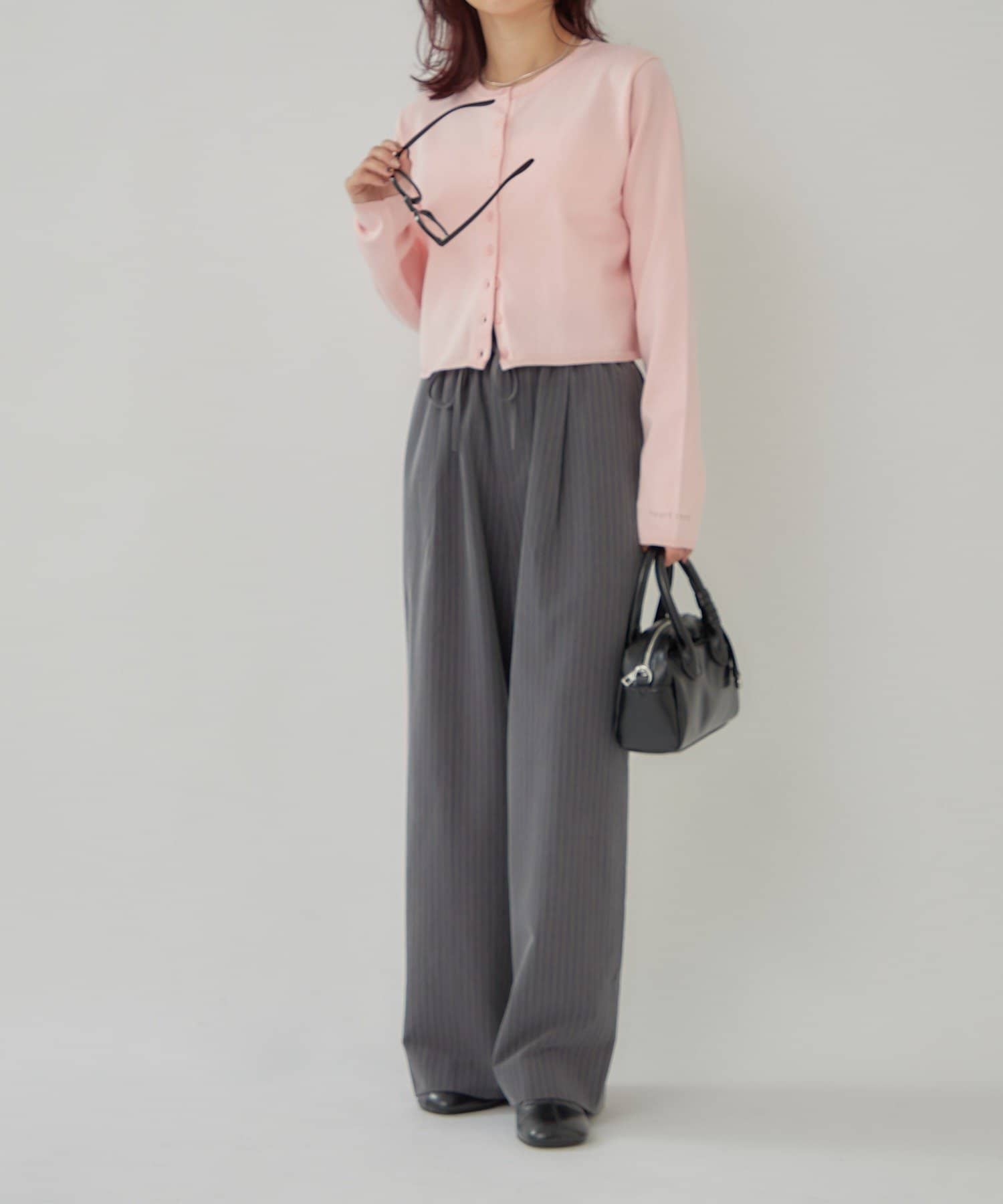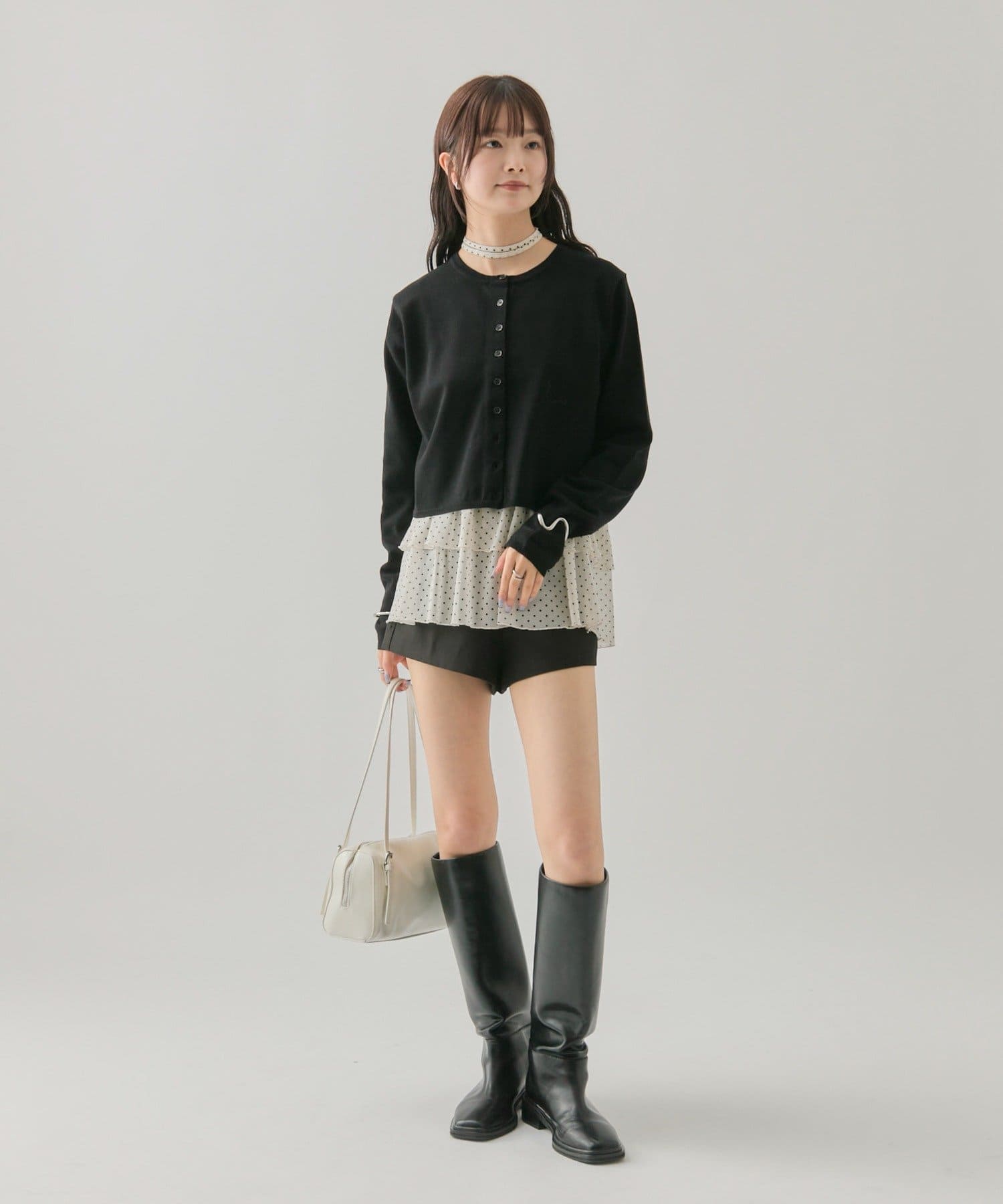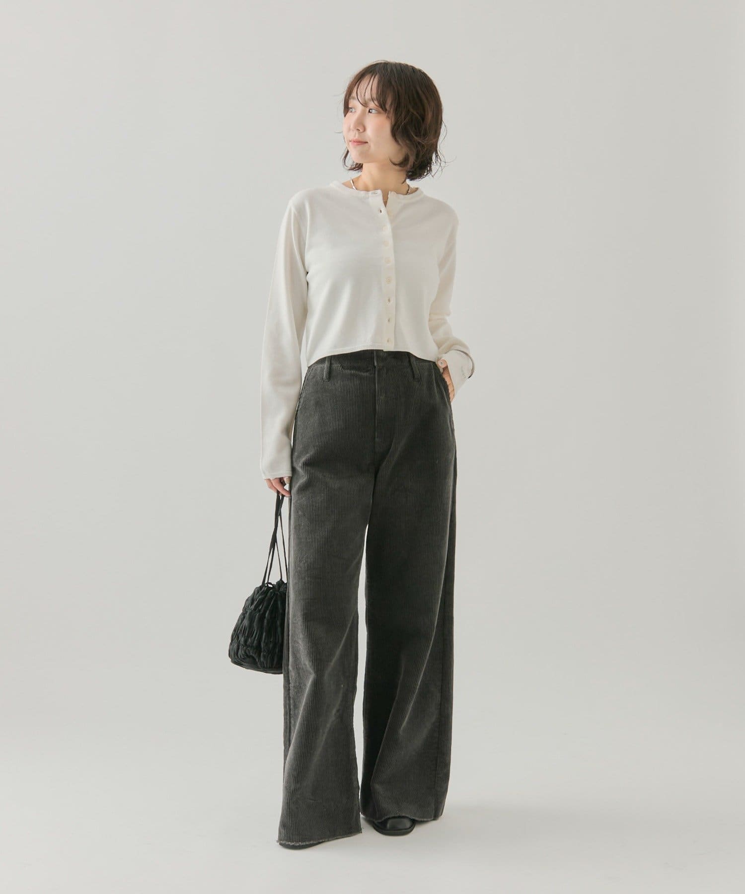 ・やや丈が短めなアイテムなので、ハイウエストのボトムスやロングスカートなどボトムスを選ばずに合わせていただけます!