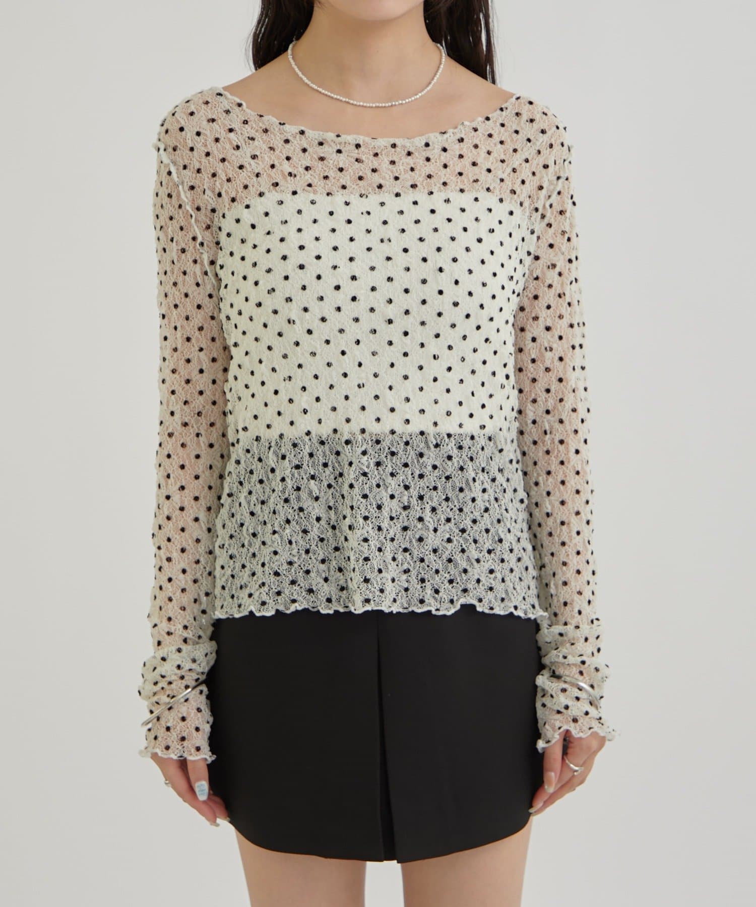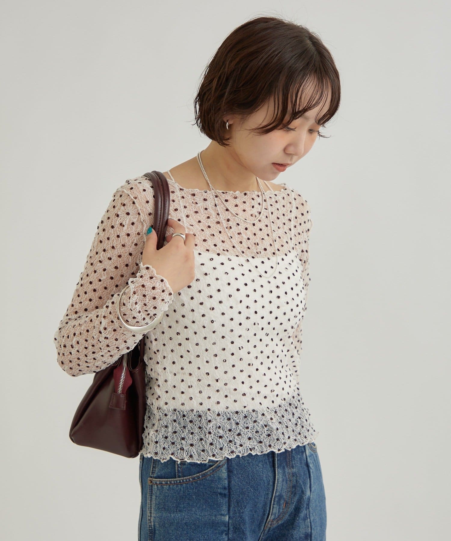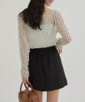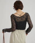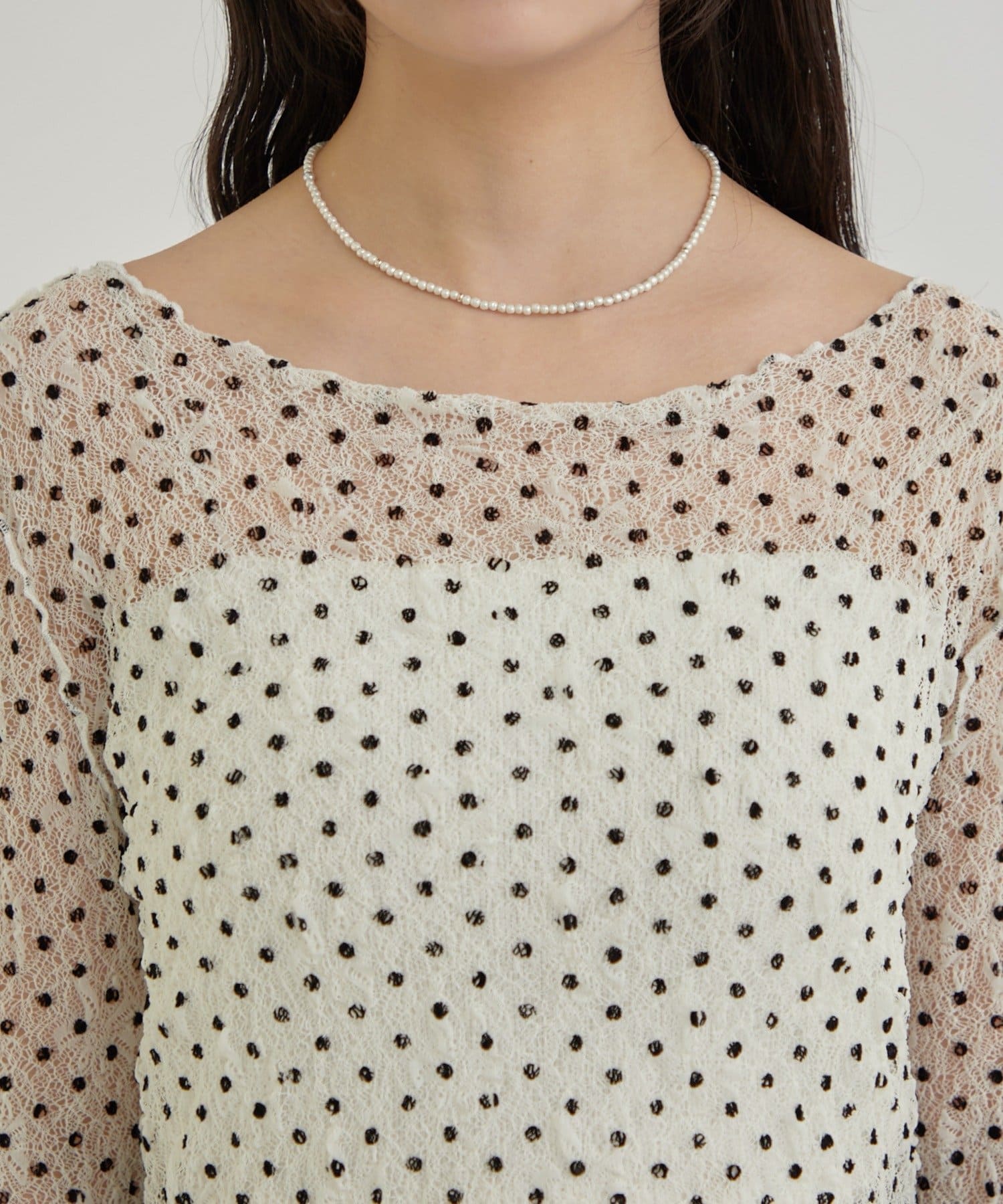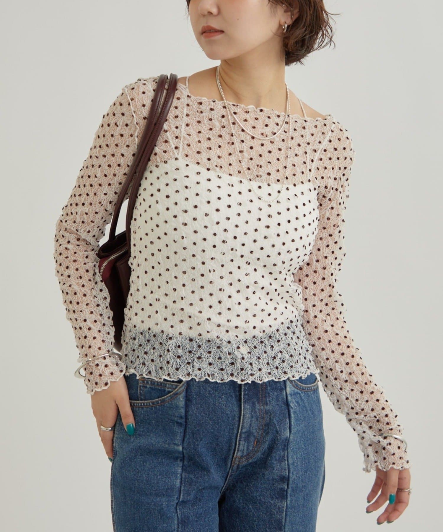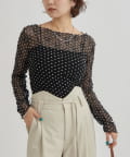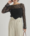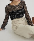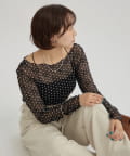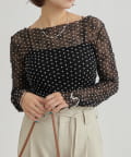 ・ふんわりと軽やかな印象のドット柄シアートップス。シアー素材ならではの透け感で抜け感と軽やかさをプラスしました。