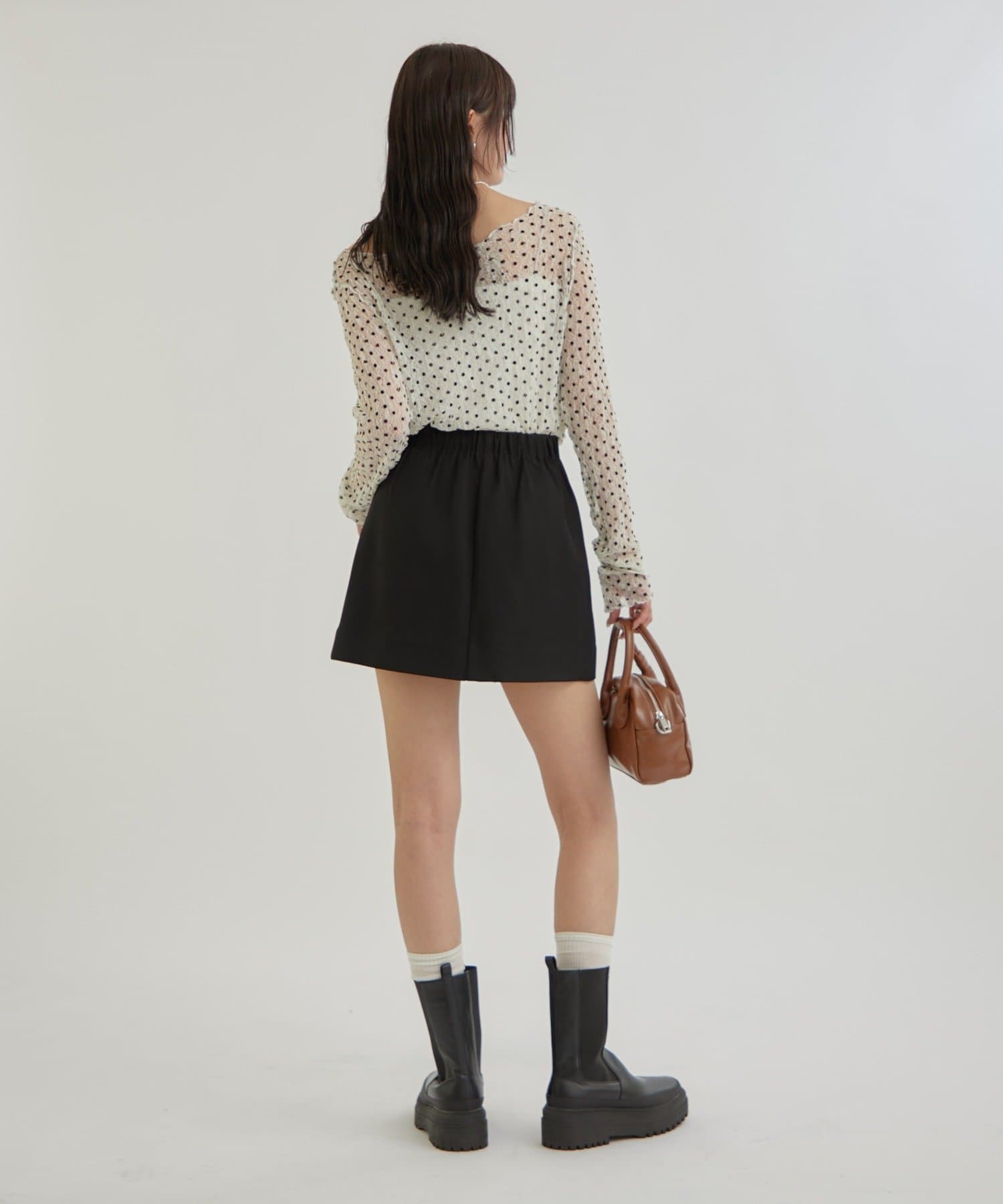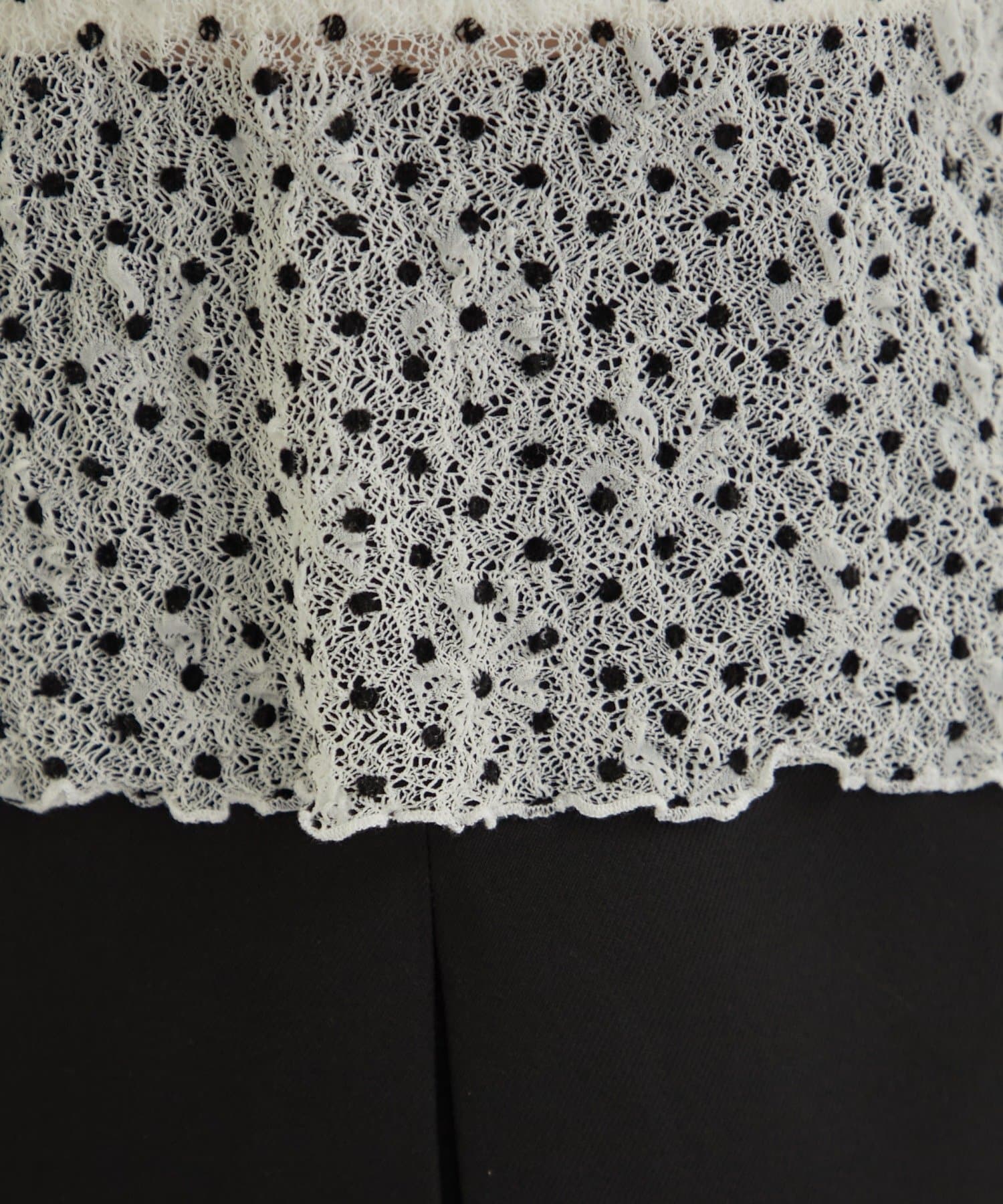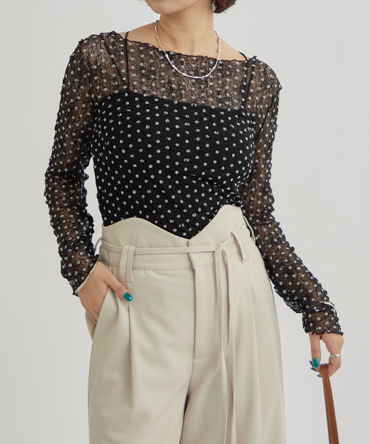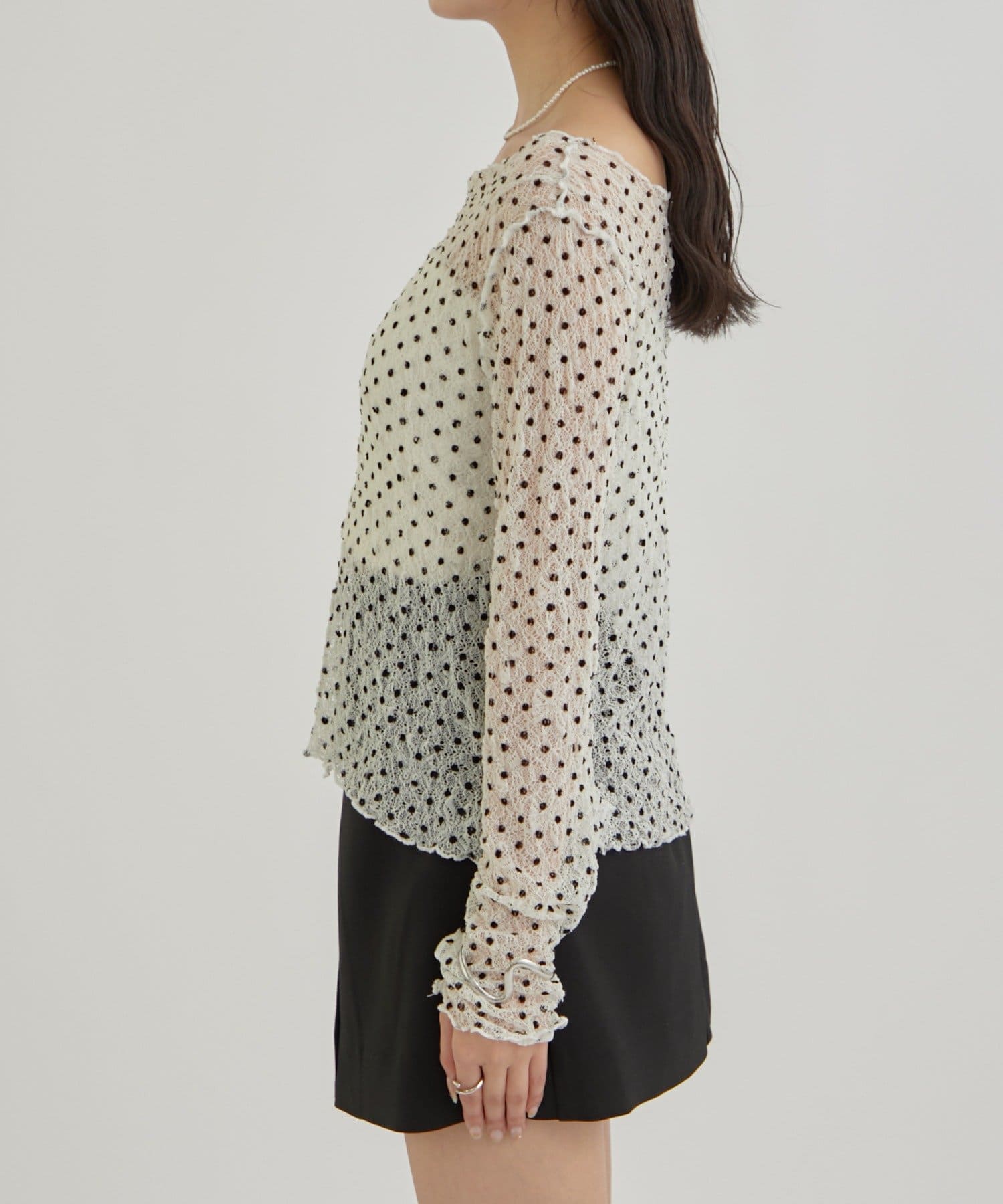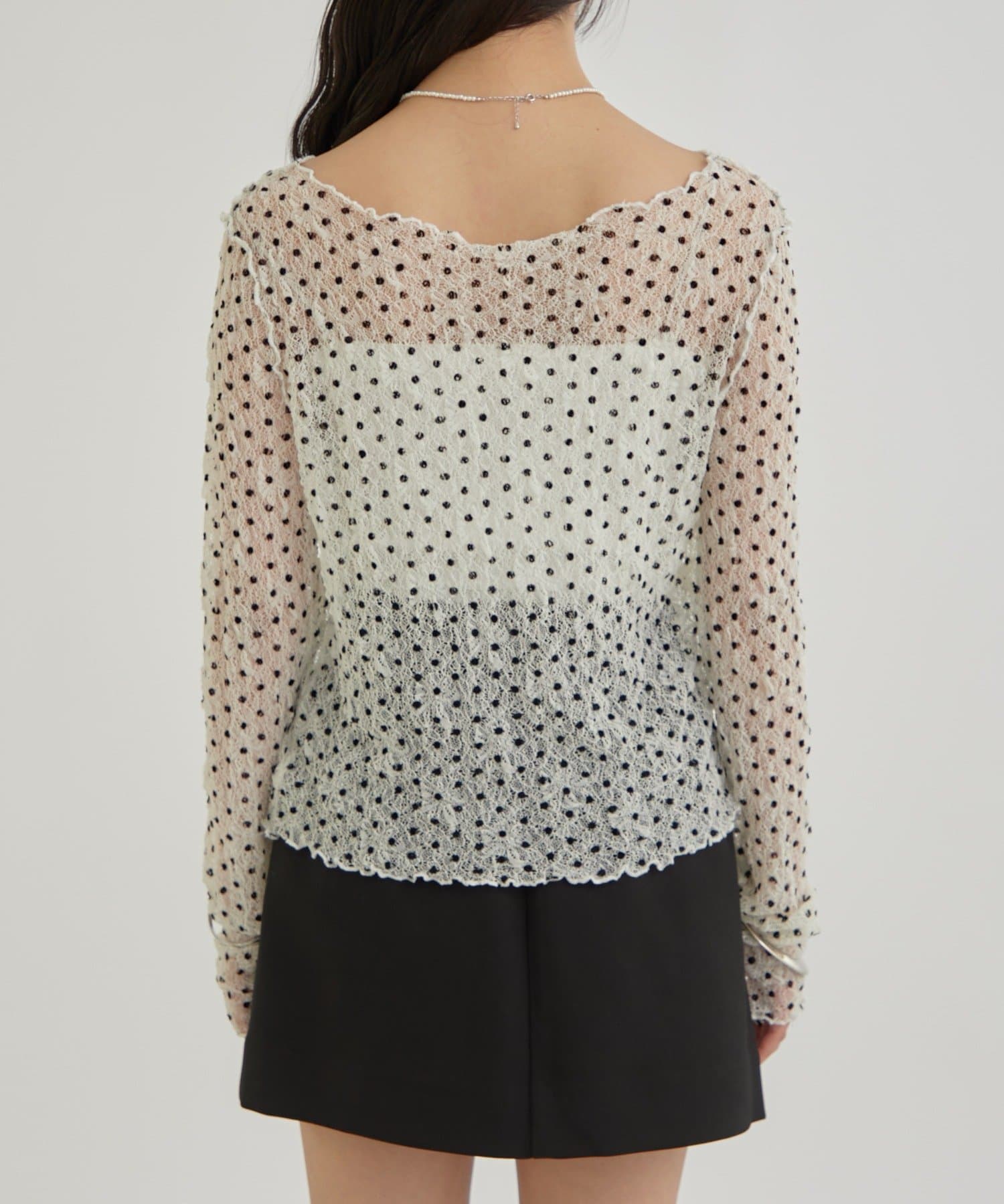 ・ふんわりと軽やかな印象のドット柄シアートップス。シアー素材ならではの透け感で抜け感と軽やかさをプラスしました。