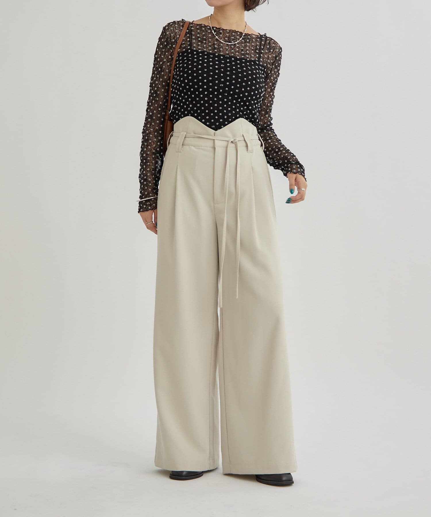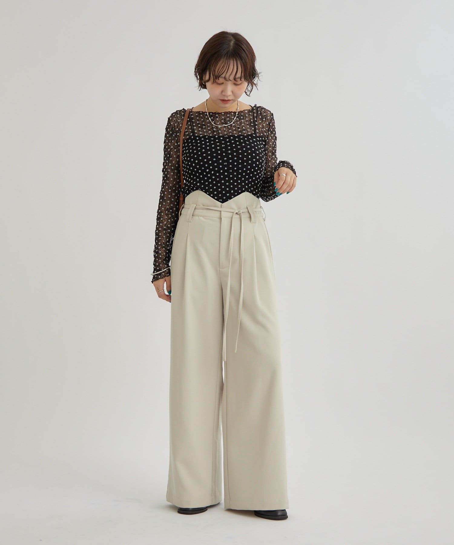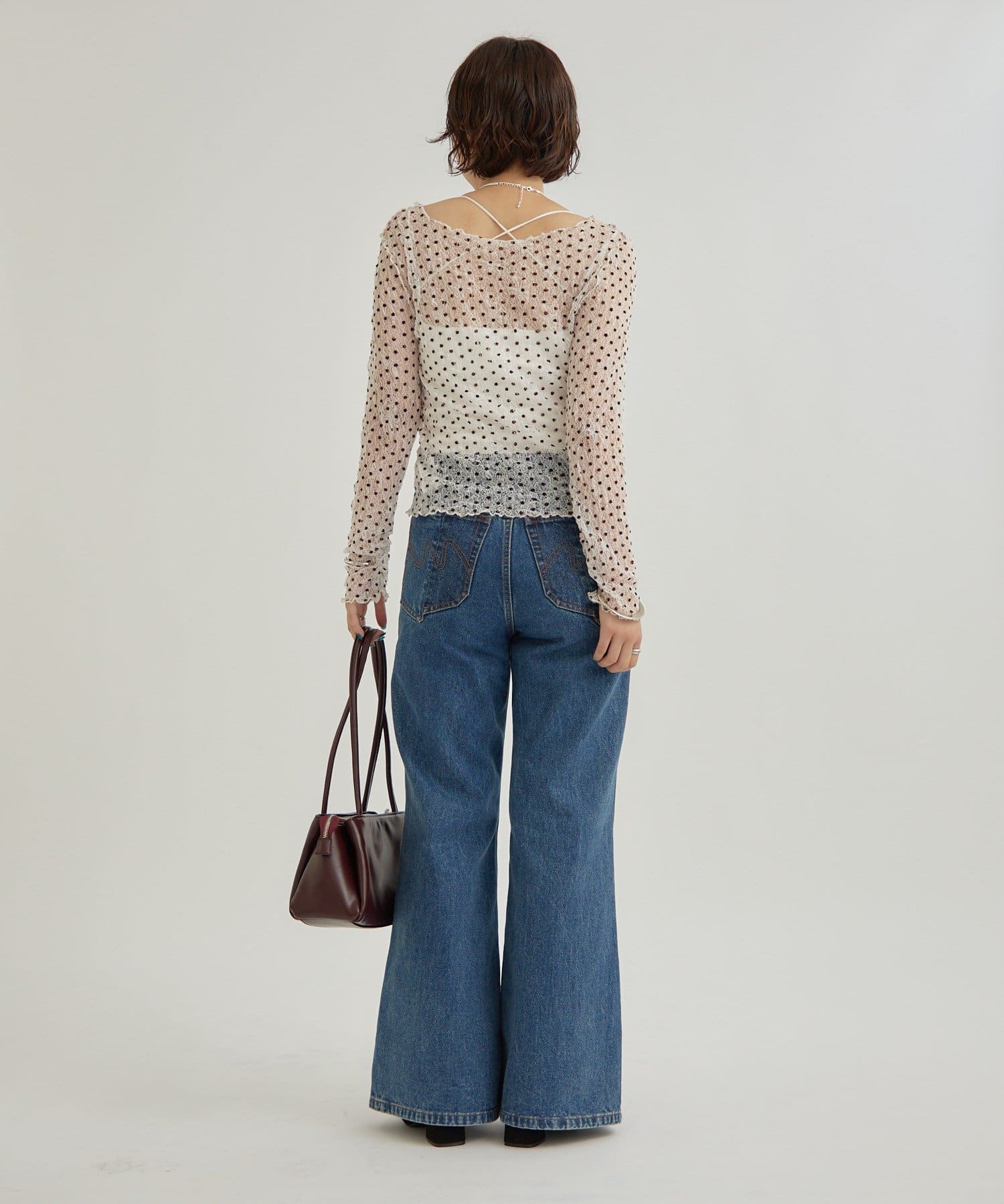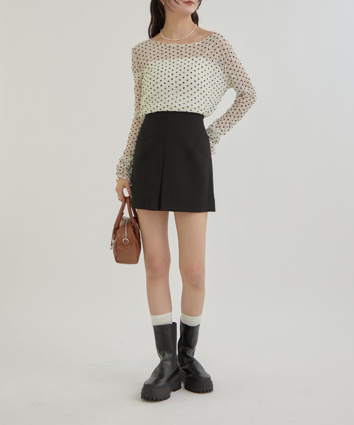 ・ふんわりと軽やかな印象のドット柄シアートップス。シアー素材ならではの透け感で抜け感と軽やかさをプラスしました。