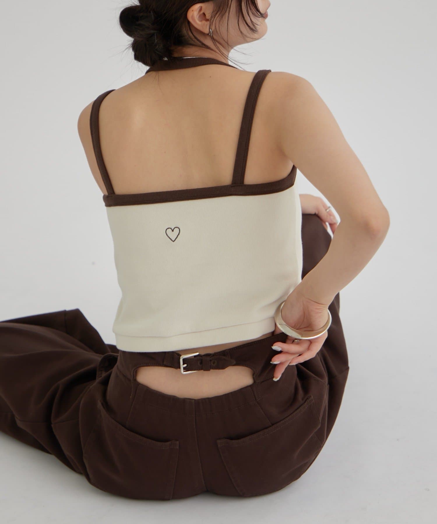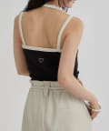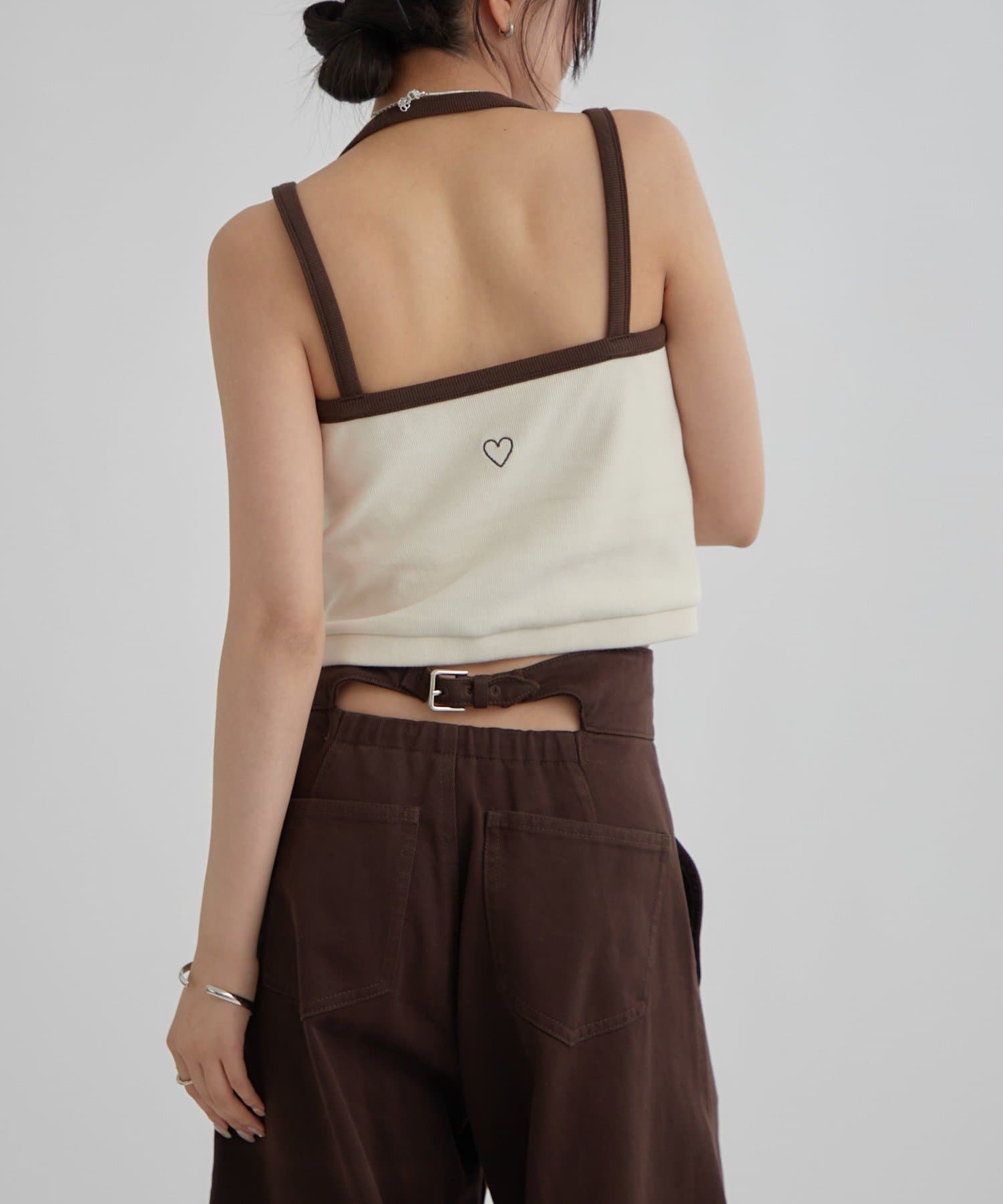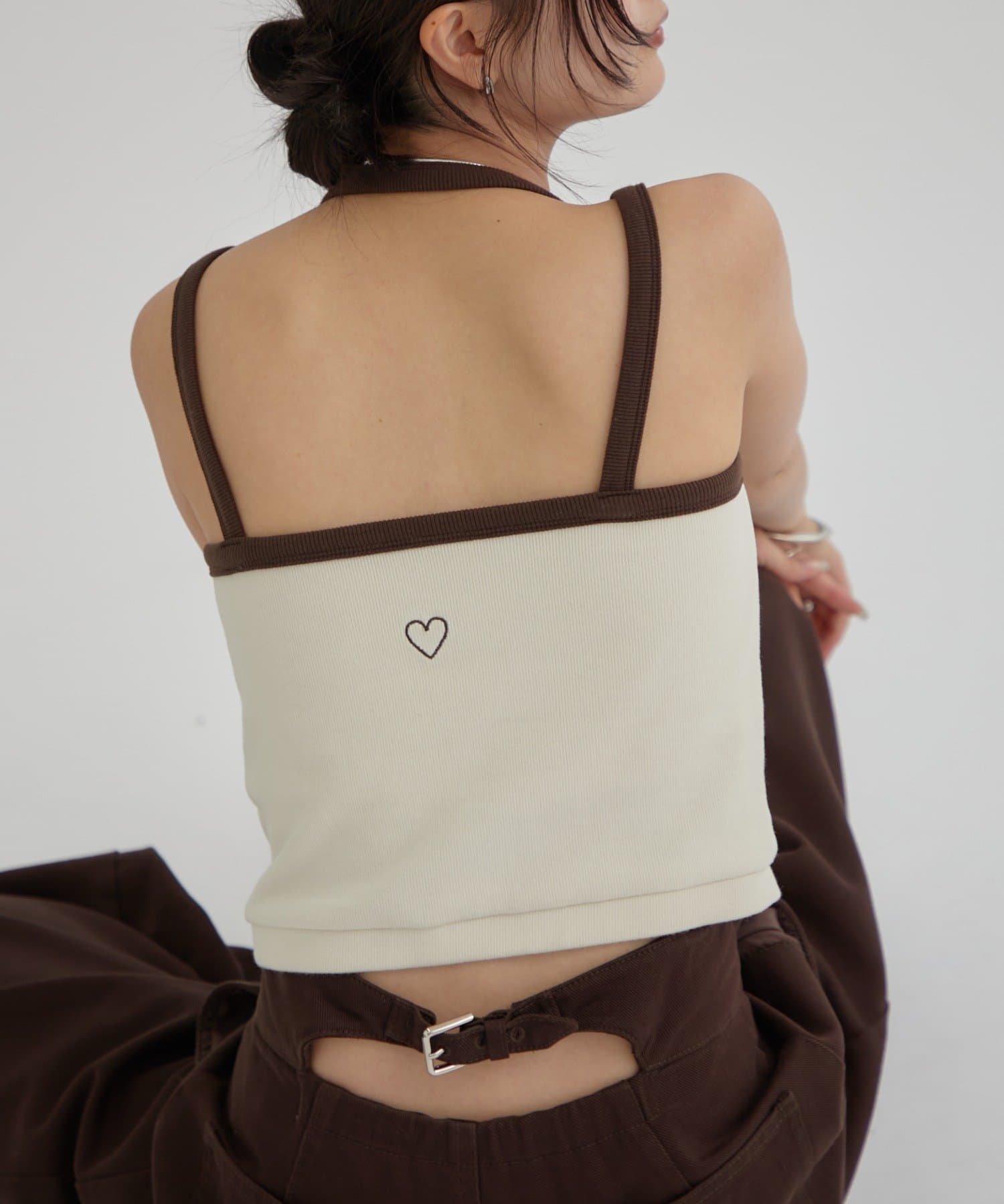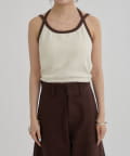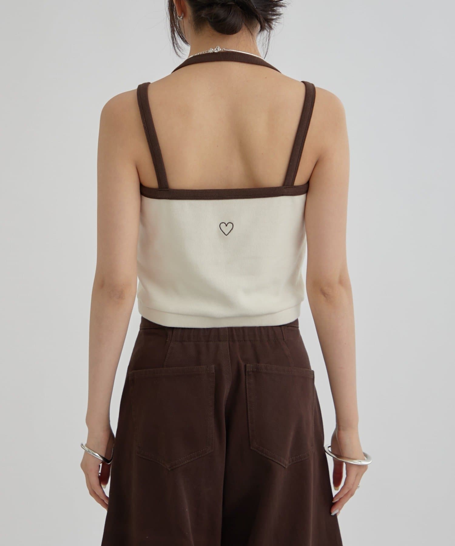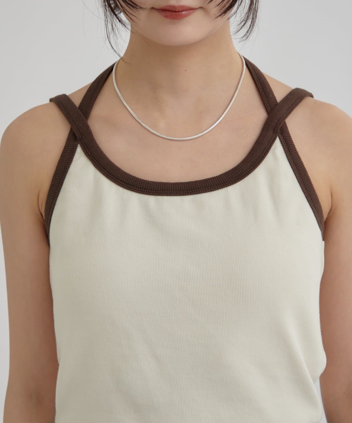 ・ホルターネックで絶妙な組み合わせが可愛いバイカラーデザインが目を惹くキャミソール。ジャケットなどの羽織のインナーとして着ても決まる1枚です◎