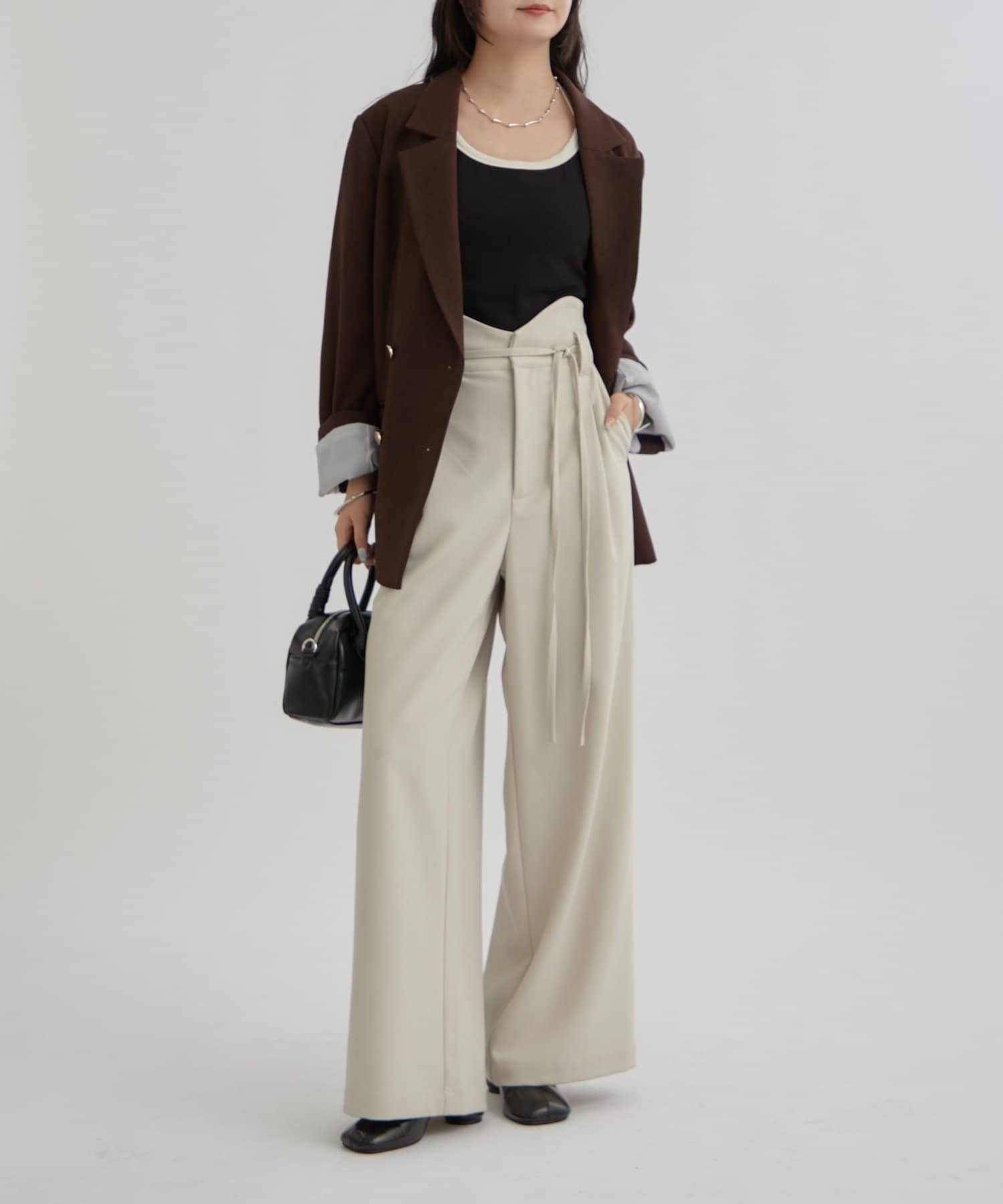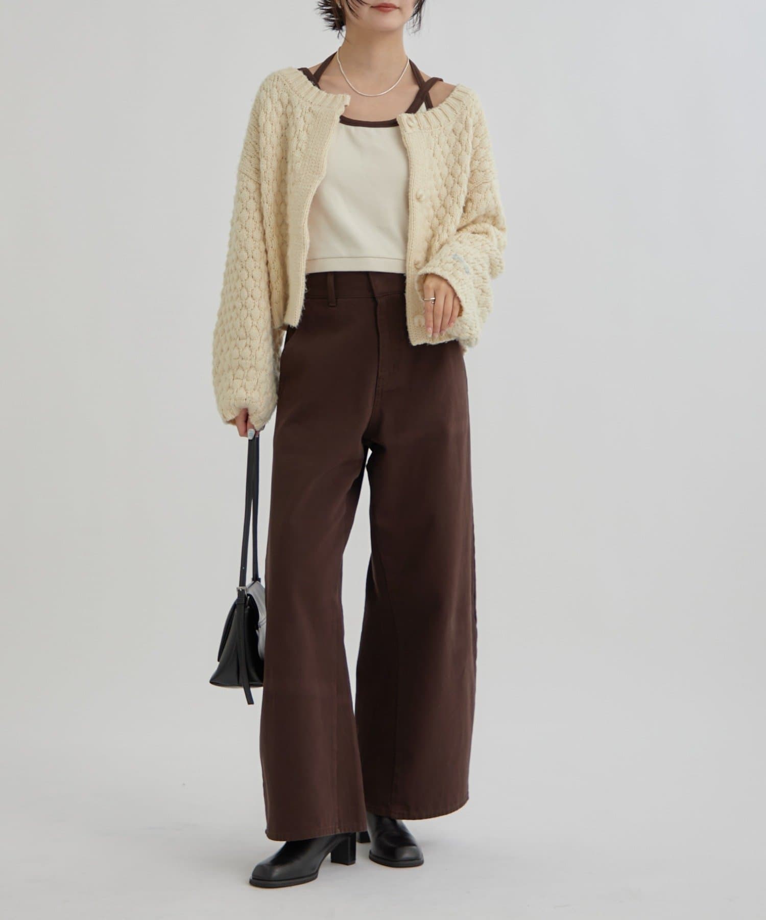 ・ボトムスはロングボトムスからミニ丈まで合わせていただけます。デニムやスラックスなどカジュアル~綺麗めのコーディネートにも