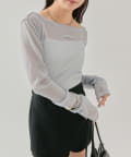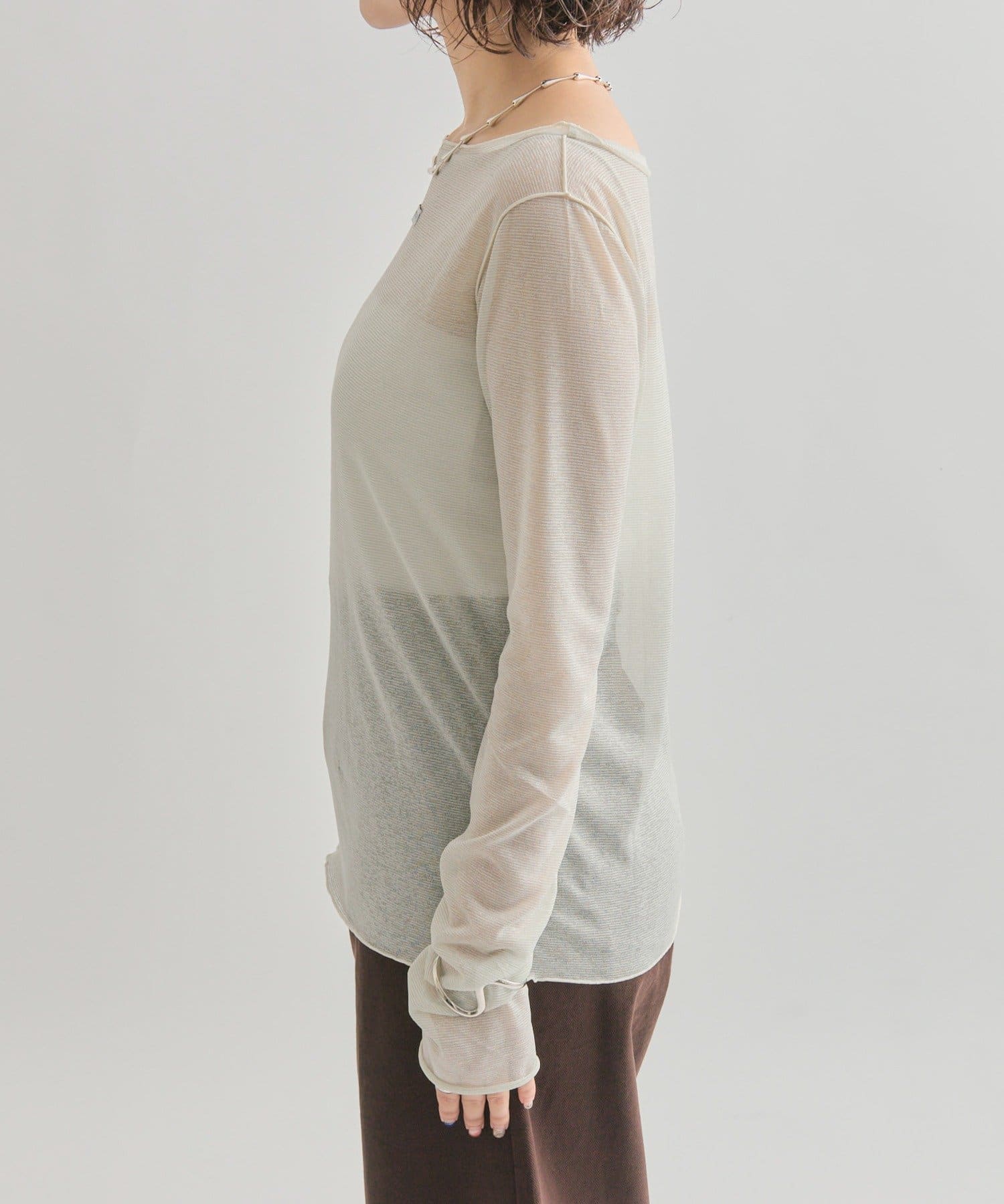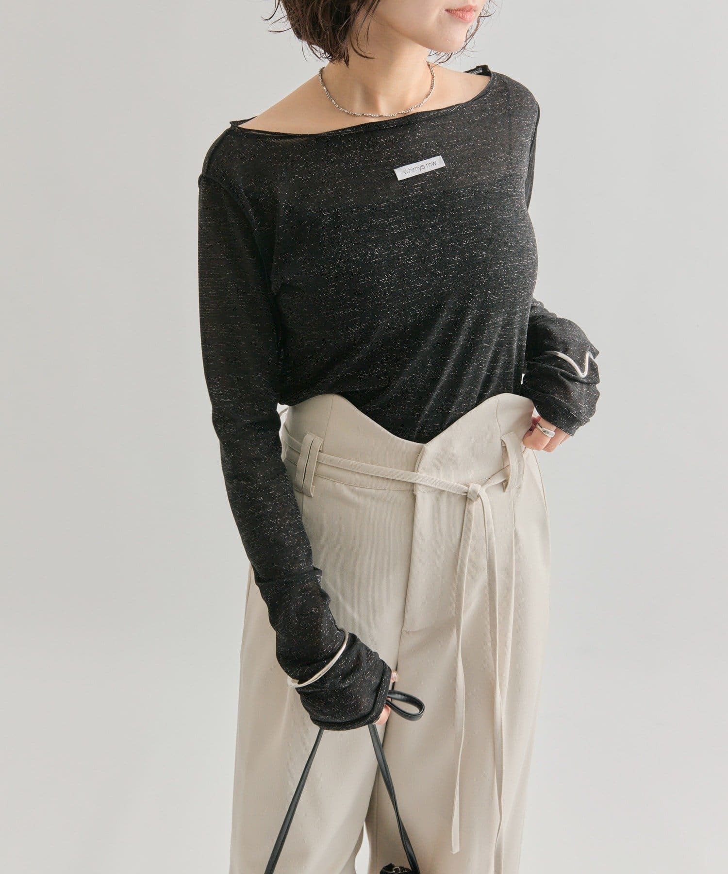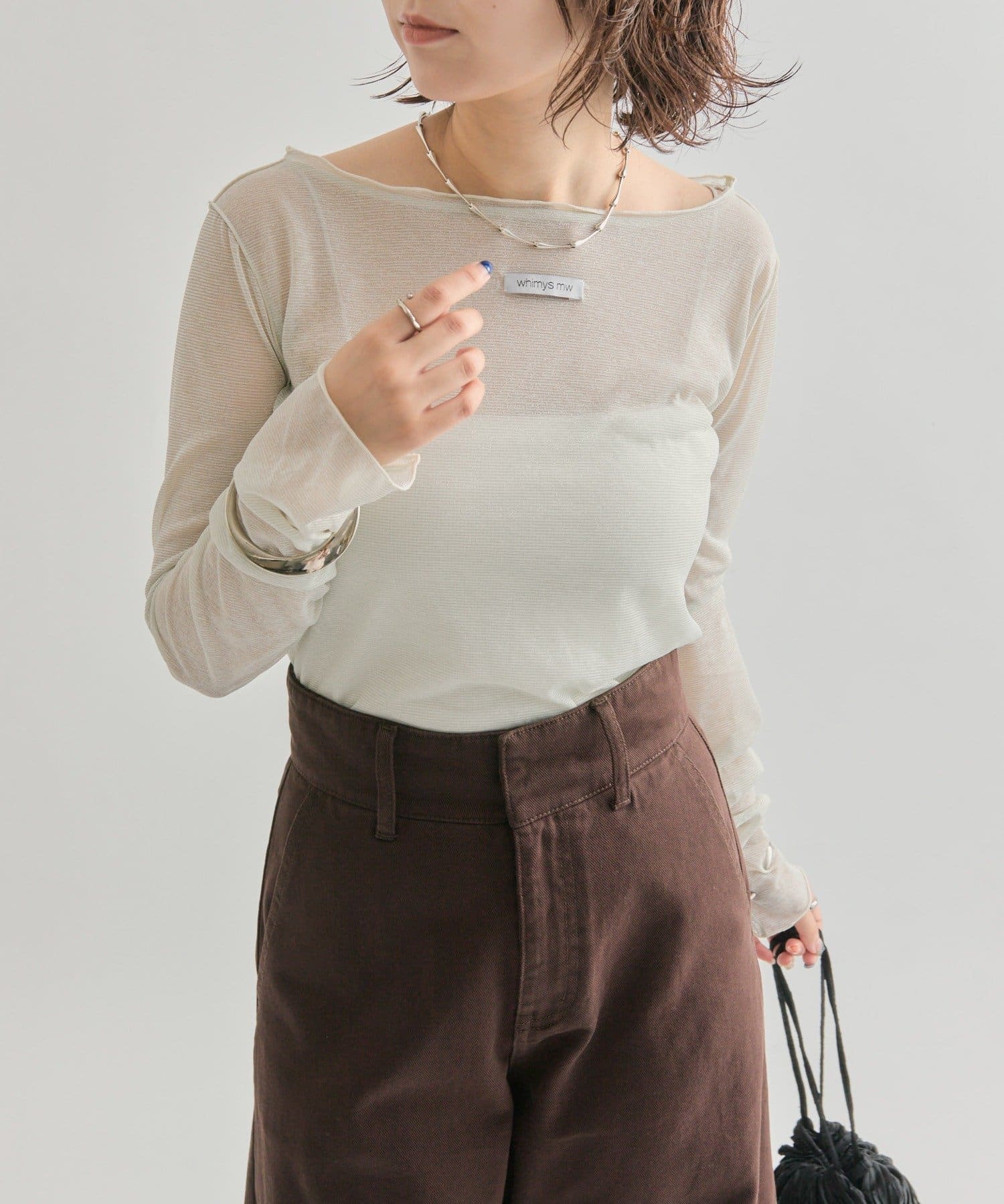 ・シンプルながらもシアー素材の抜け感とデザイン性のあるトップスで着回し力の高いアイテムです◎