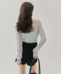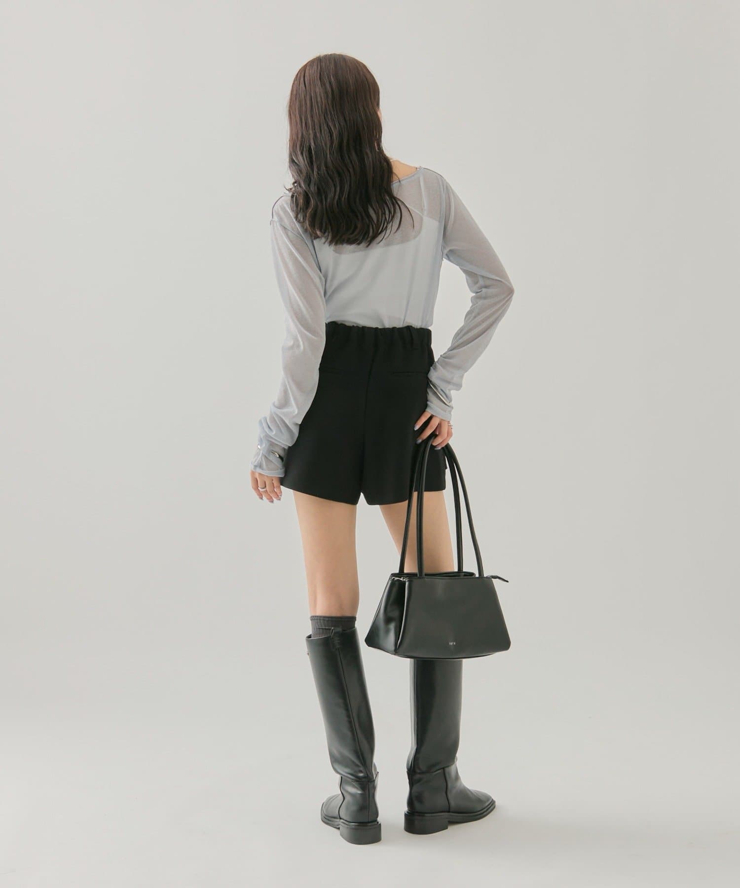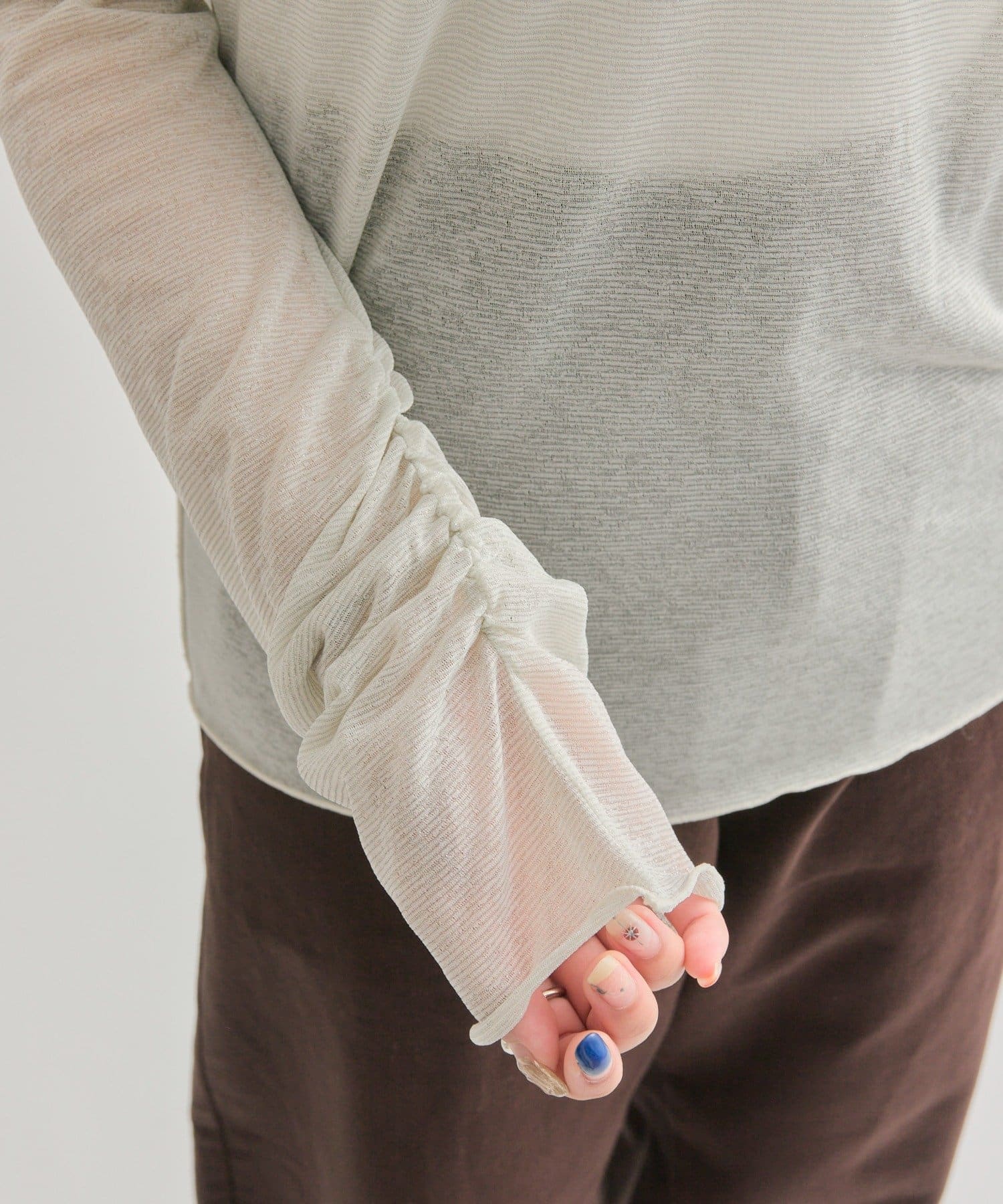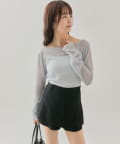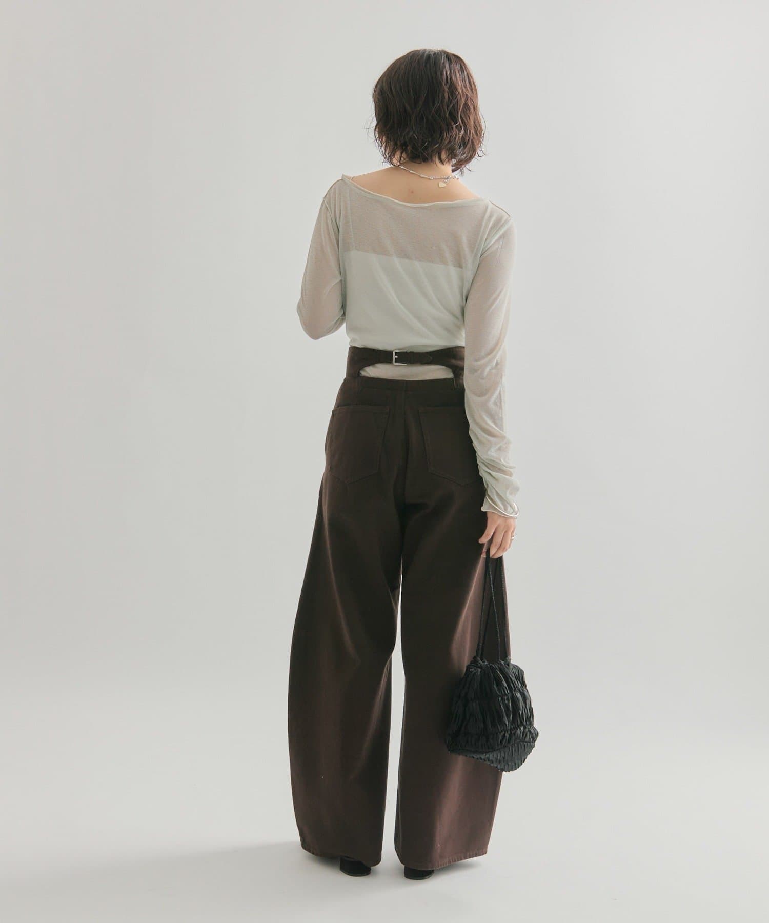 ・シンプルながらもシアー素材の抜け感とデザイン性のあるトップスで着回し力の高いアイテムです◎